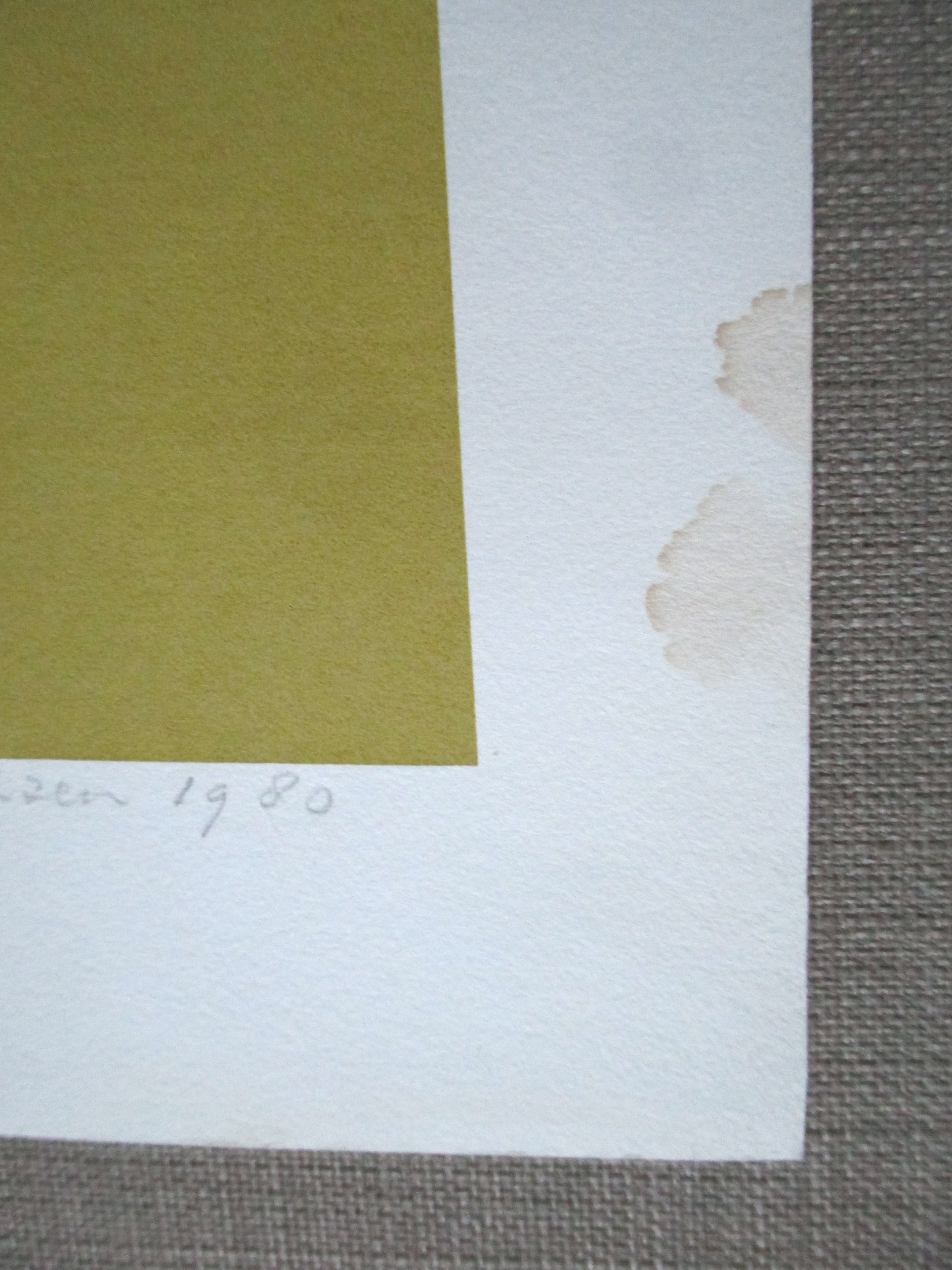 | De conditie is zeer goed, m.u.v. de rechter marge, waar vlekken zitten, zie foto's. Bij plaatsing achter passe-partout vallen deze weg. | |||