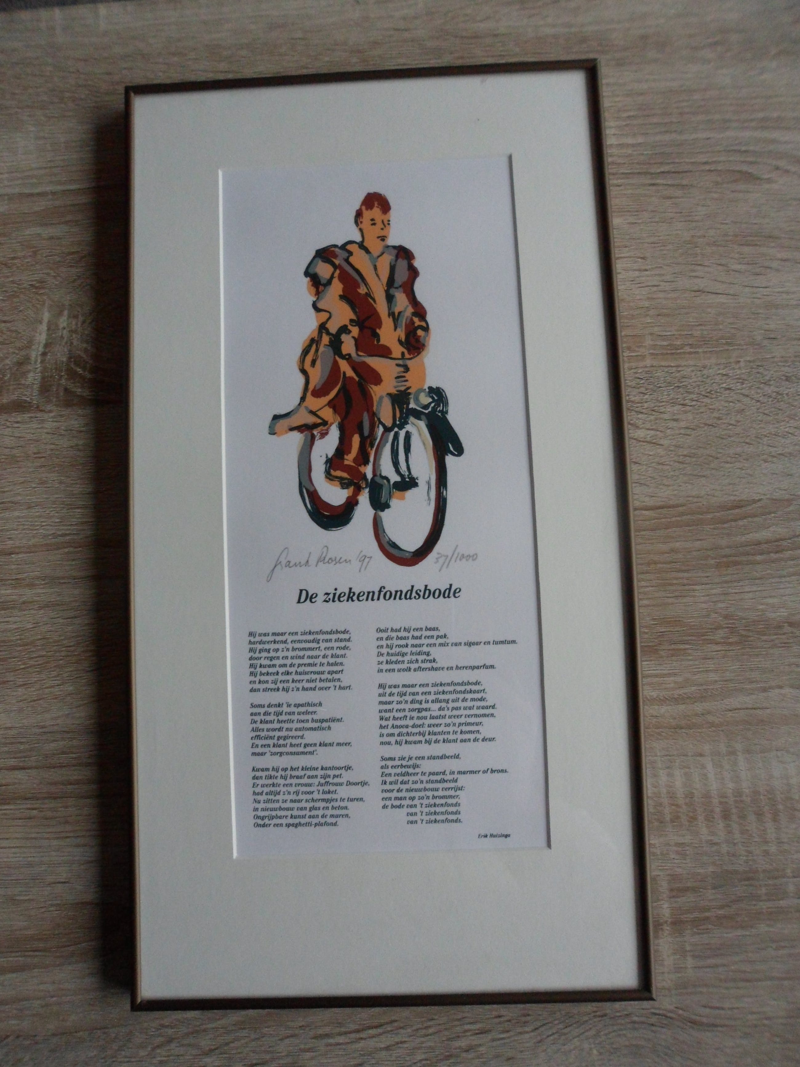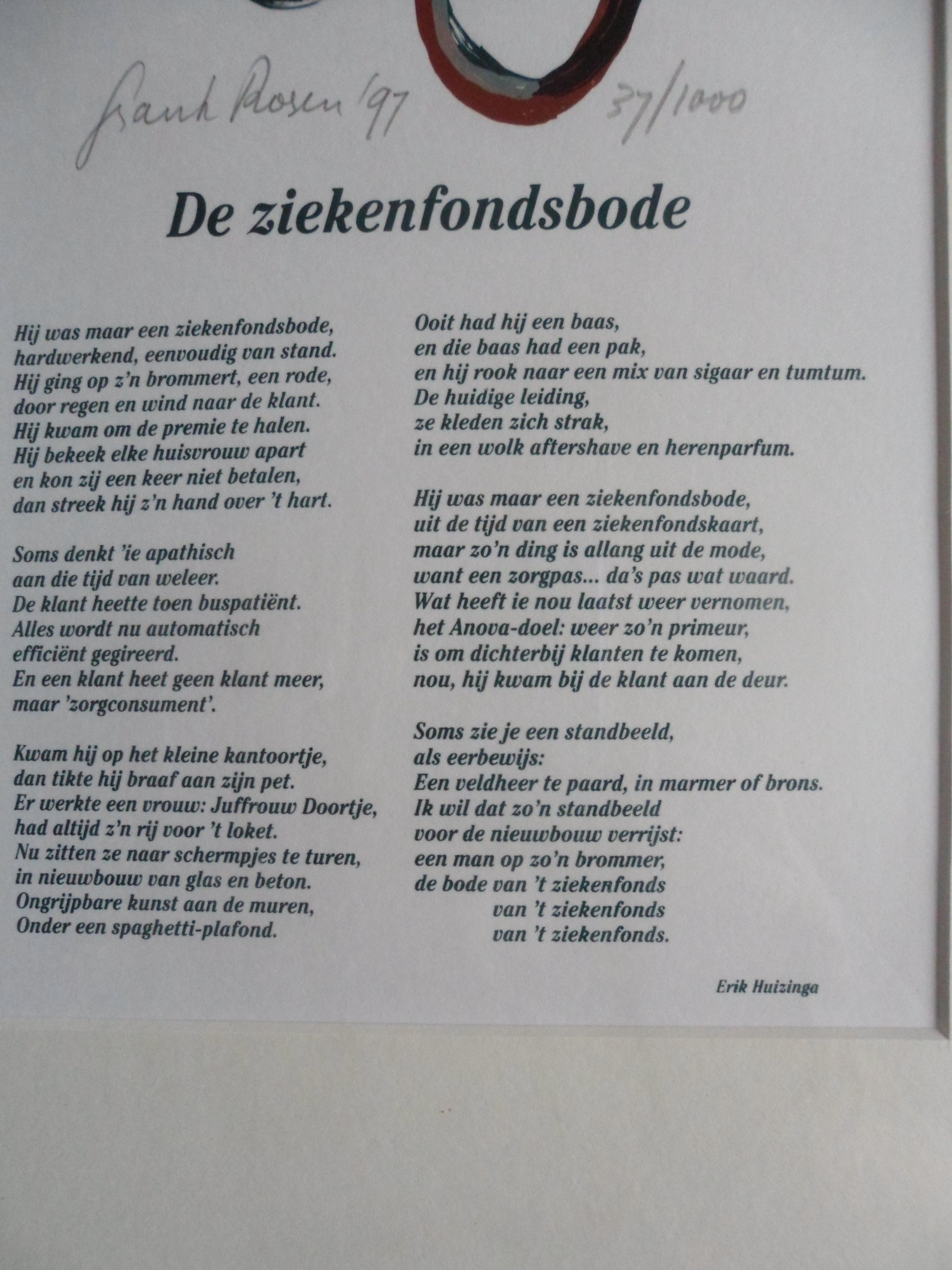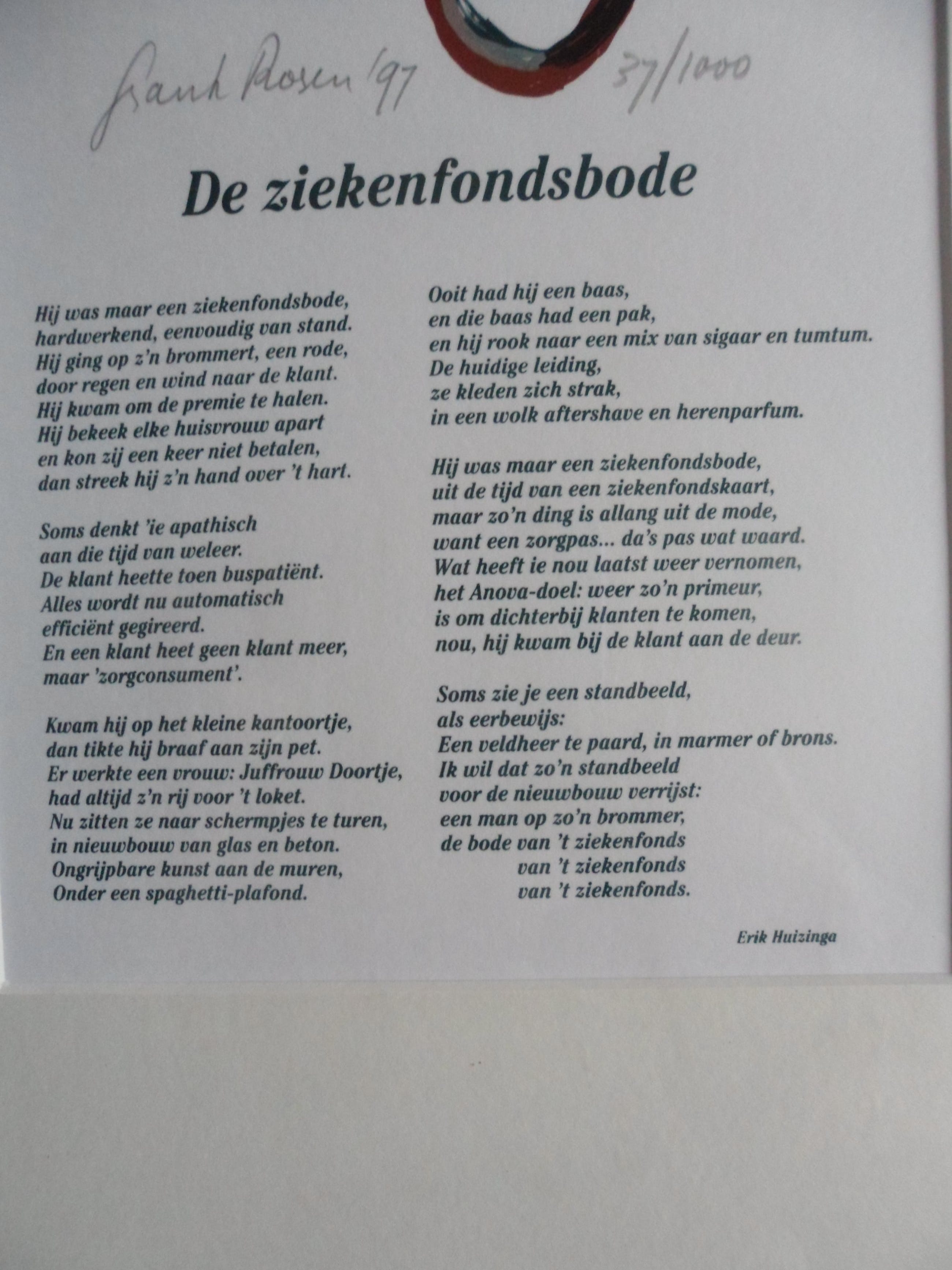 Zeefdruk van Frank Rosen en het gedicht van Erik Huizinga.
