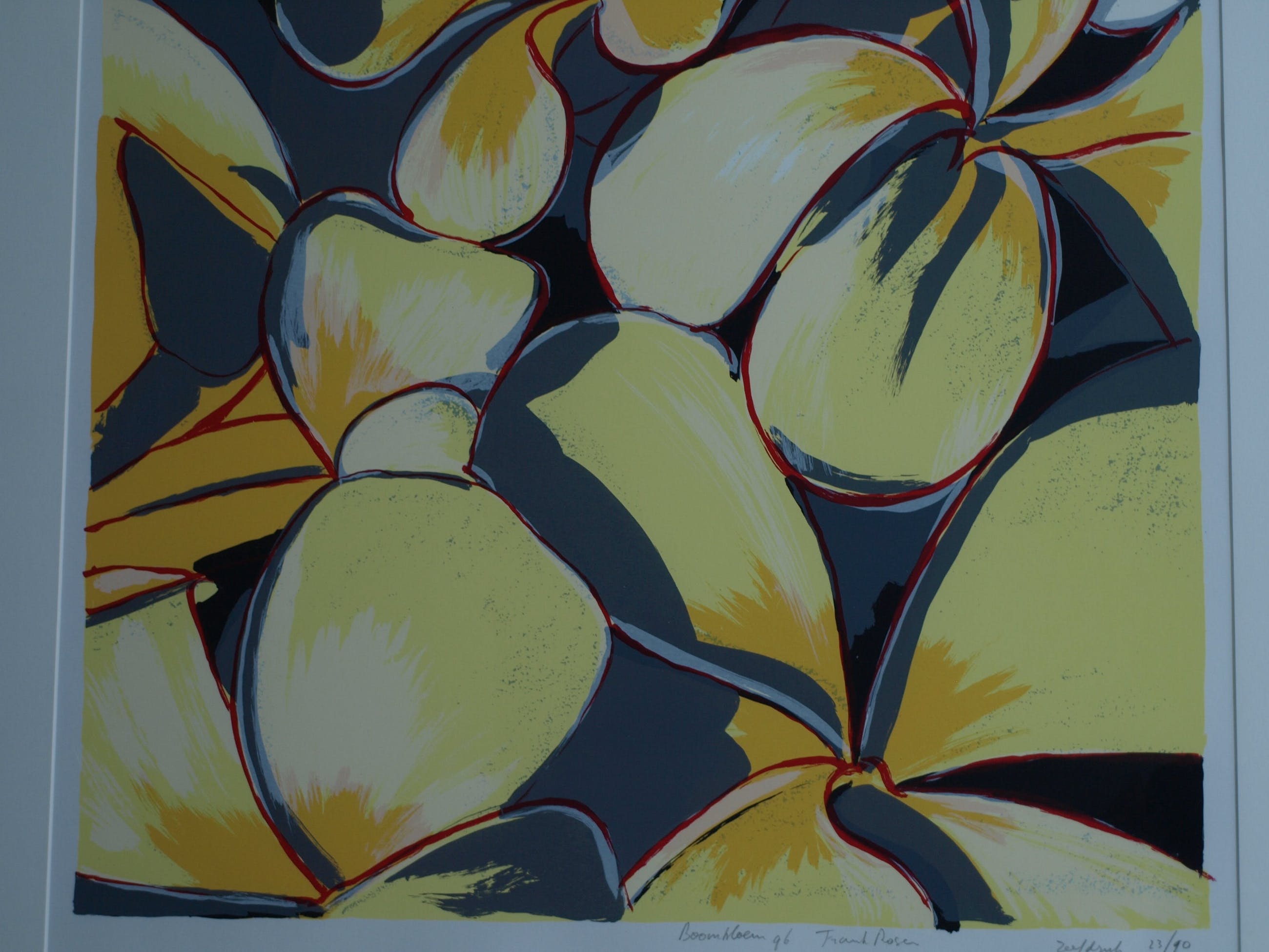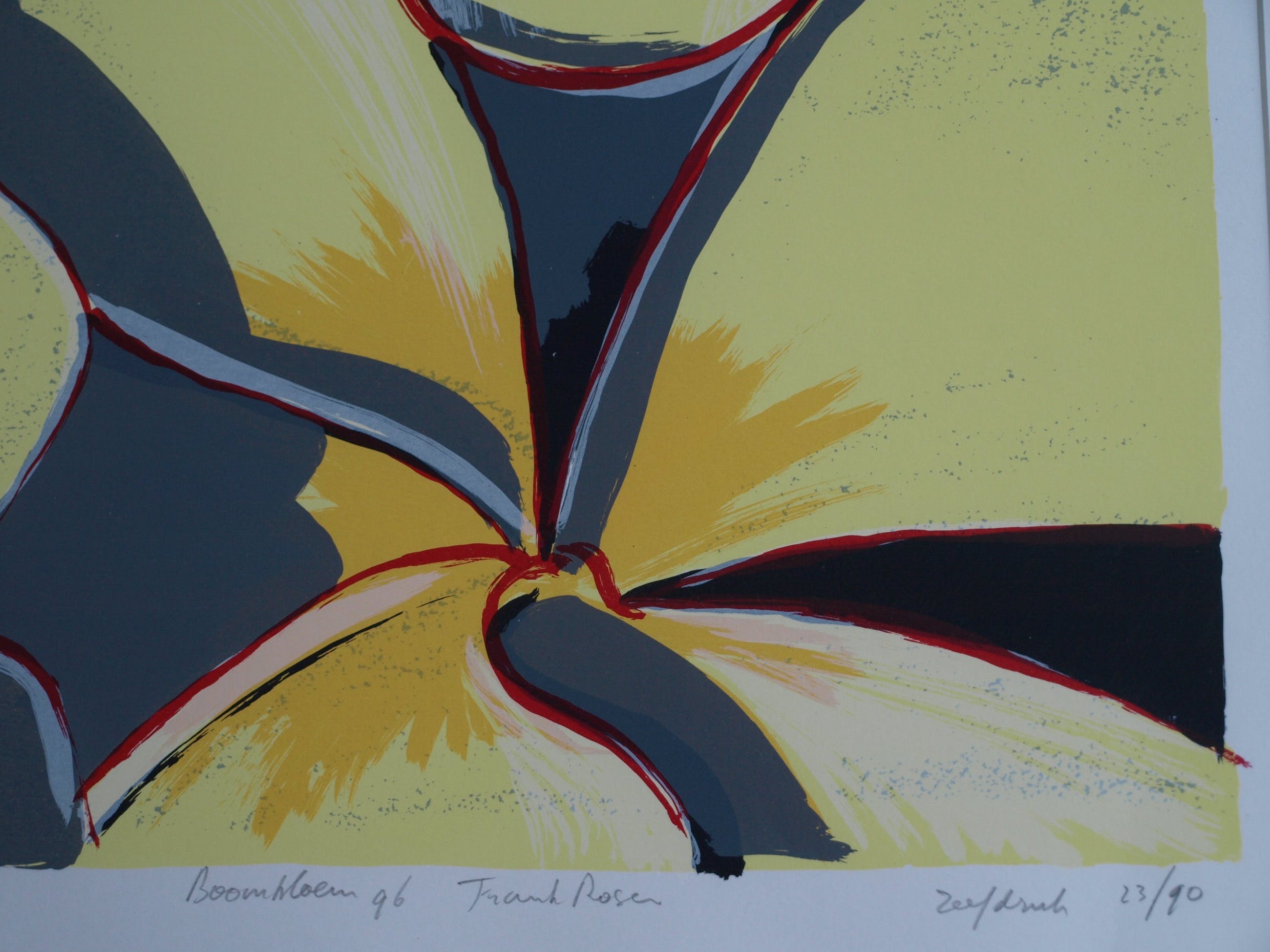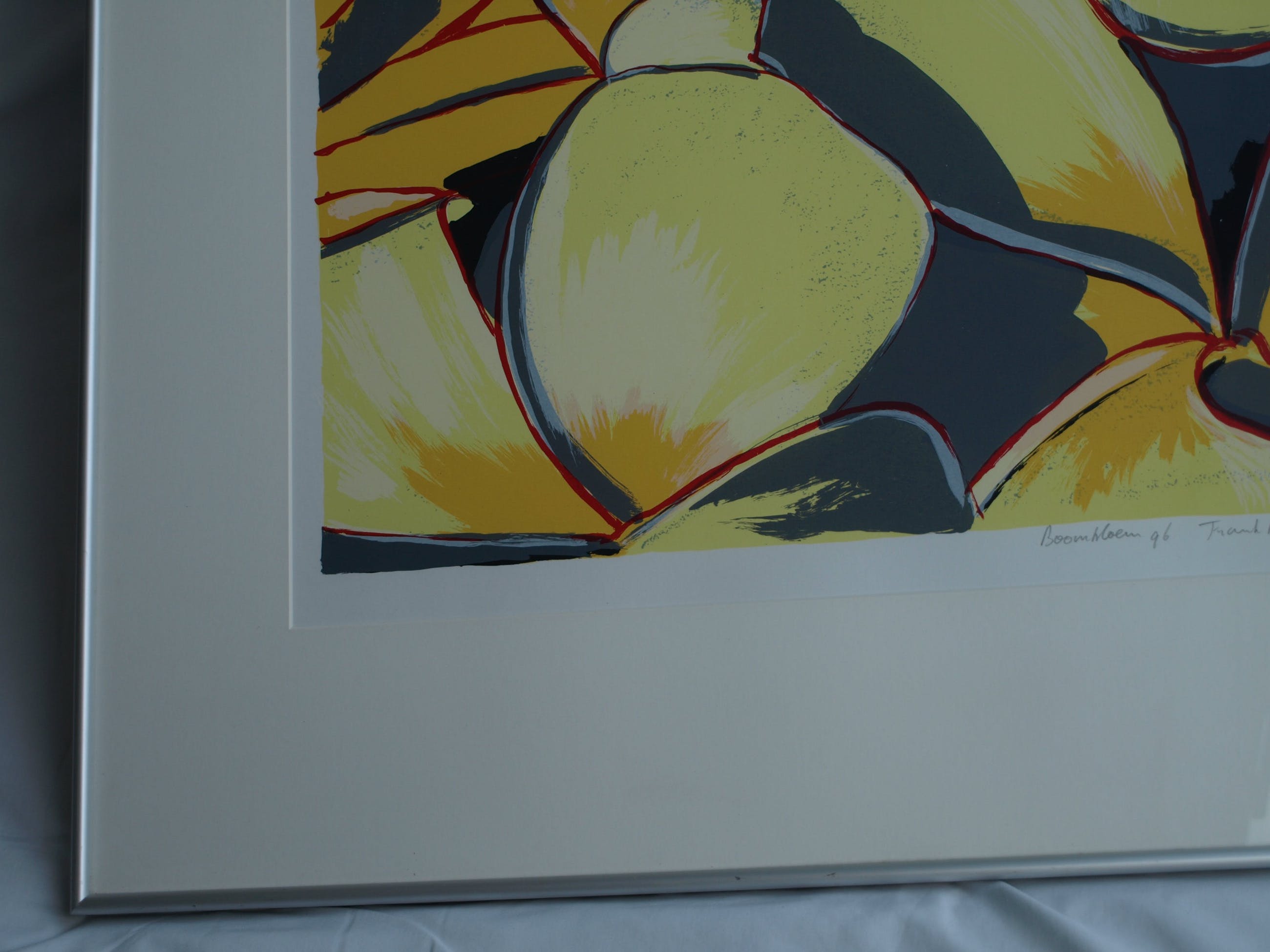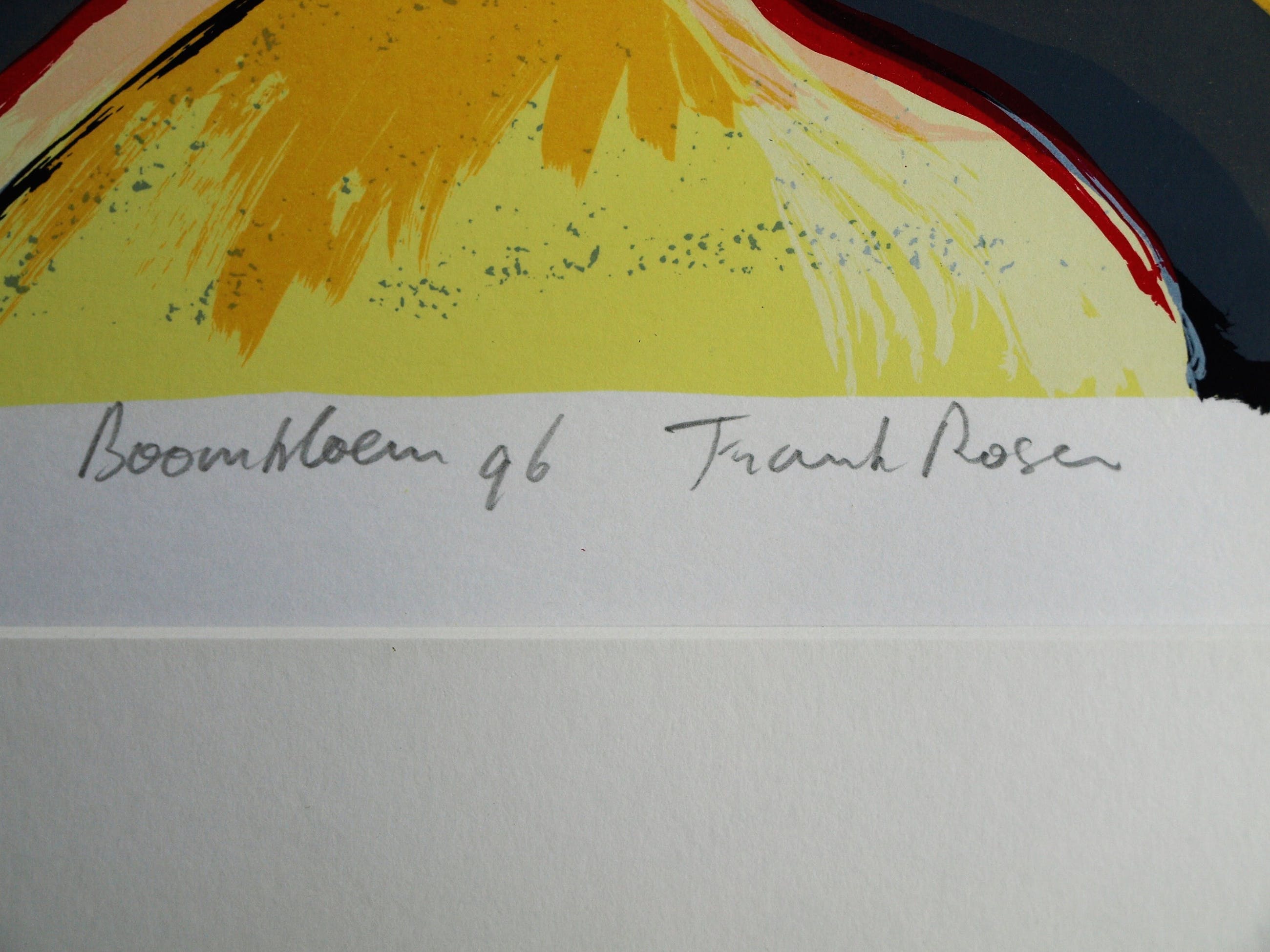 Een grote ingelijste zeefdruk uit 1996 van de Nederlandse kunstenaar Frank Rosen (1946).