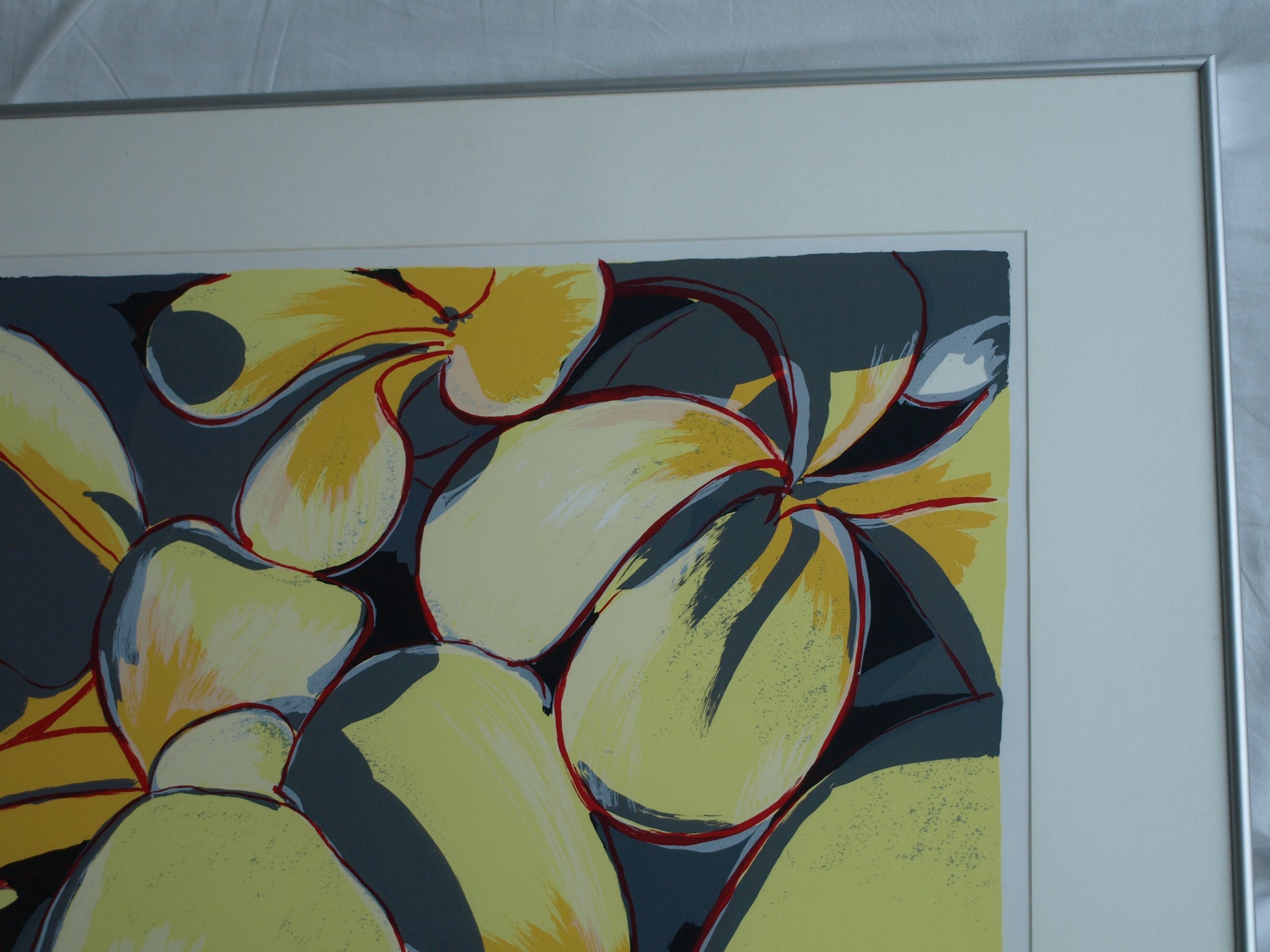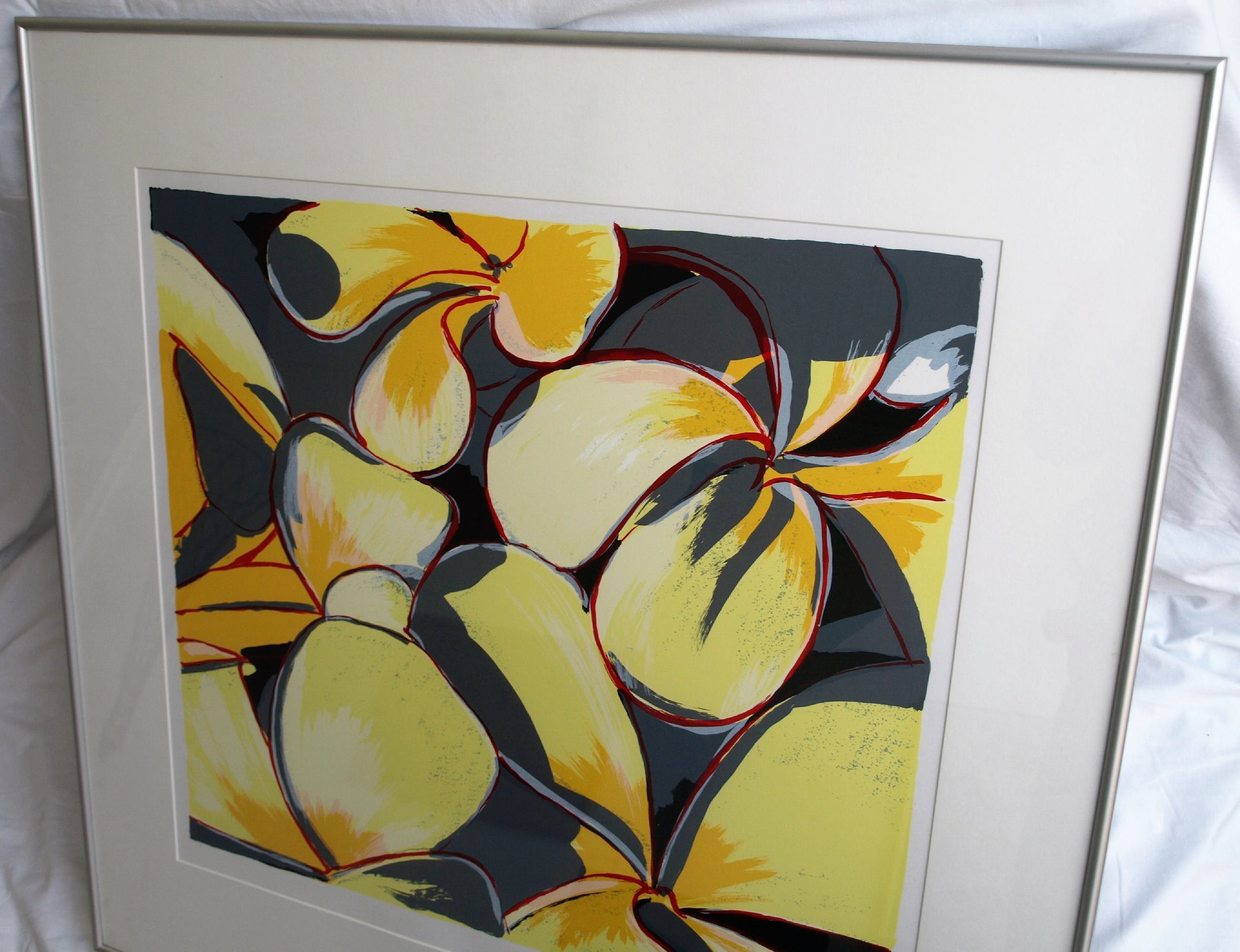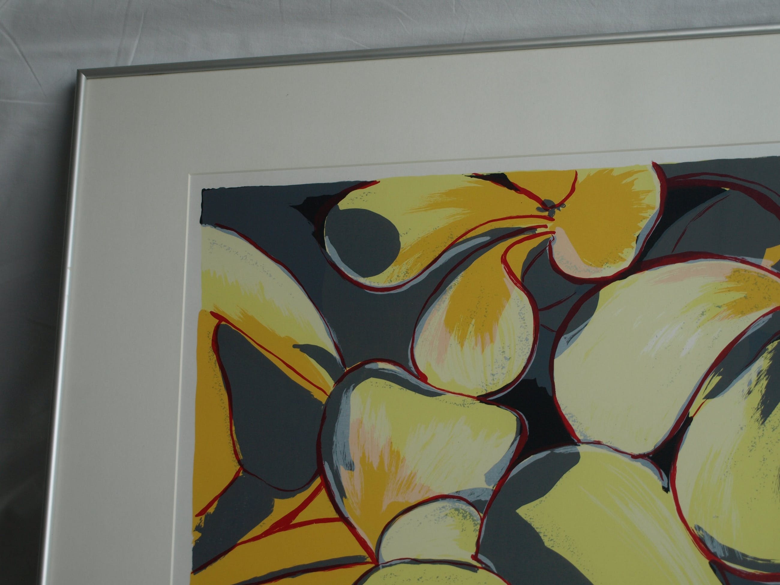 Een grote ingelijste zeefdruk uit 1996 van de Nederlandse kunstenaar Frank Rosen (1946).