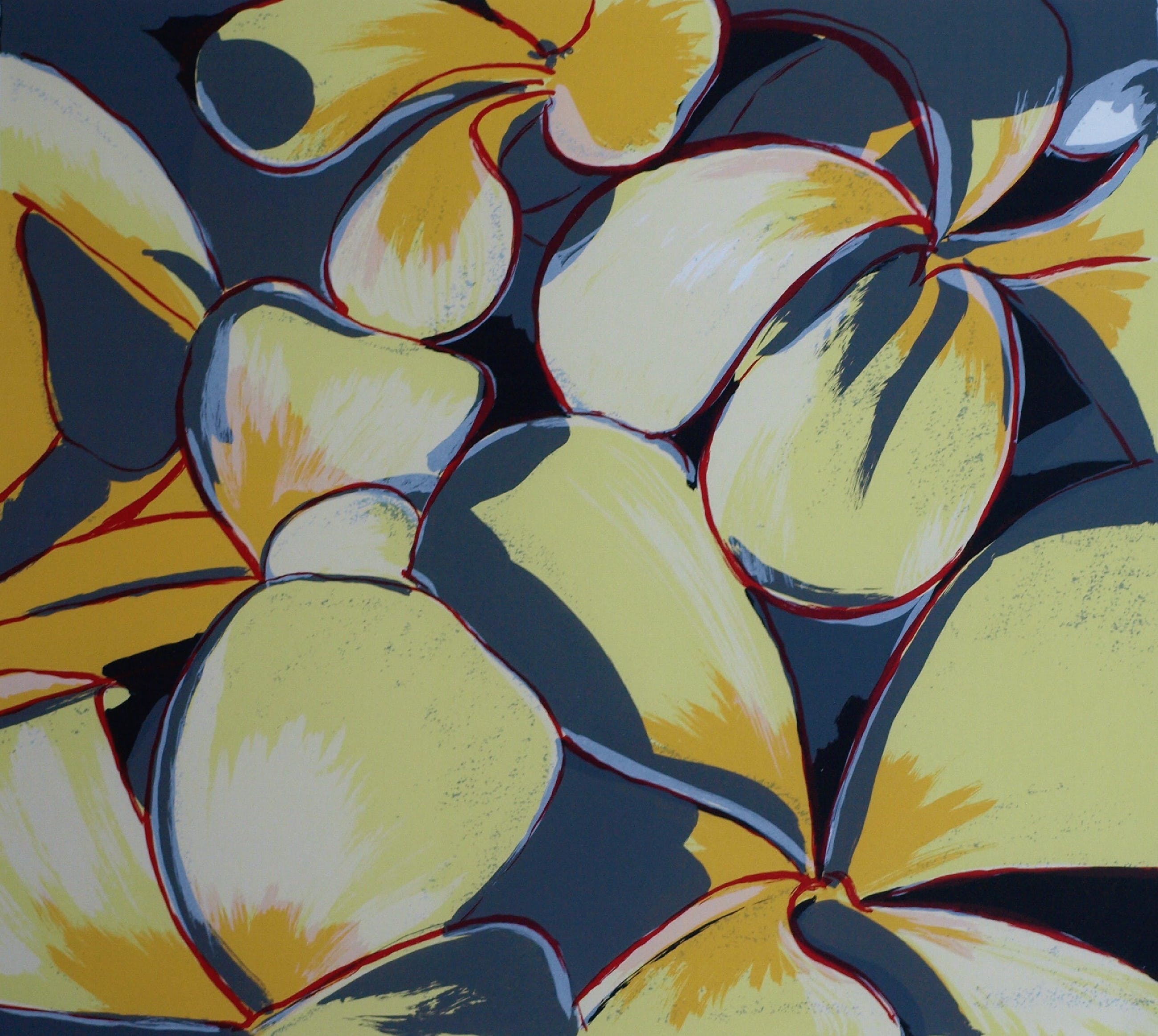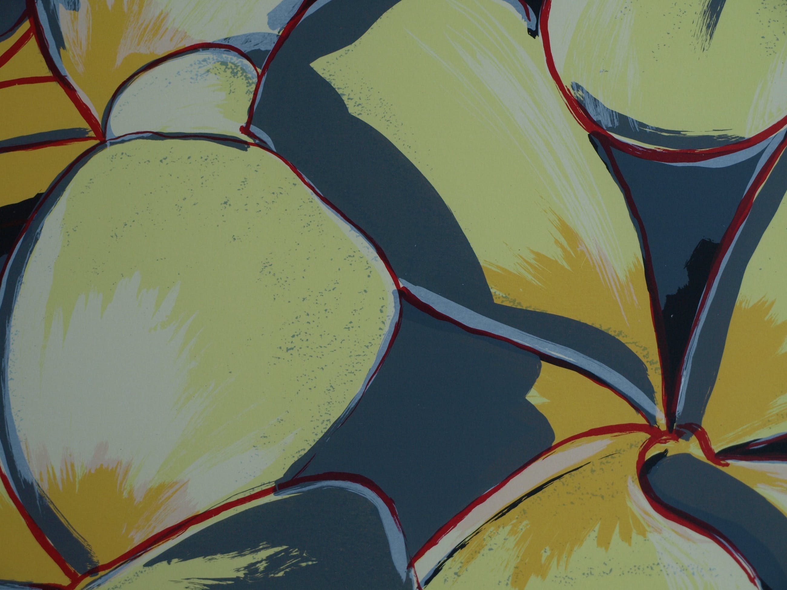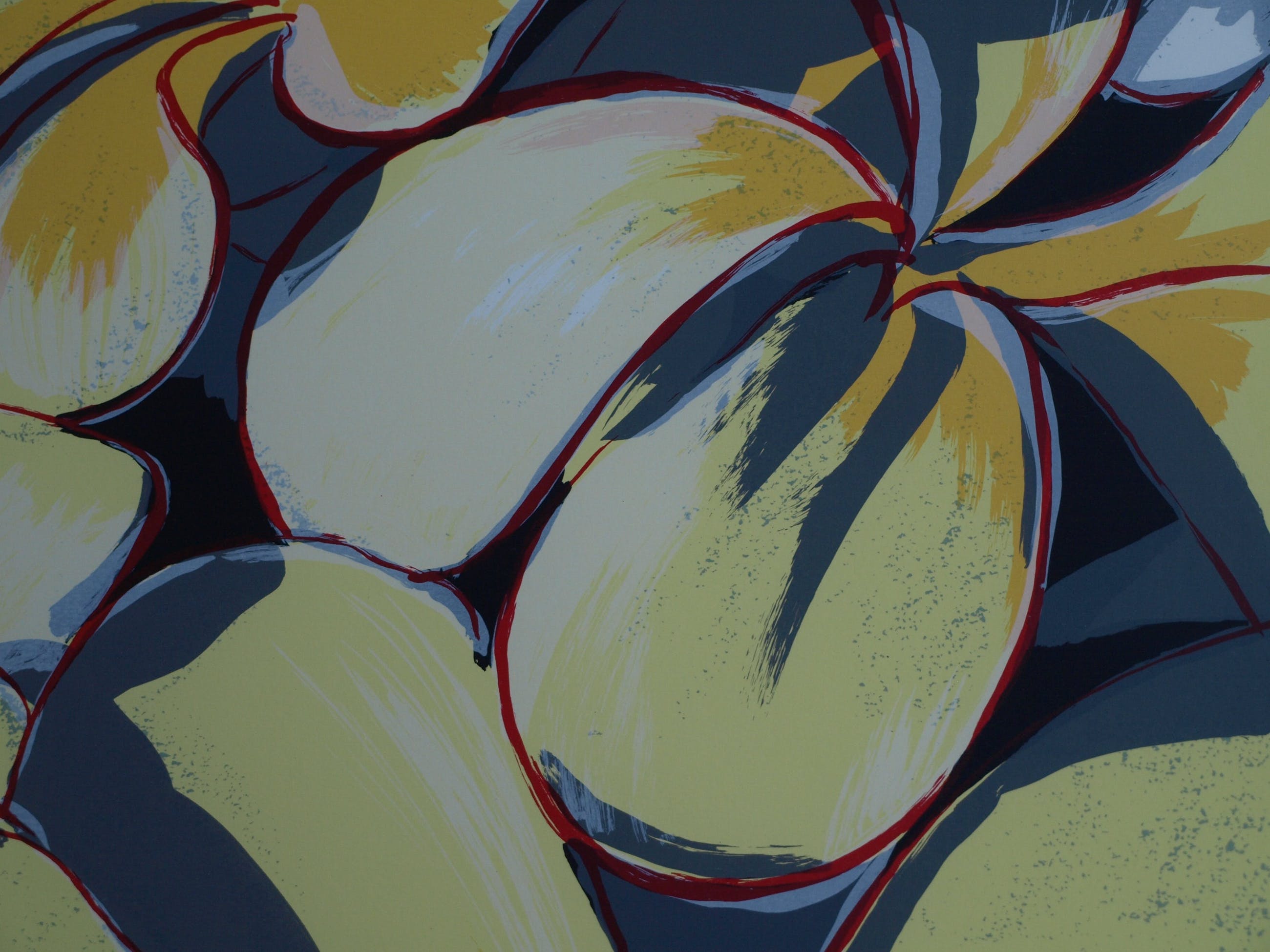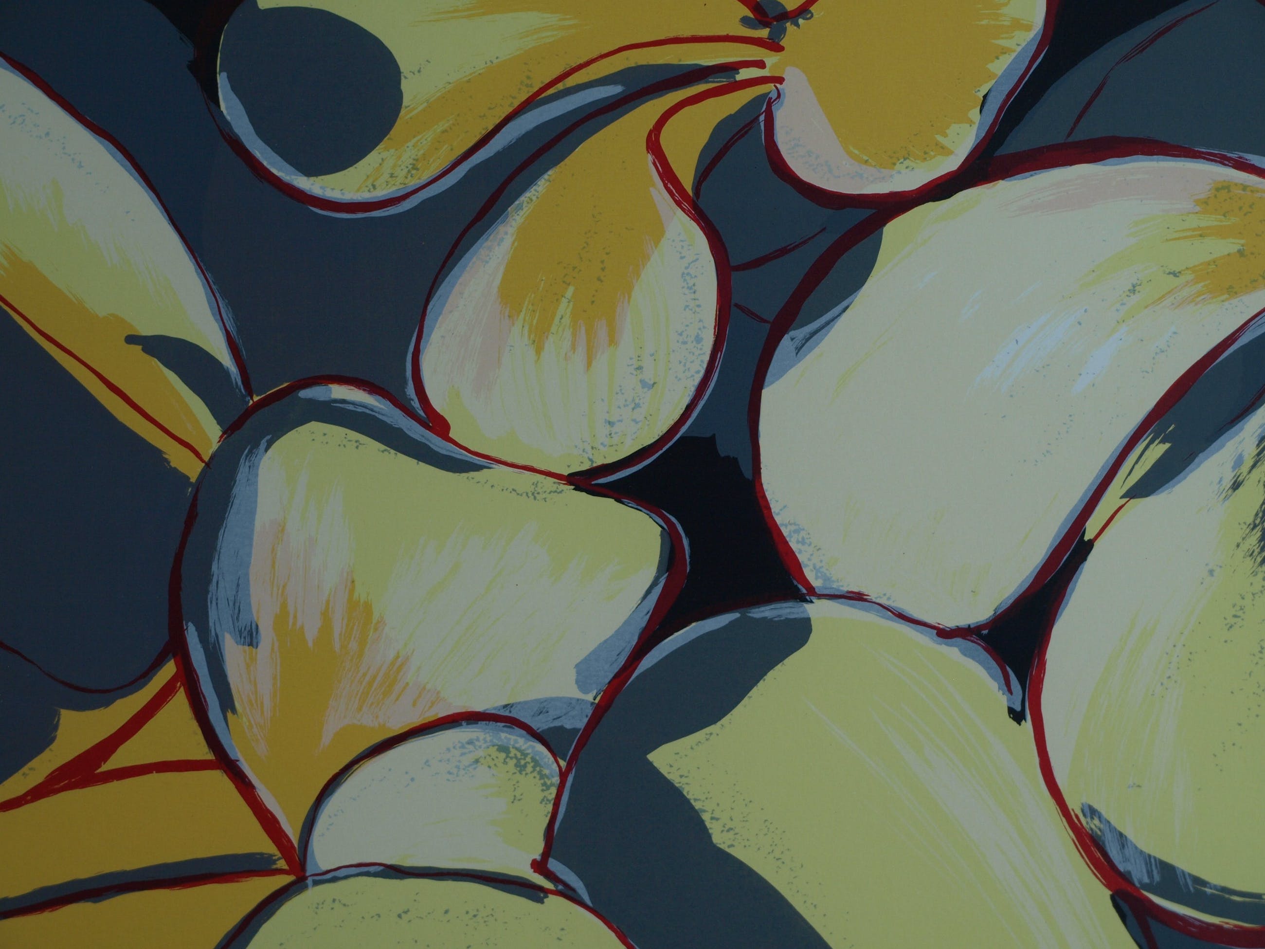 Een grote ingelijste zeefdruk uit 1996 van de Nederlandse kunstenaar Frank Rosen (1946).