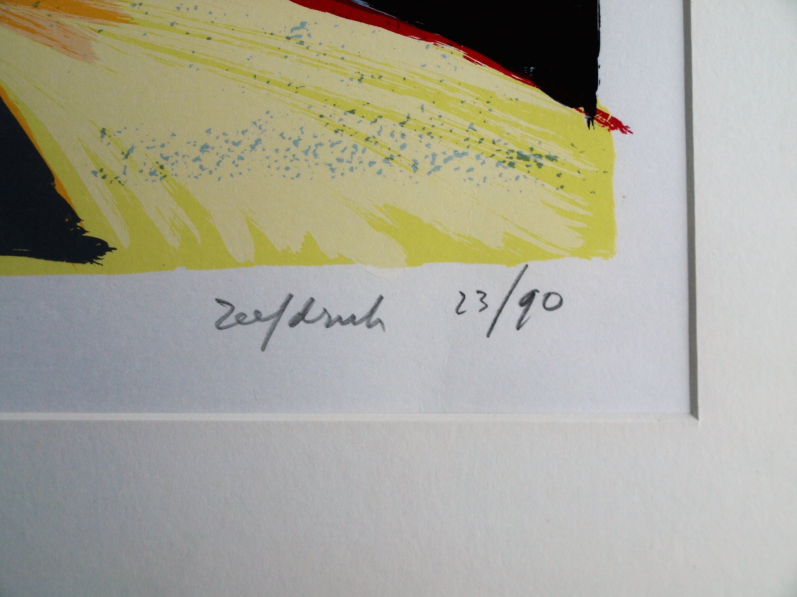 -Conditie: De zeefdruk is in zeer goede staat. Het passe-partout heeft aan de