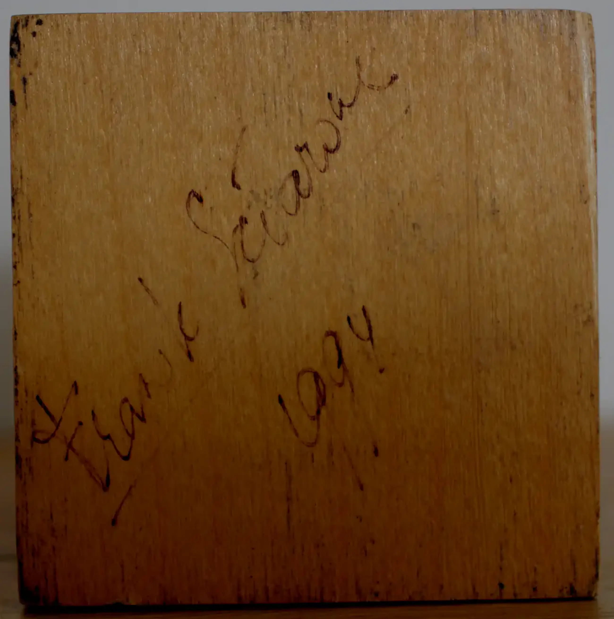 Houten sculptuur van Frank Sciarone. Abstract. Jaar: 1994. Afmetingen beeld: H9.5 x b6.5 x d6.5cm. Het werk is onderop, gesigneerd en gedateerd, door de kunstenaar. De authenticiteit van het aangeboden werk wordt volledig gegarandeerd. Een certificaat van echtheid, kan op aanvraag worden gemaild.