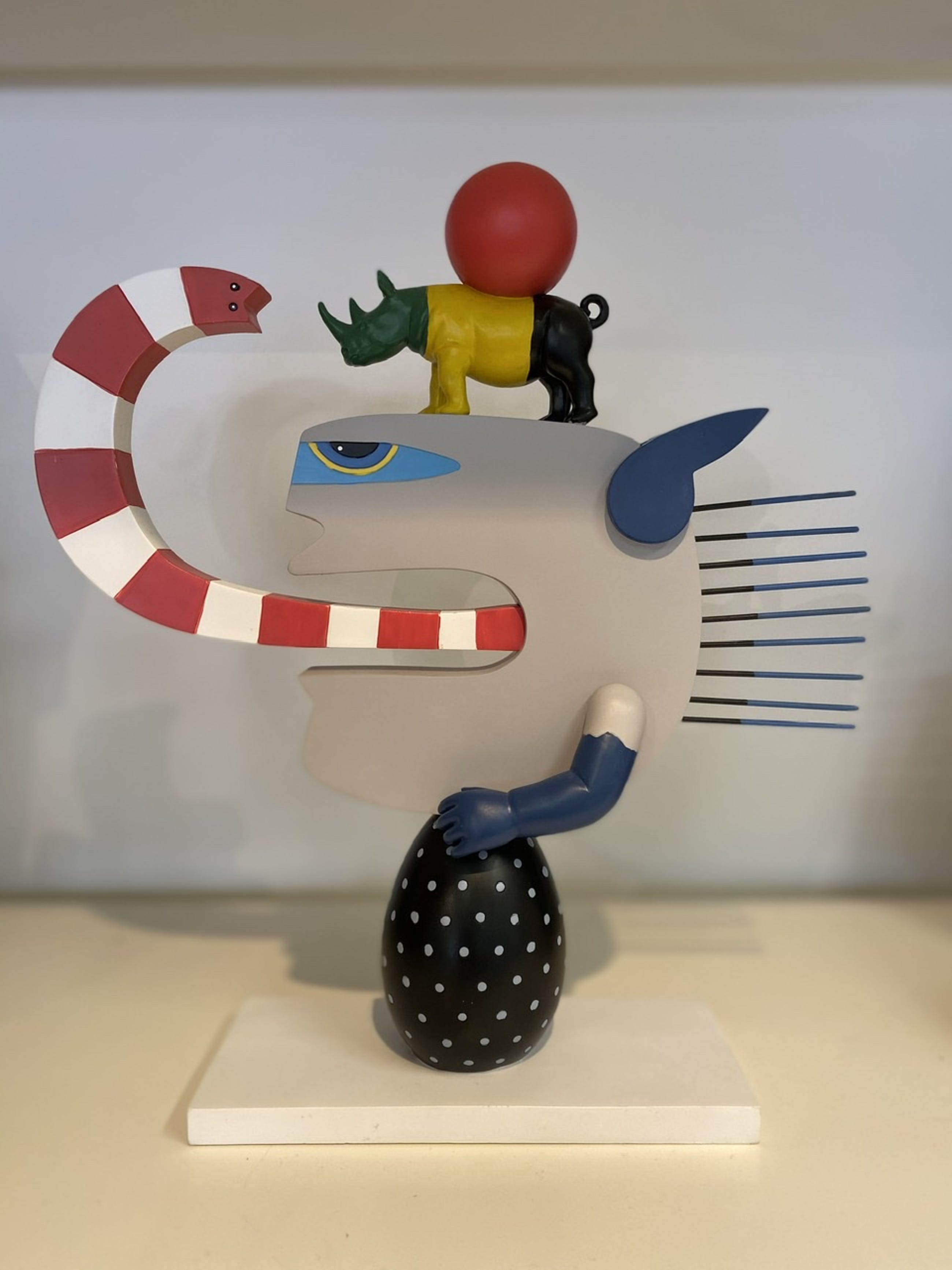 Modern kunstzinnig object van Frank Slabbinck. Titel: Inner Talks Op iedere zijde een andere oogopslag.