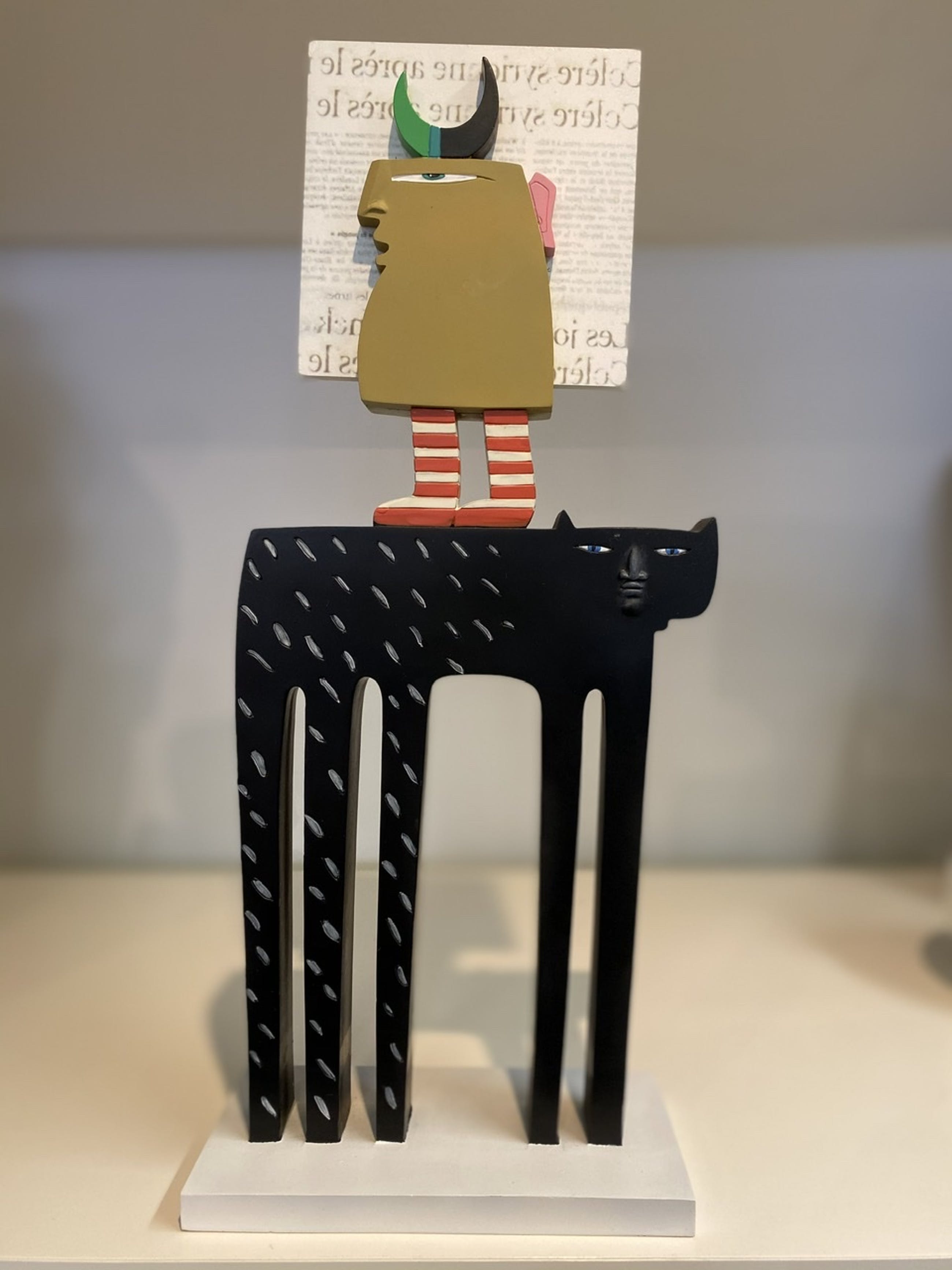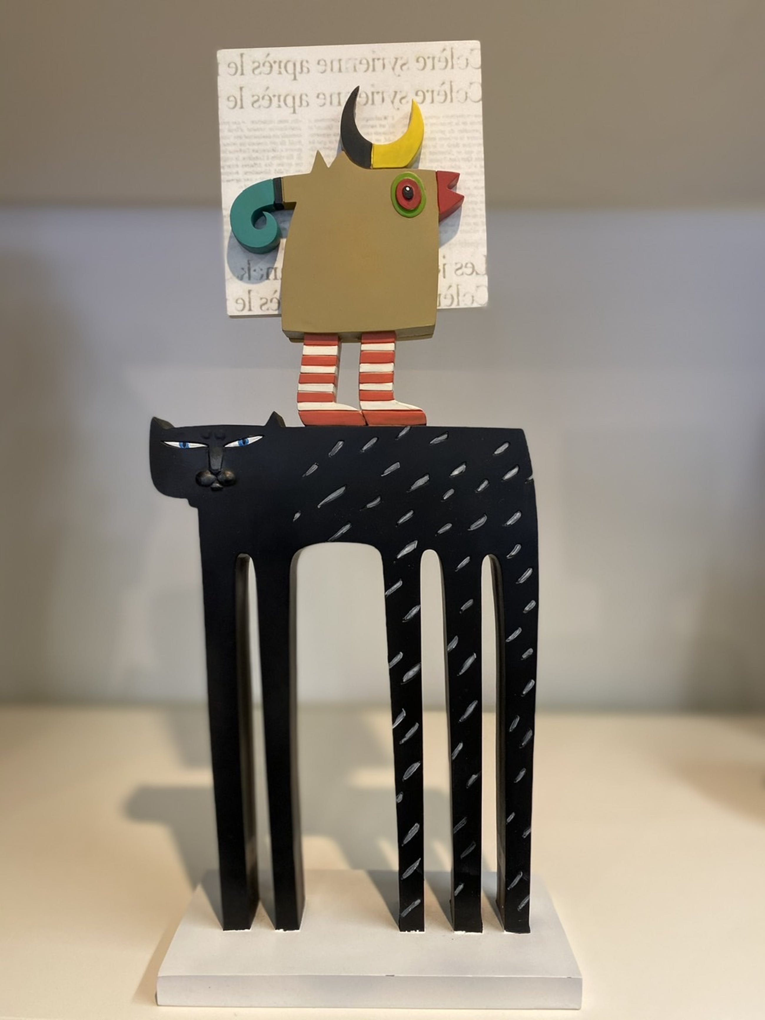 Modern kunstzinnig object van Frank Slabbinck. Titel: The black cat Iedere zijde is anders.