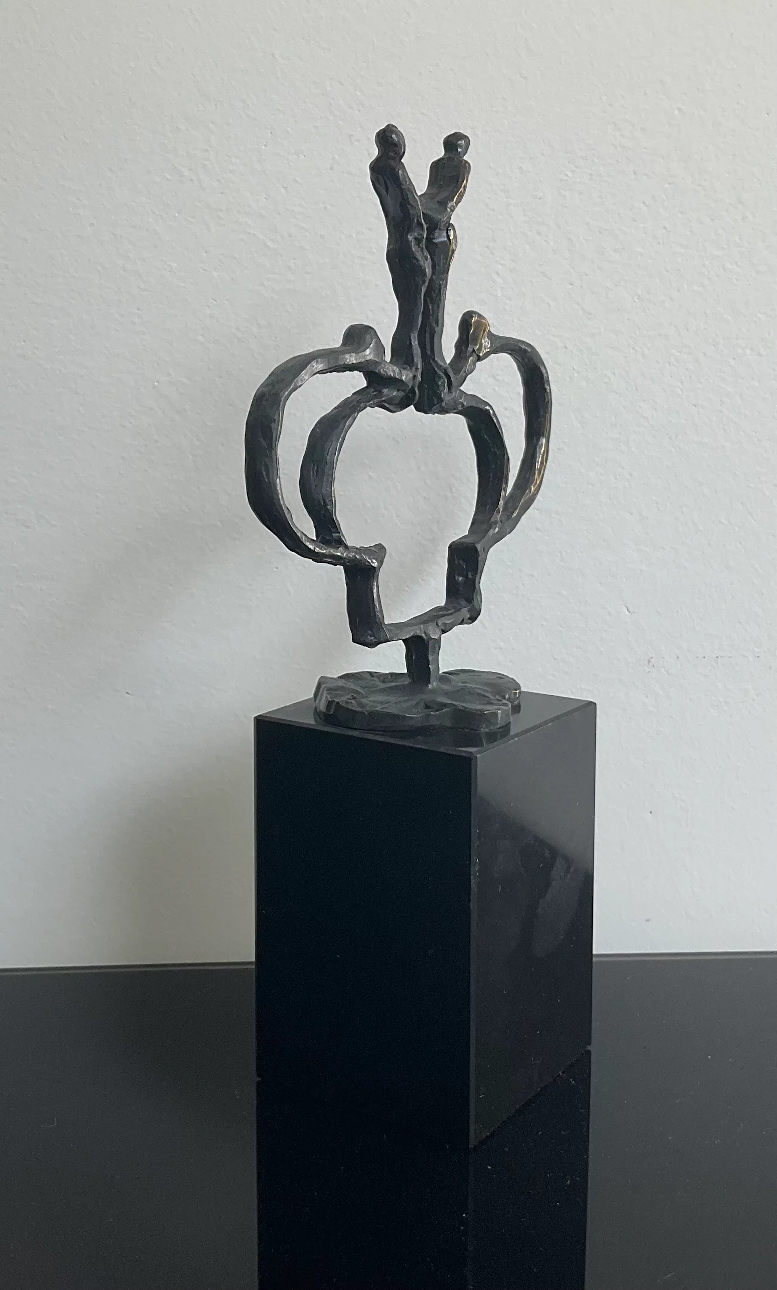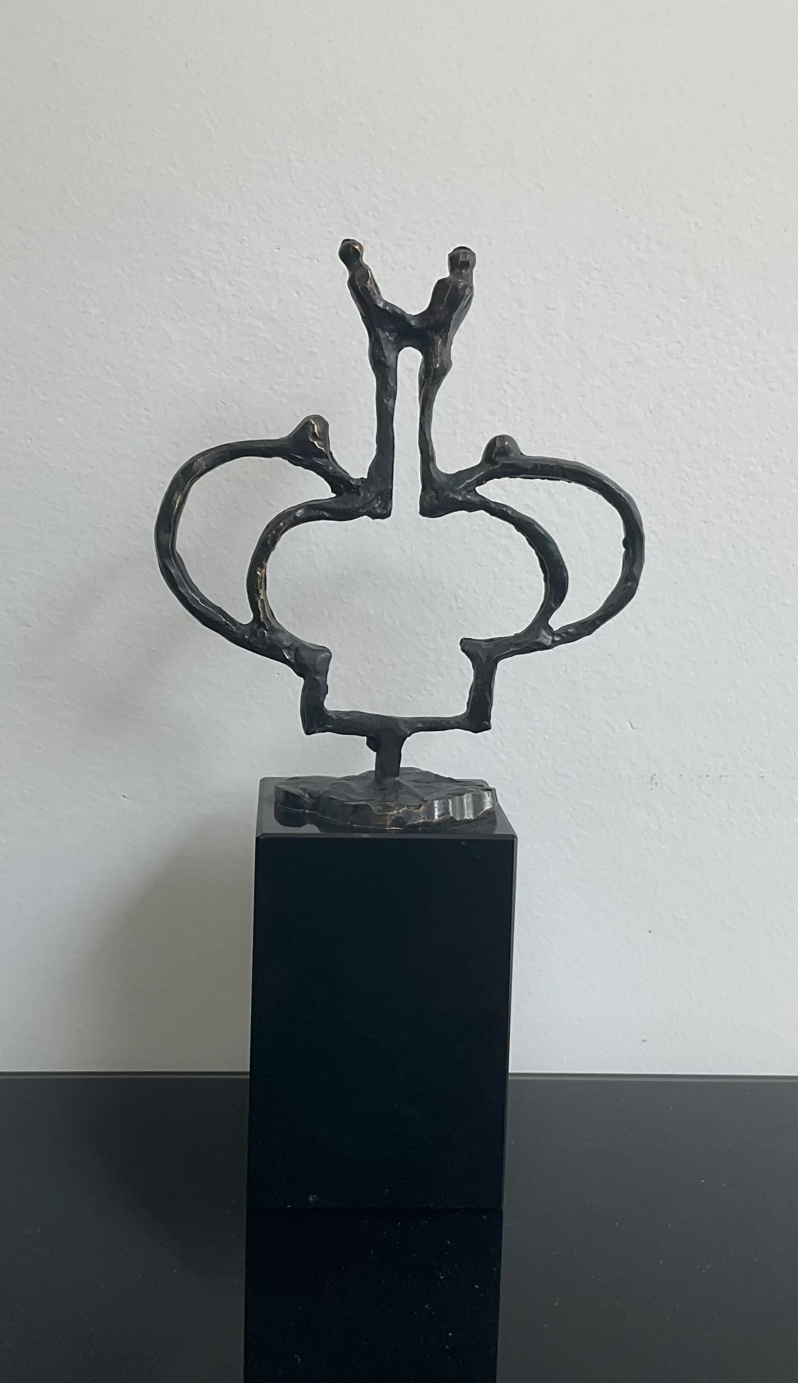 Het beeldje is 15 cm hoog, incl. de zwart granieten voet van 6 cm. Het bronzen of verbronsde beeldje van Frank Stoopman draagt ook wel de naam: Het werk bekronen.