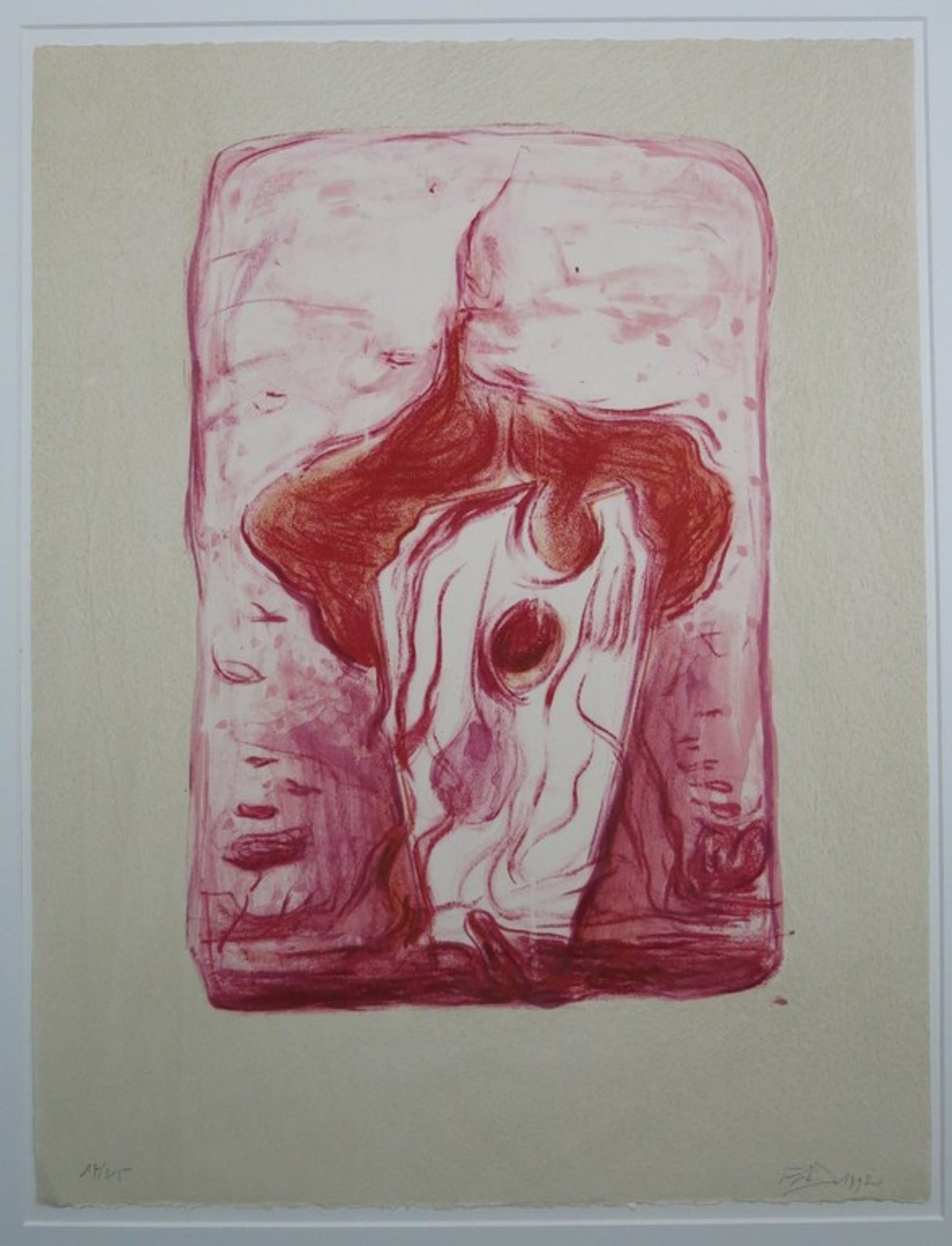 Materiaal: Litho op geschept papier, bevestigd achter passe-partout
