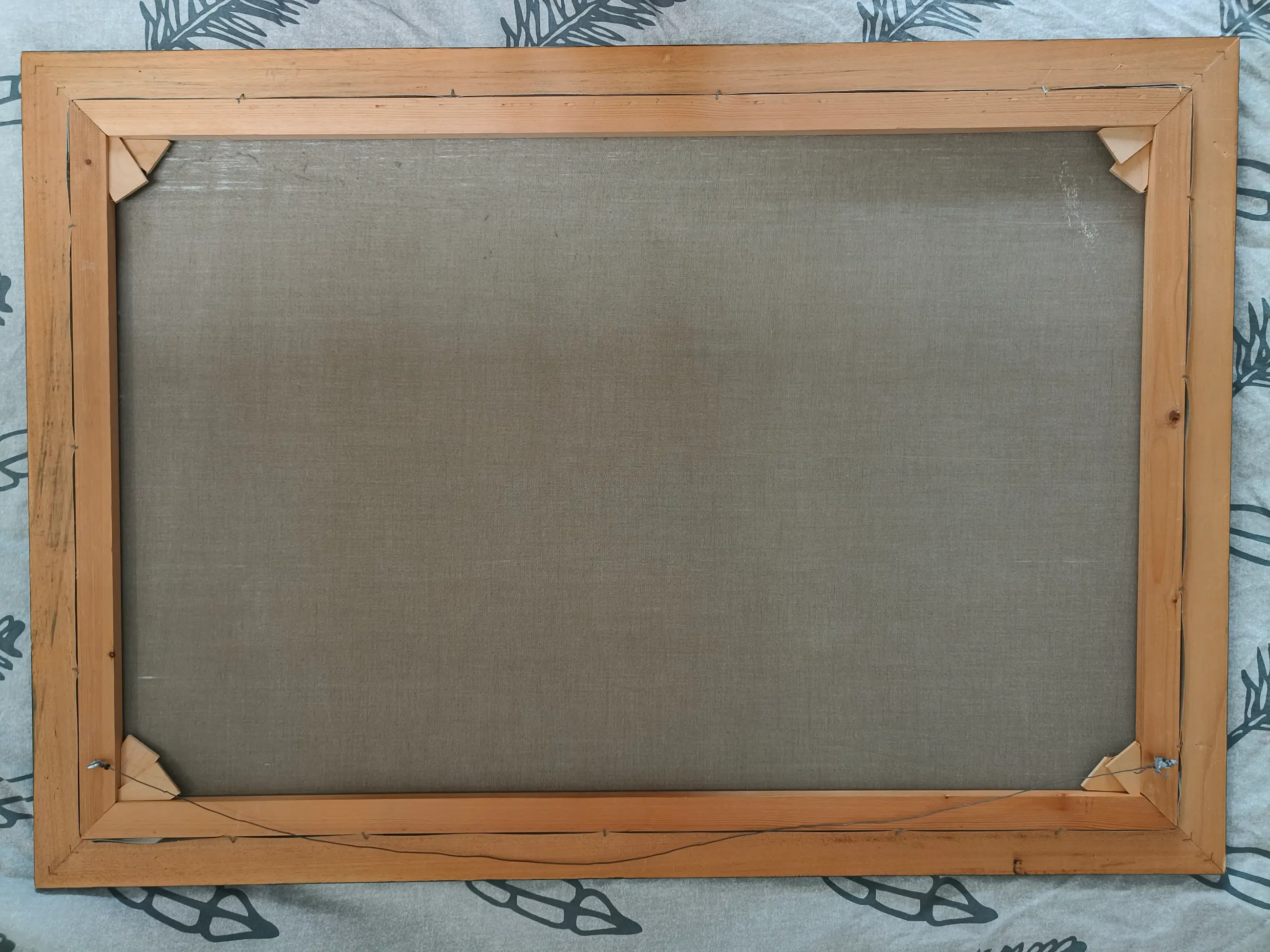Schilderij in goed staat, techniek olieverf op doek. Afmetingen inclusief lijst: 89,5 cm x 86,5 cm