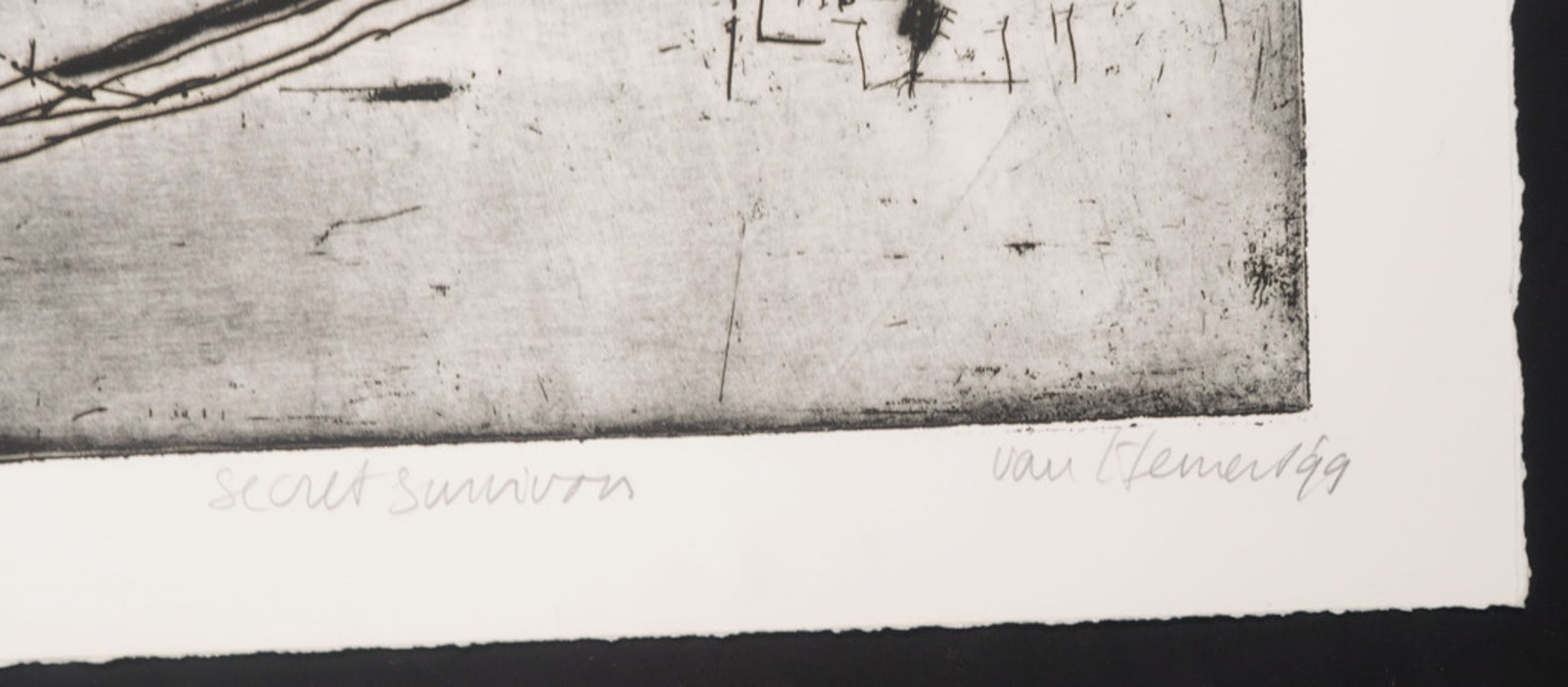 Conditie: Beeld in zeer goede staat. In de hoek rechtsboven een licht kreuklijntje. Ingelijst achter passe-partout niet zichtbaar.