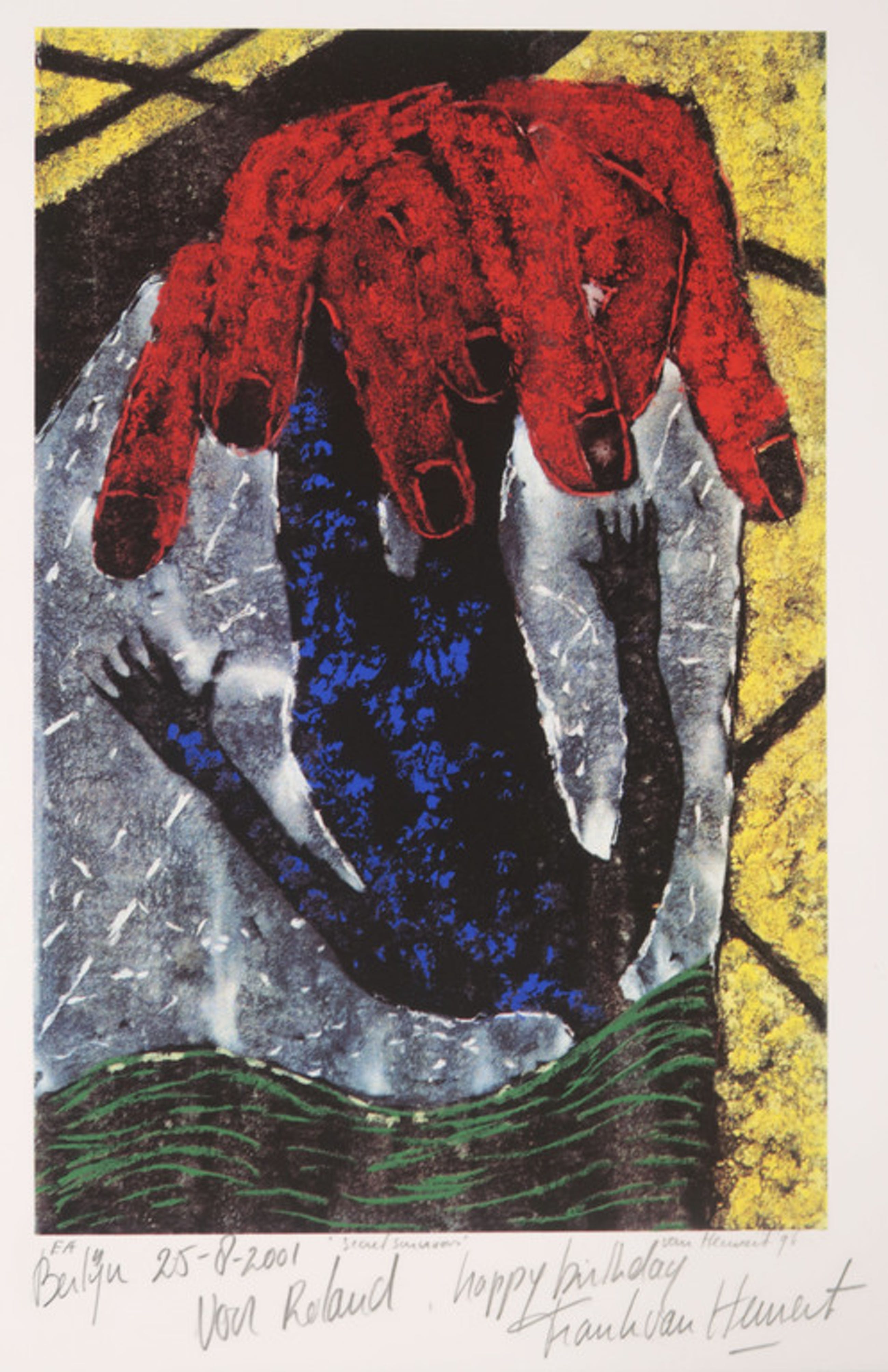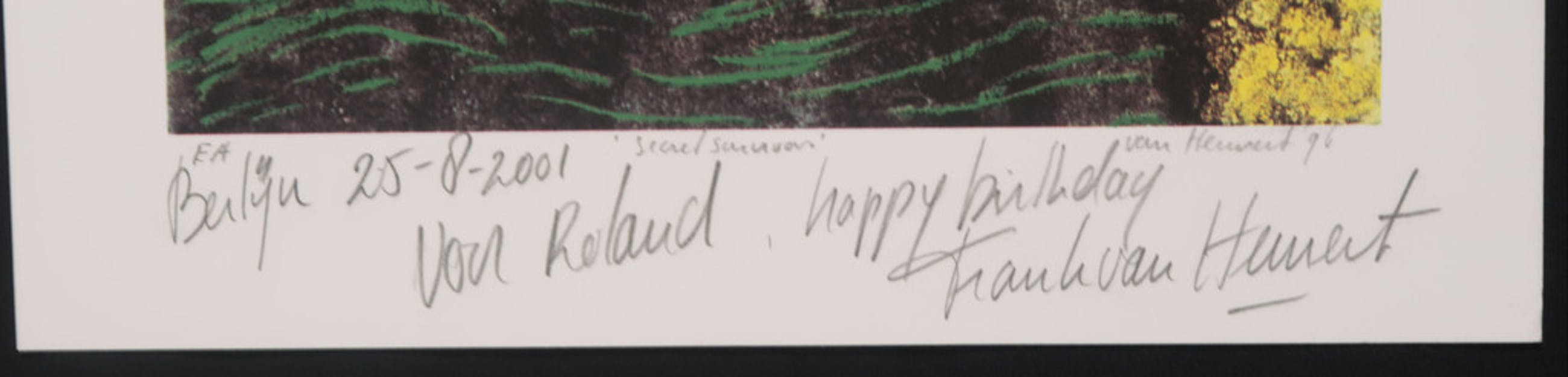 Gesigneerd: Ja, handgeschreven met potlood (rechtsonder) (Met annotatie in potlood 'Voor Roland...')