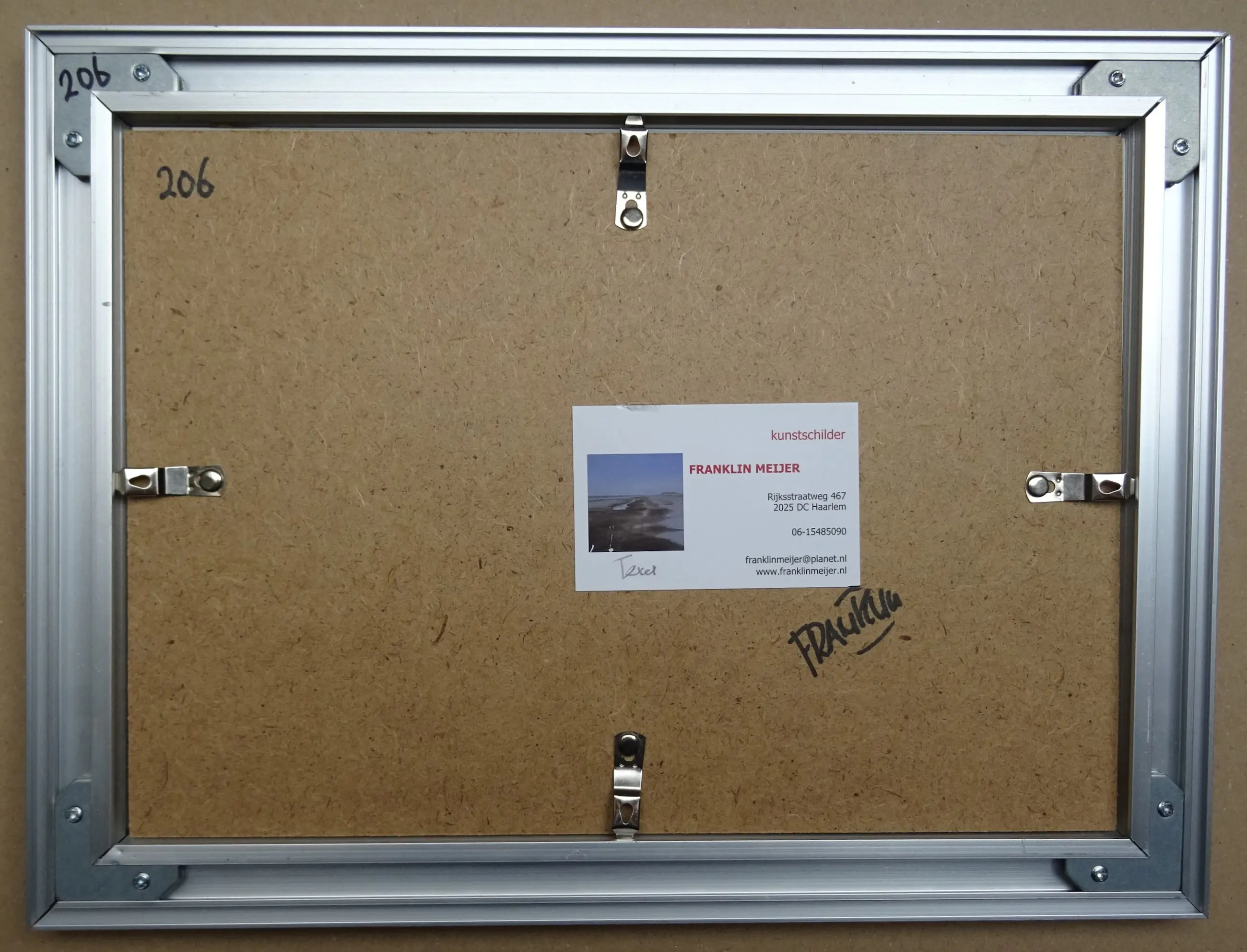 Franklin Meijer, hedendaagse kunstenaar, geboren in 1945. Exposeerde jarenlang op Texel, Terschelling en in Haarlem. Heeft een voorliefde voor het strand, de kust en het wad.