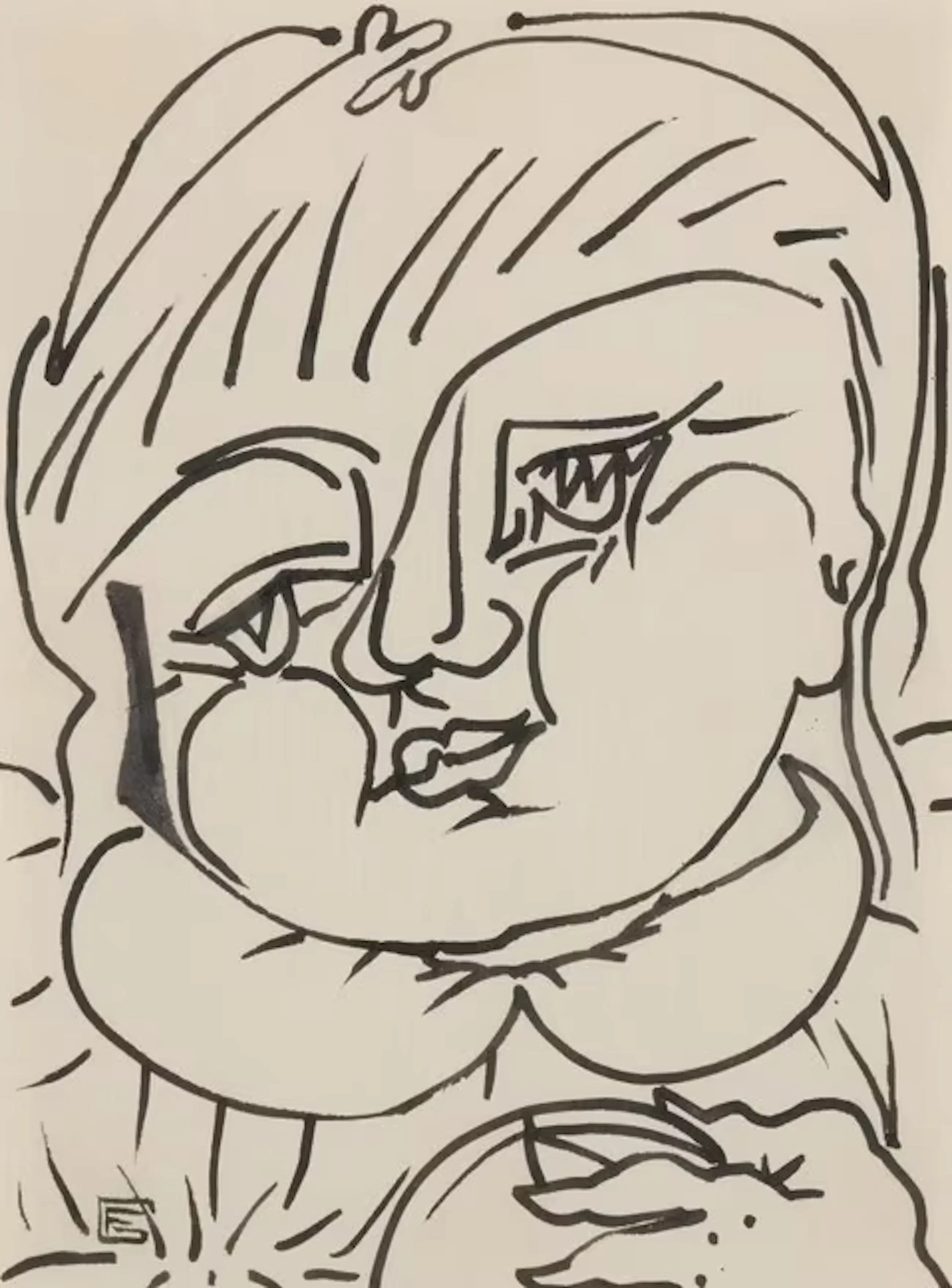 Uit mijn privécollectie bied ik een origineel werk aan van Françoise Gilot (gesigneerd met het monogram van de kunstenares) uit 1951. De tekening in penseel en inkt is geregistreerd in het Gilot-archief onder nummer 60946.03, getiteld "Paloma II Studie voor Pouvoir Tout Dire". Het papier meet circa 23 x 17,2 cm. Het werk wordt ingelijst aangeboden. Tekeningen uit deze serie studies zijn bij veilinghuis Sotheby's verkocht voor bedragen tussen $ 6.390 en $ 18.900. Ophalen heeft de voorkeur. Verzending is op aanvraag ook mogelijk.