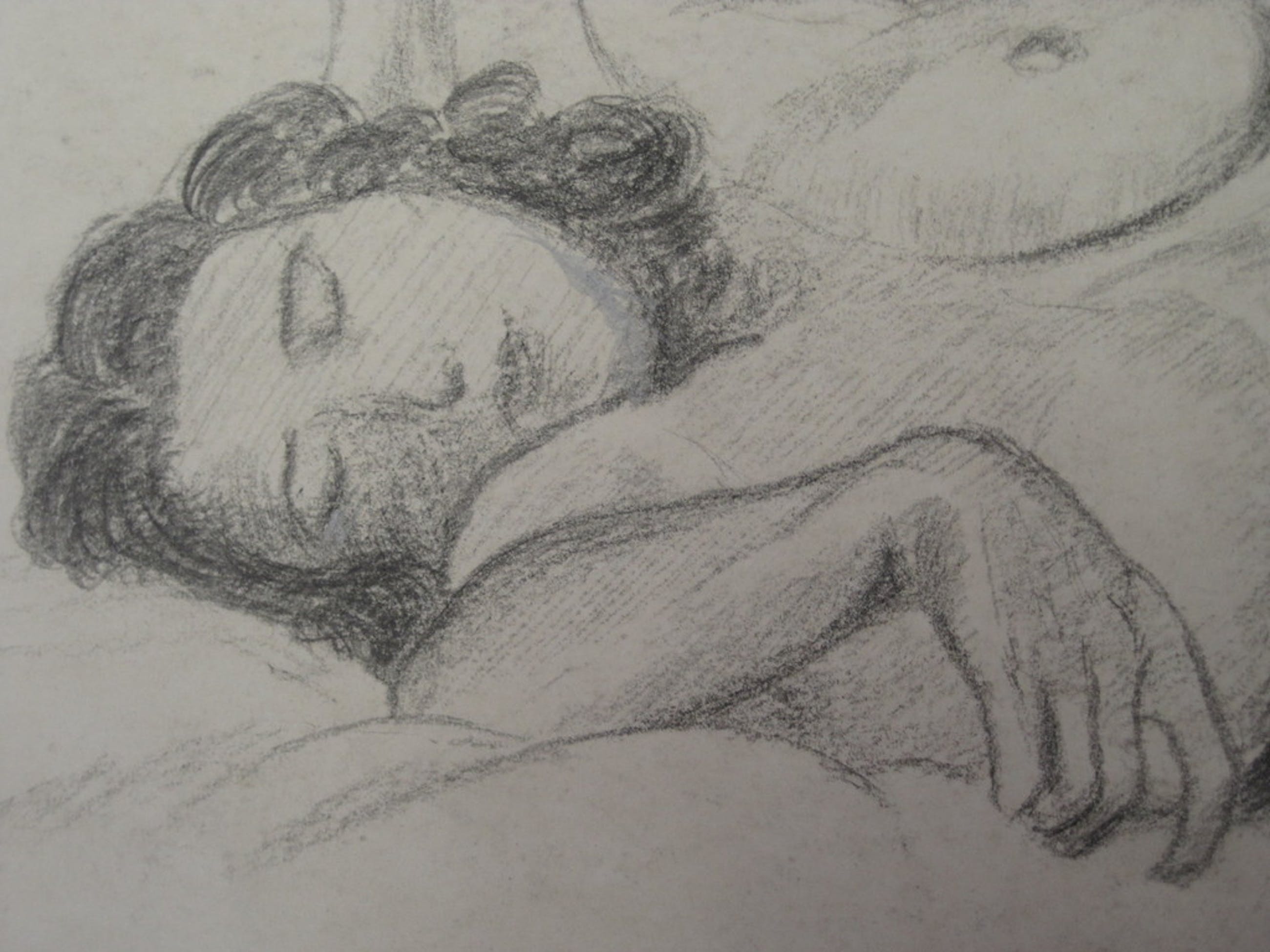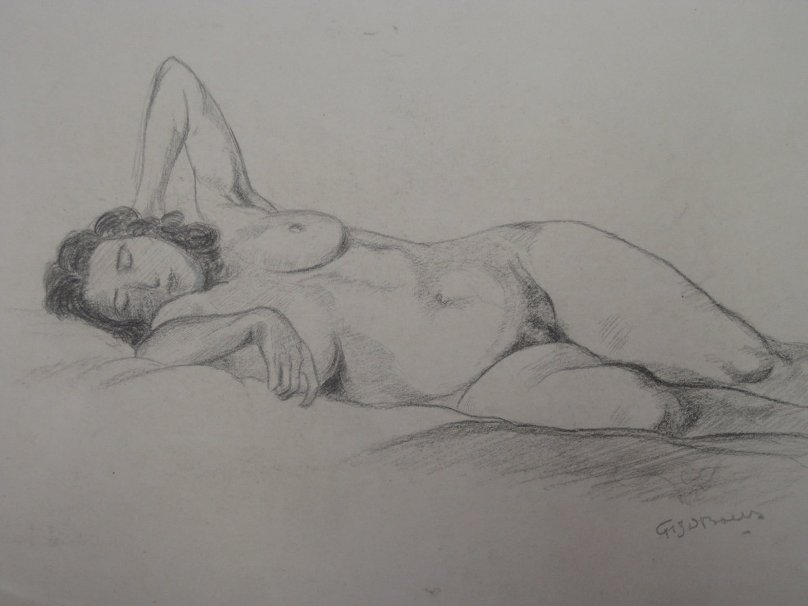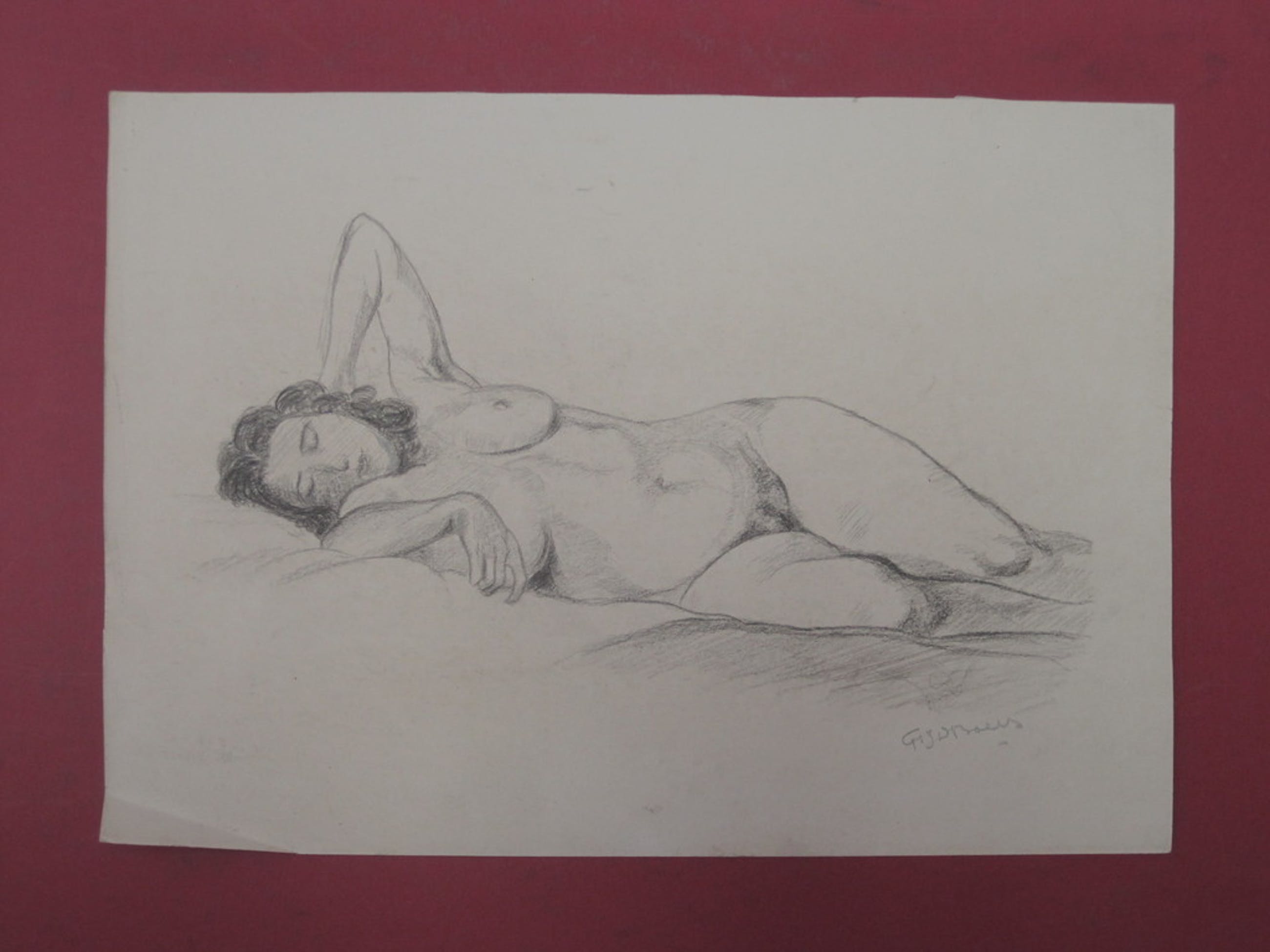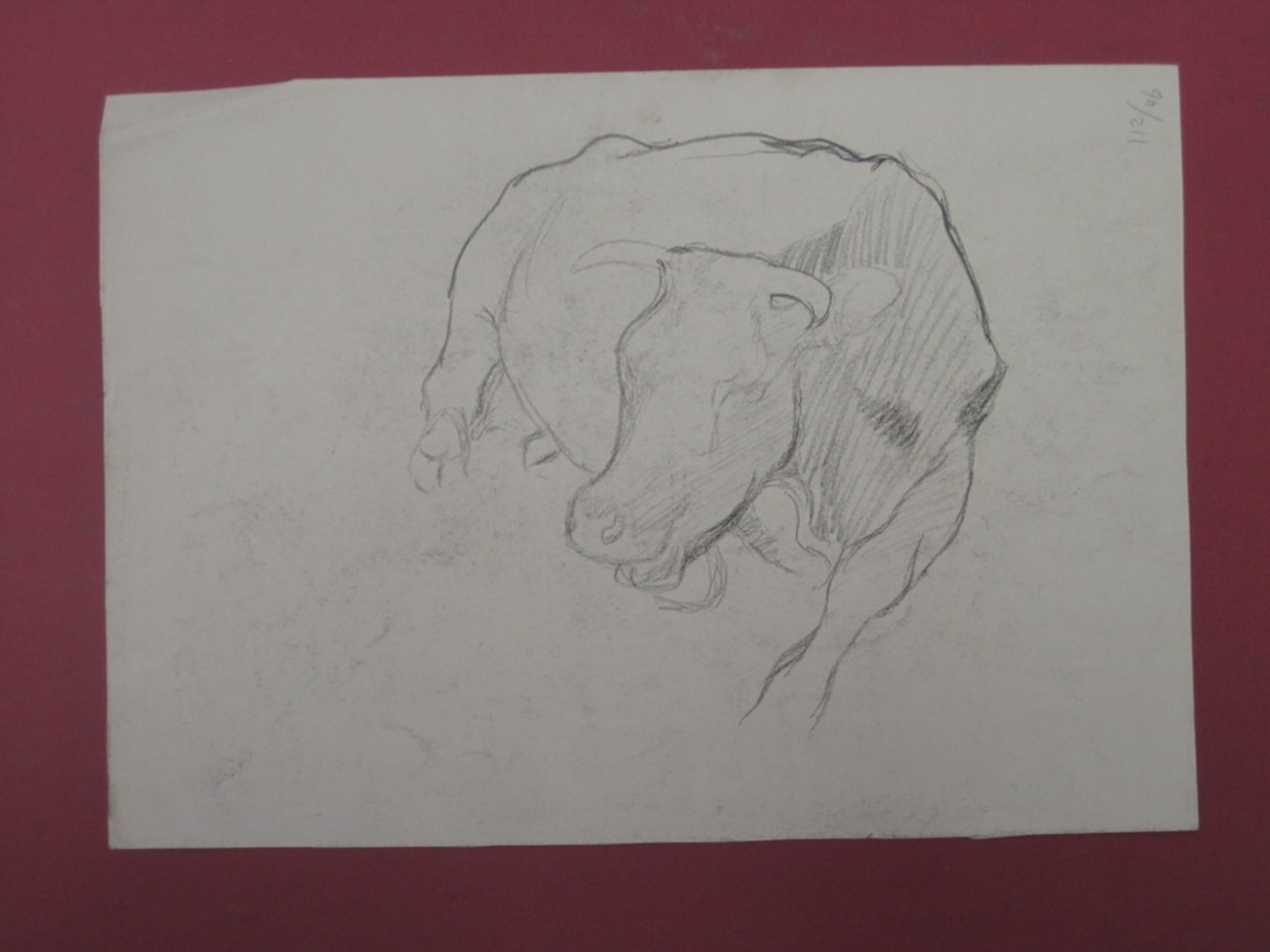 Titel/Voorstelling: Liggend naakt ( op achterzijde schets van koe )