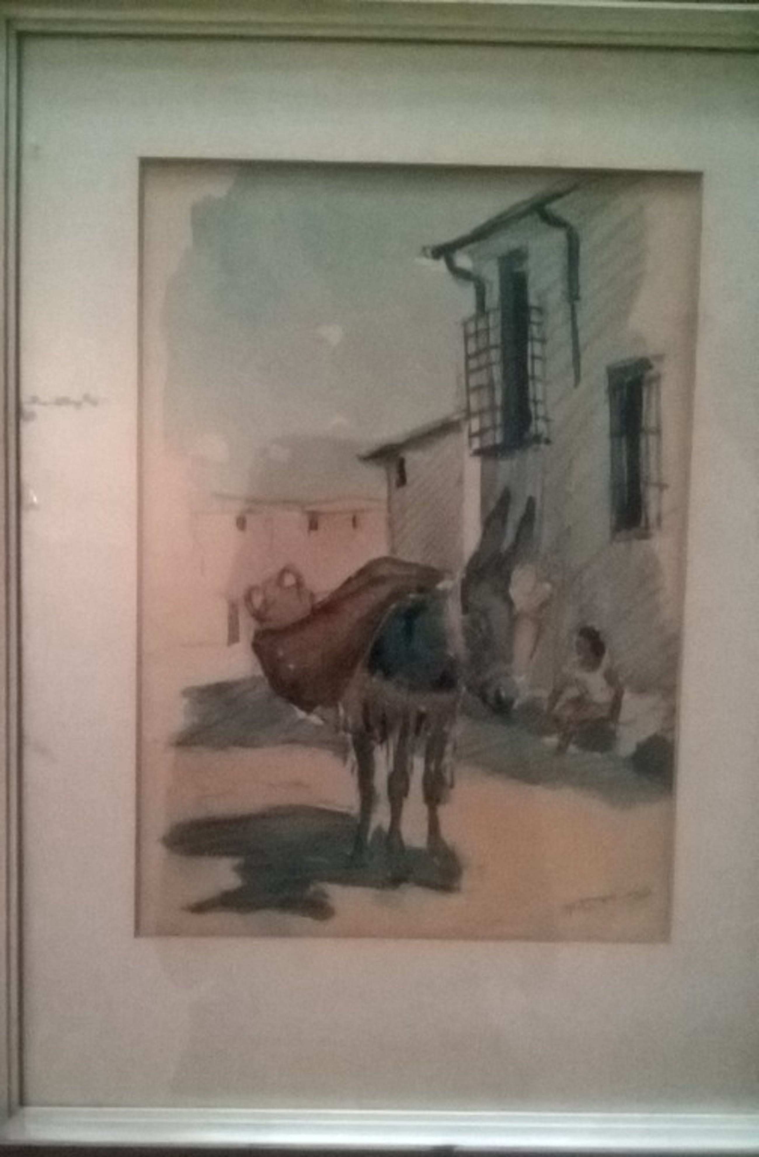 Een ingelijste aquarel, gedateerd en gesigneerd '50 Boers. In de passepartout afmeting 20 bij 28 cm. Larense school.