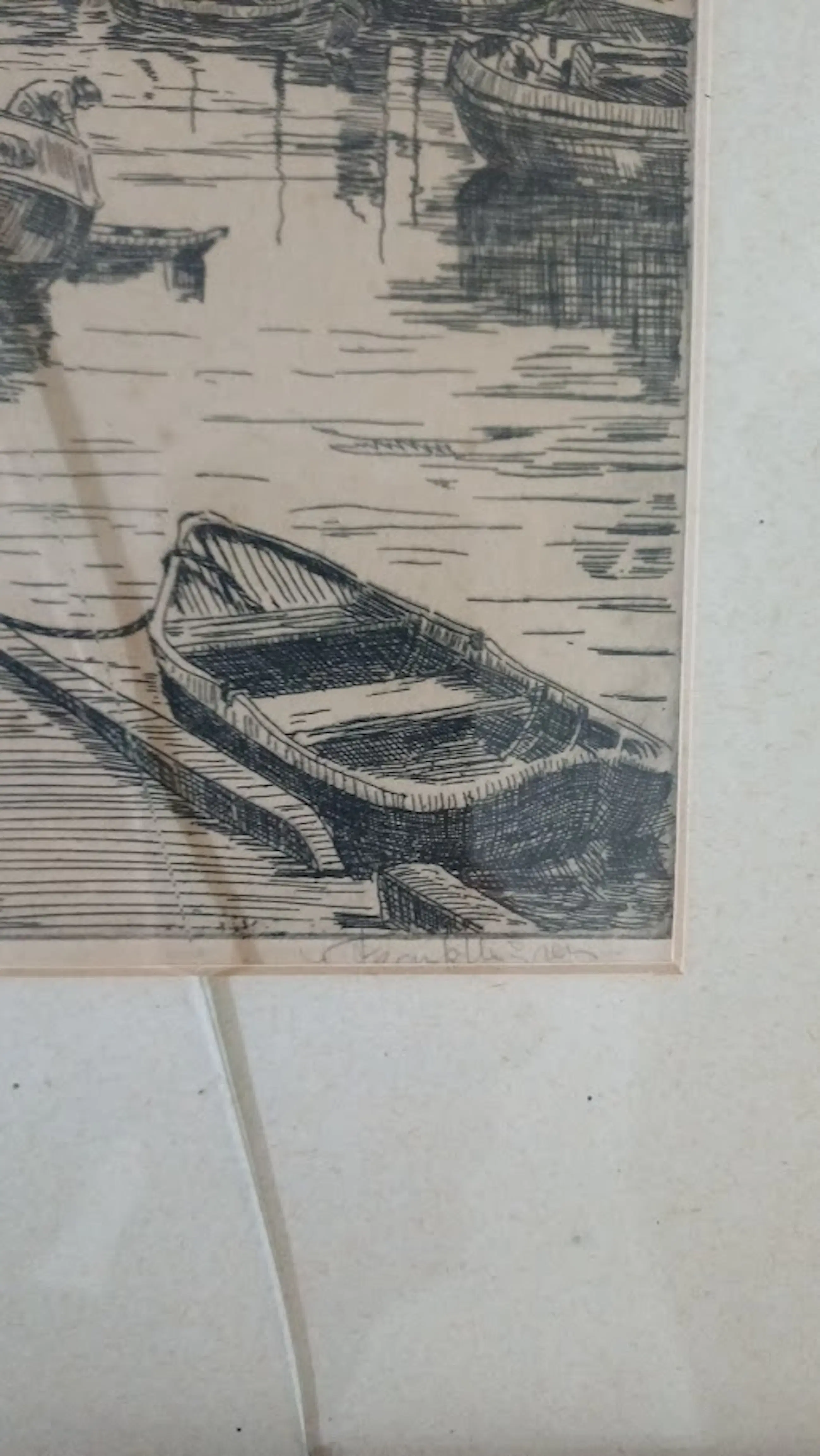 De ets kan evt ook zonder lijst en glasplaat, maar met passepartout verzonden worden.