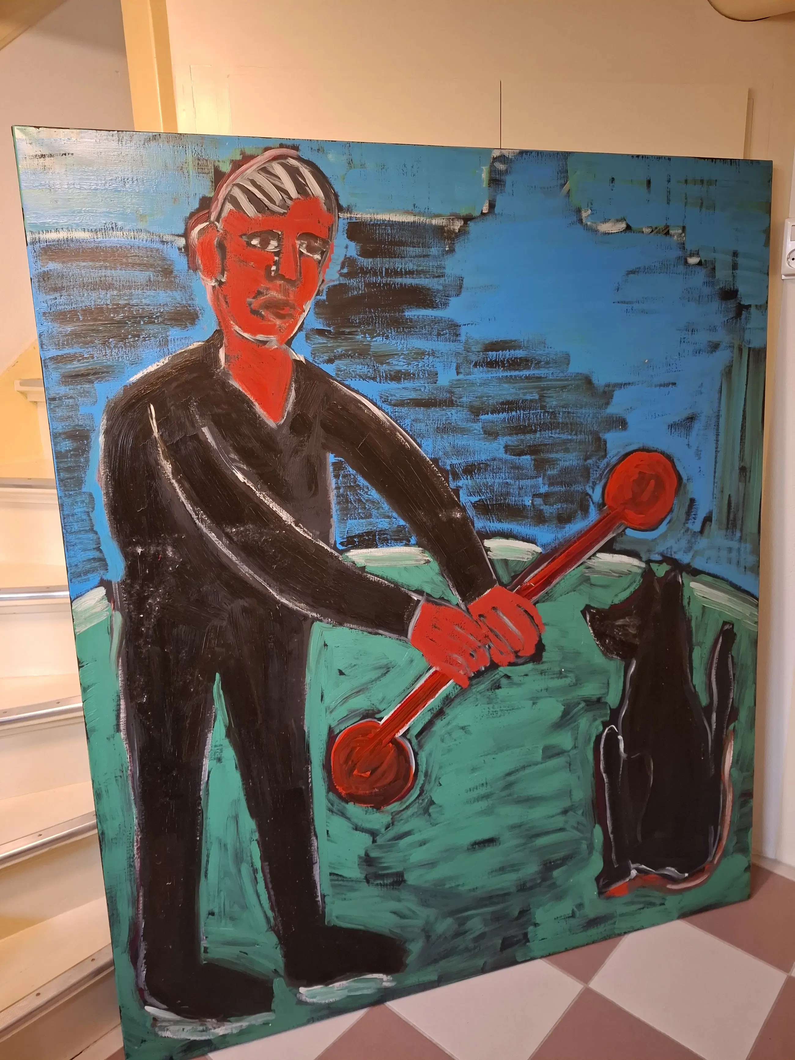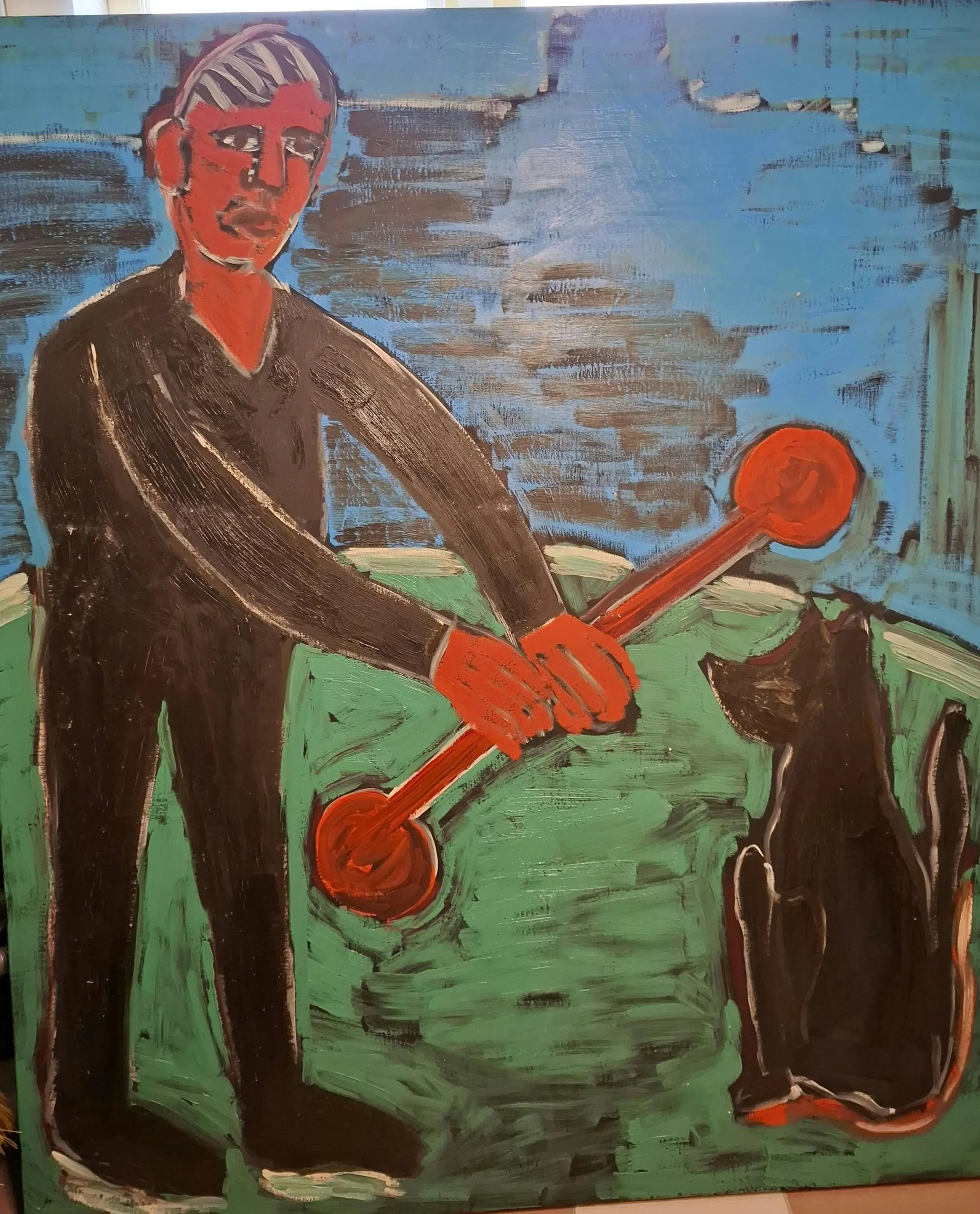 Groot olieverfschilderij van de in 2023 overleden kunstenaar Frans de Groot