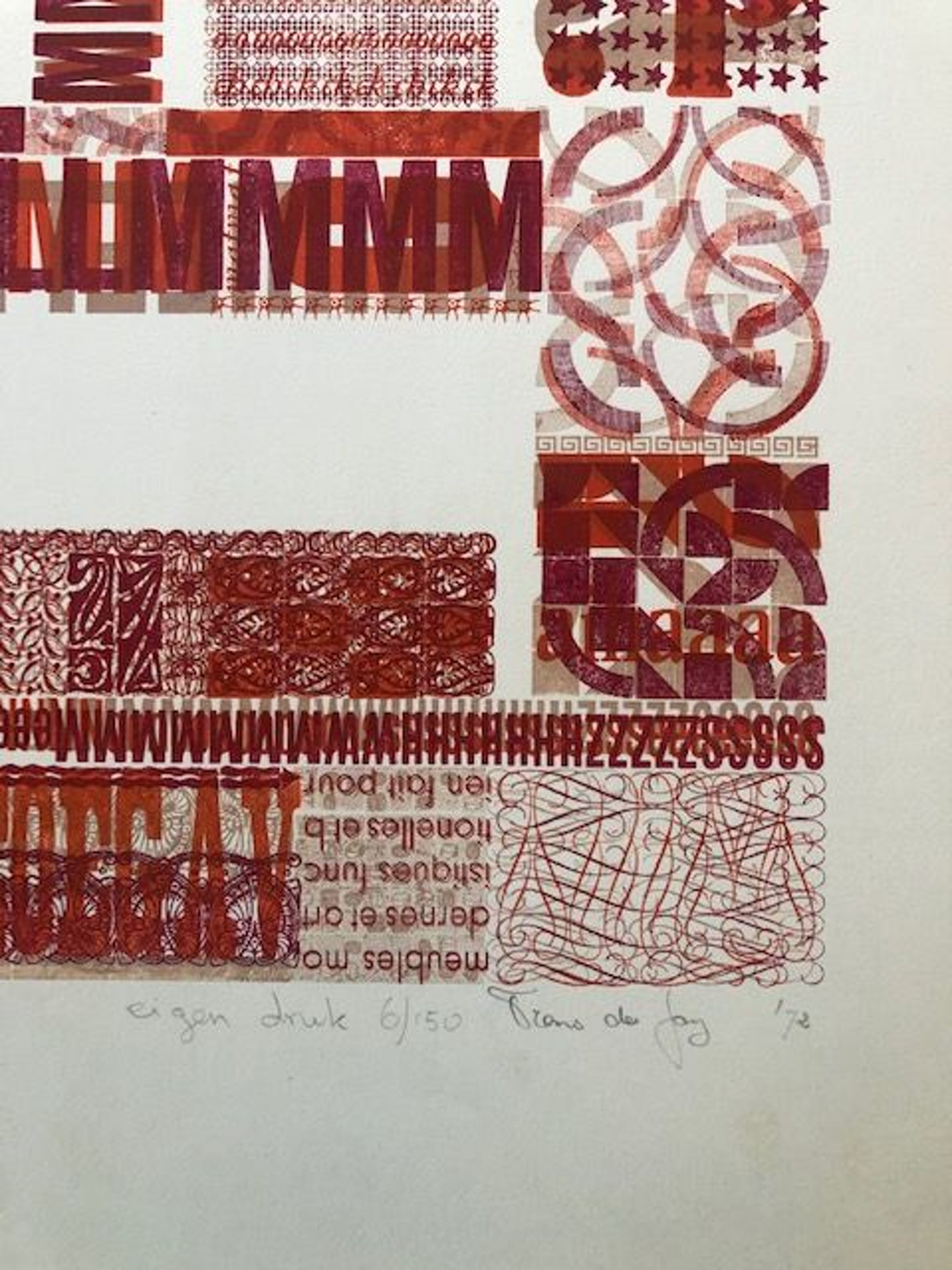 Frans de JONG (Amsterdam 1921 -2010Zeefdruk Afmeting beeldmaat 38 x 40 cm Afmeting totaal 65 x 49 cm Gesigneerd met potlood Eigendruk Oplage 6/150