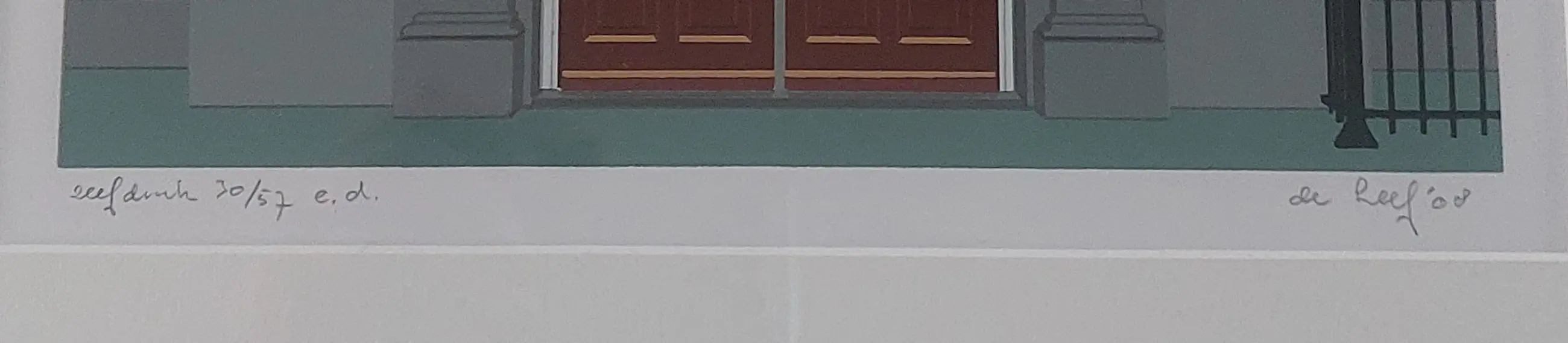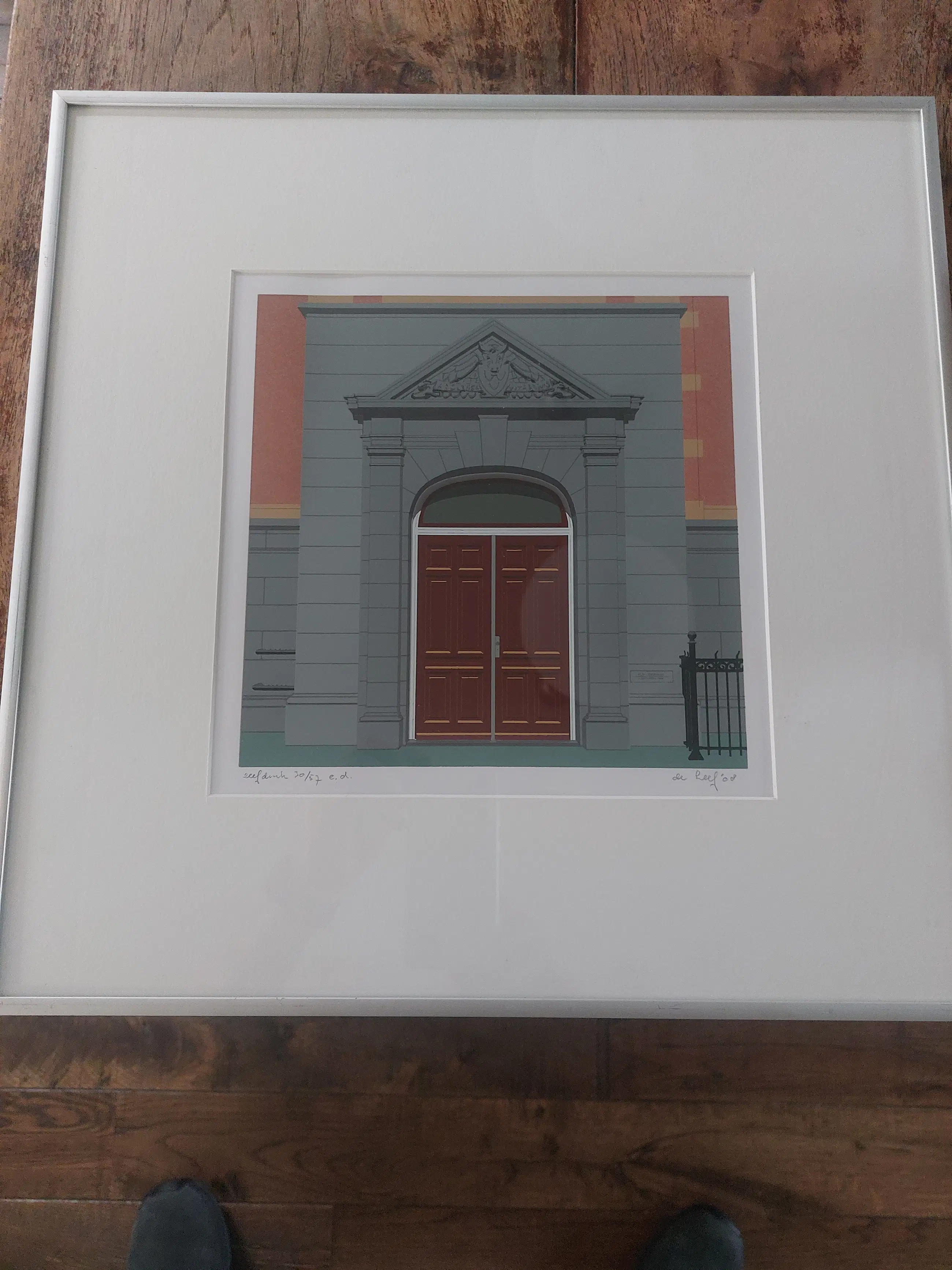 Mooie zeefdruk van de achterkant van de Pulchri Studio in Den Haag