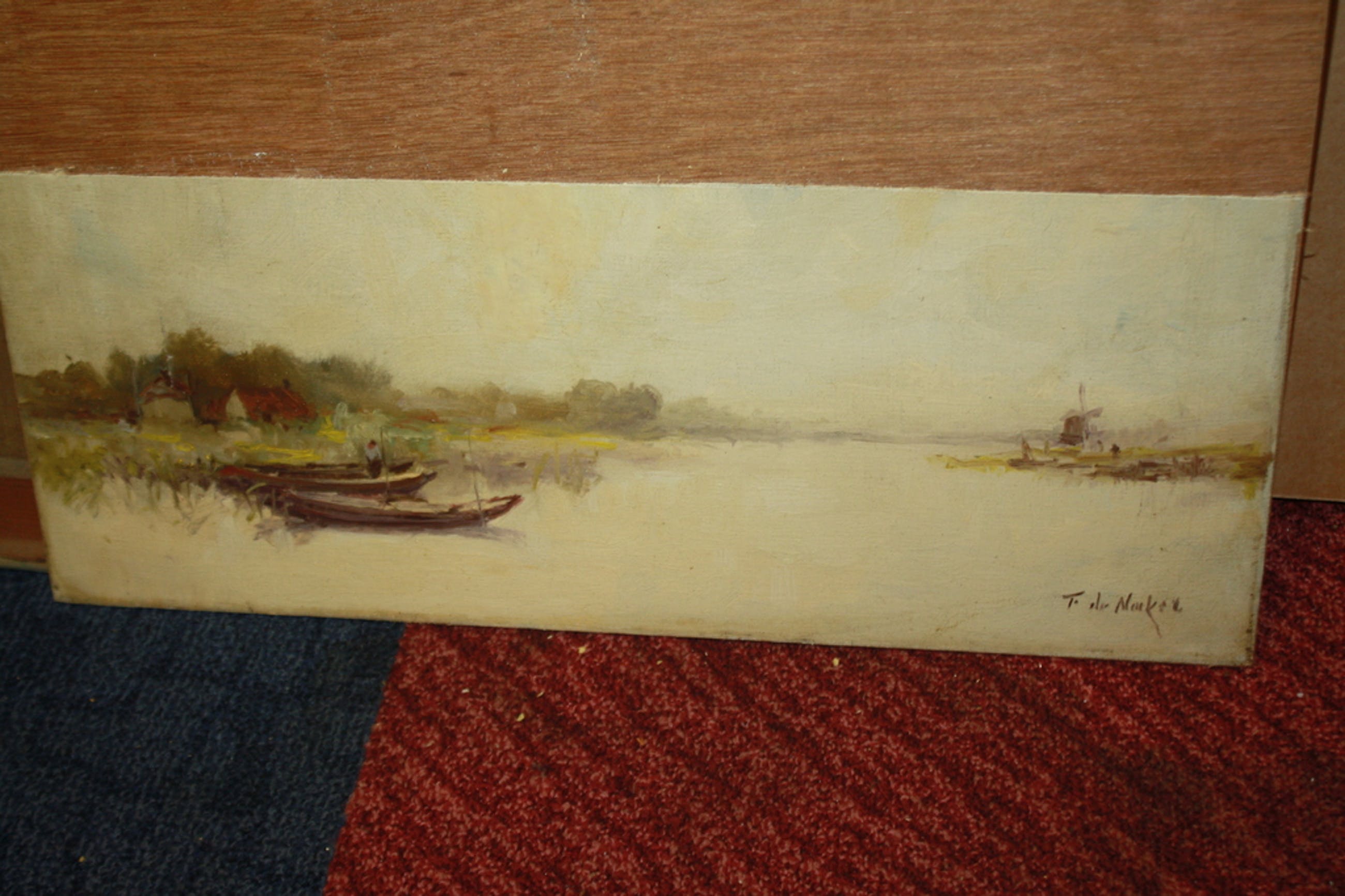 OLIEVERF OP LINNEN GEPLAKT OP PANEEL IN DE MAAT 19 X 35 CM