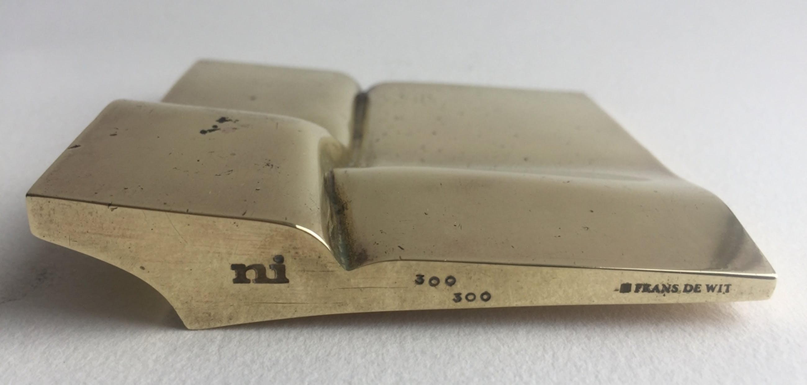 De vroeg overleden beeldhouwer Frans de Wit, werd vooral bekend vanwege de door hem ontworpen betonnen trap die voorkwam in de leader van het tv-programma "Krasse Knarren" van van Kooten en de Bie en van zijn monumentale sculpturen van geperst schroot van scheepswrakken voor het museum Naturalis in Leiden. De hier aangeboden multiple is een vroeg ontwerp voor galerie Nouvelles Images in Den Haag.