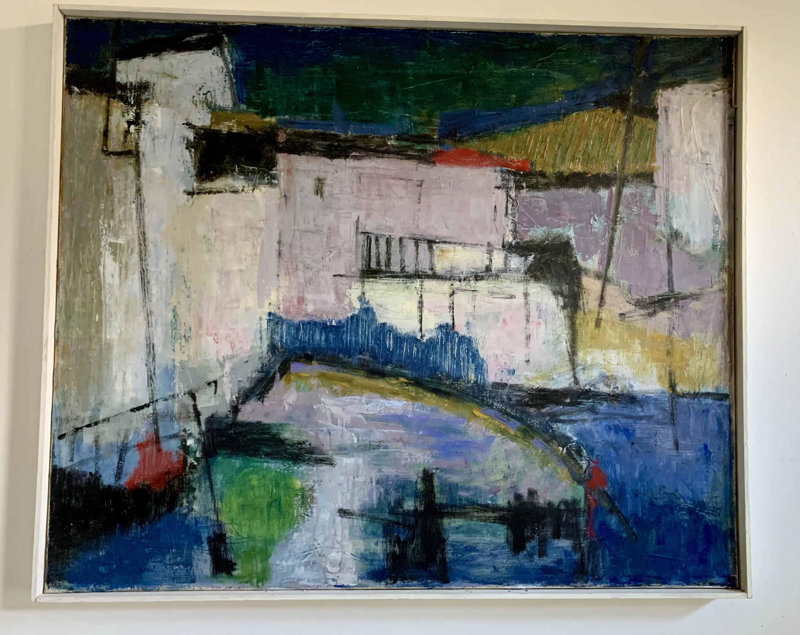 De impressionistische kunstschilder Frans de Wit maakte dit schilderij van Jaujac in Frankrijk waar hij de zomers doorbracht in zijn huis in de Ardèche met zijn vrouw de beeldhouwster Jos van Riemsdijk. Het is een impressionistisch werk met hoofdkleur blauw.