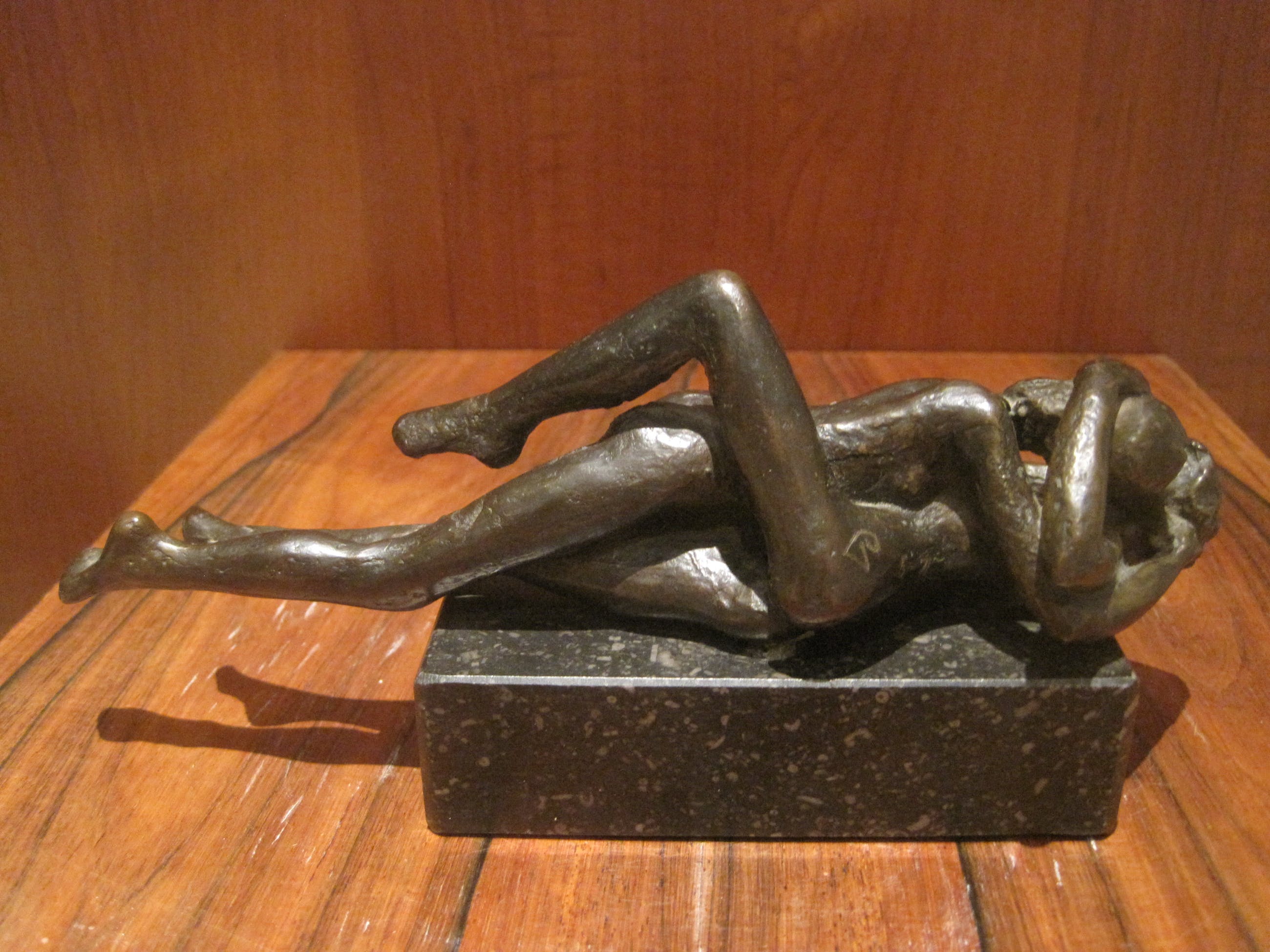 Een massief bronzen beeldje van Frans Deeleman ( 1922 ). Het beeldje is gemonteerd op een granieten sokkel. Gesigneerd FD en gedateerd 5-71. Deeleman, F. (Frans)Geboortegegevens:·1923 - - - geboren - omstr. 1923Professie:·beeldhouwer·bronsgieter·vrachtwagenchauffeurMateriaal:·bronsOnderwerp:·vrouwenfigurenTypering van het werk:·figuurbeelden
