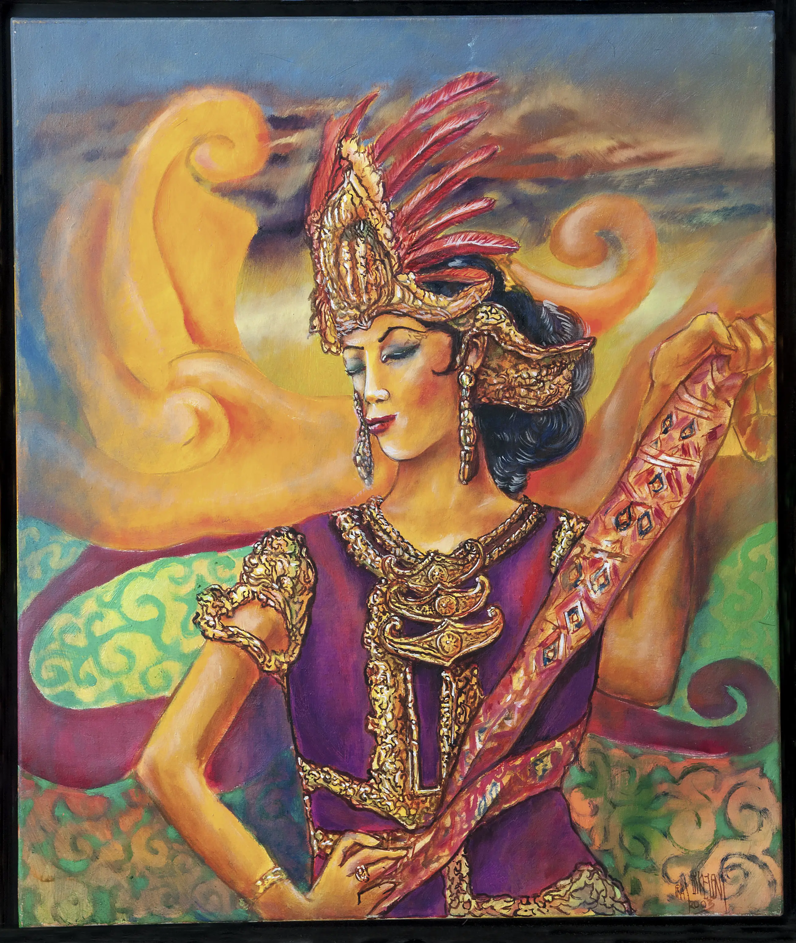een van zijn latere werken, ingelijst in goudkleurige lijst