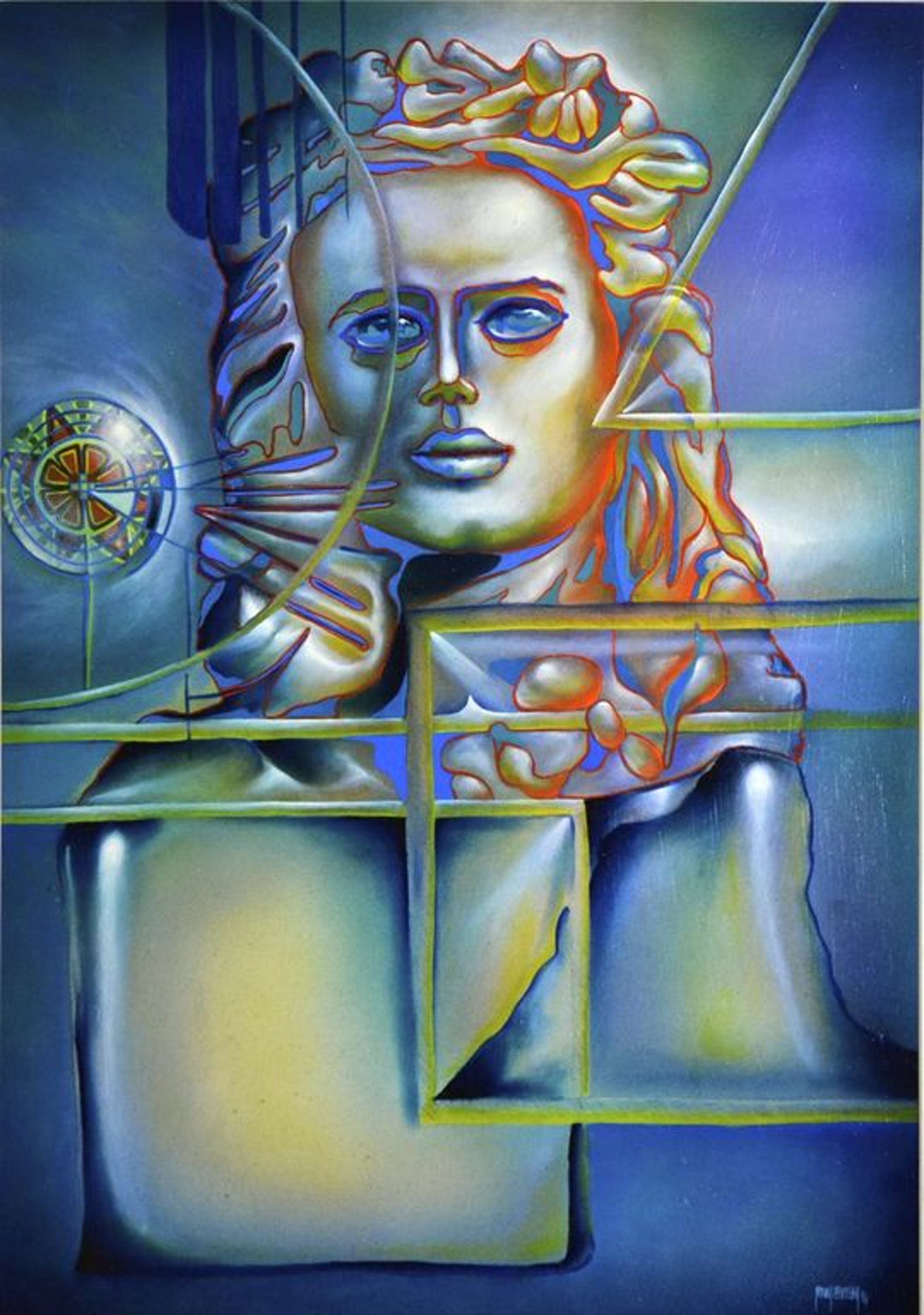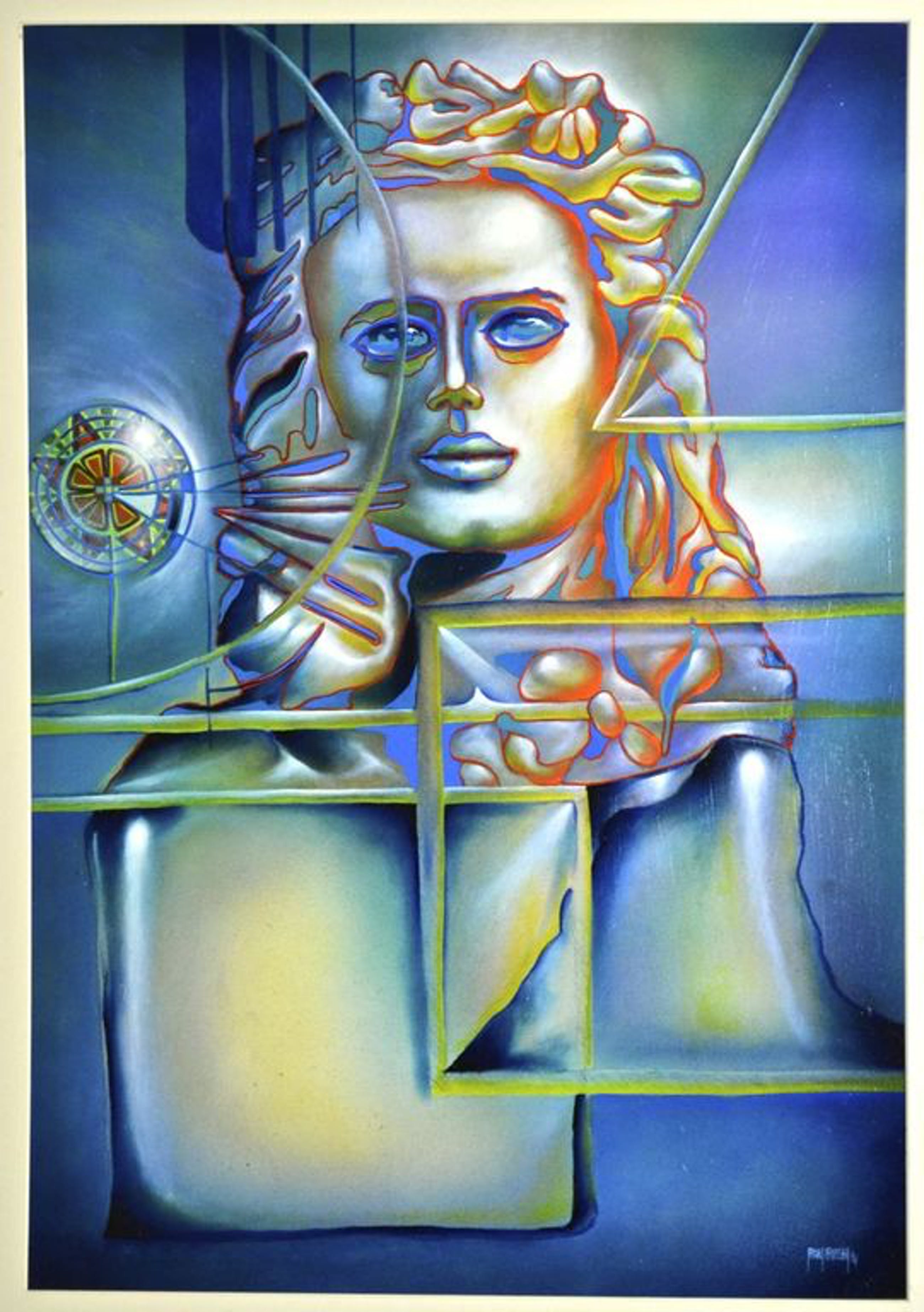 Zeer mooi olieverfschilderij van Frans Erkelens. Erkelens is geboren op Java en deze Indonesische invloed is vaak terug te zien in zijn werk. Zijn werken zijn meestal surrealistisch en sterk van kleur. Erg bijzonder werk.