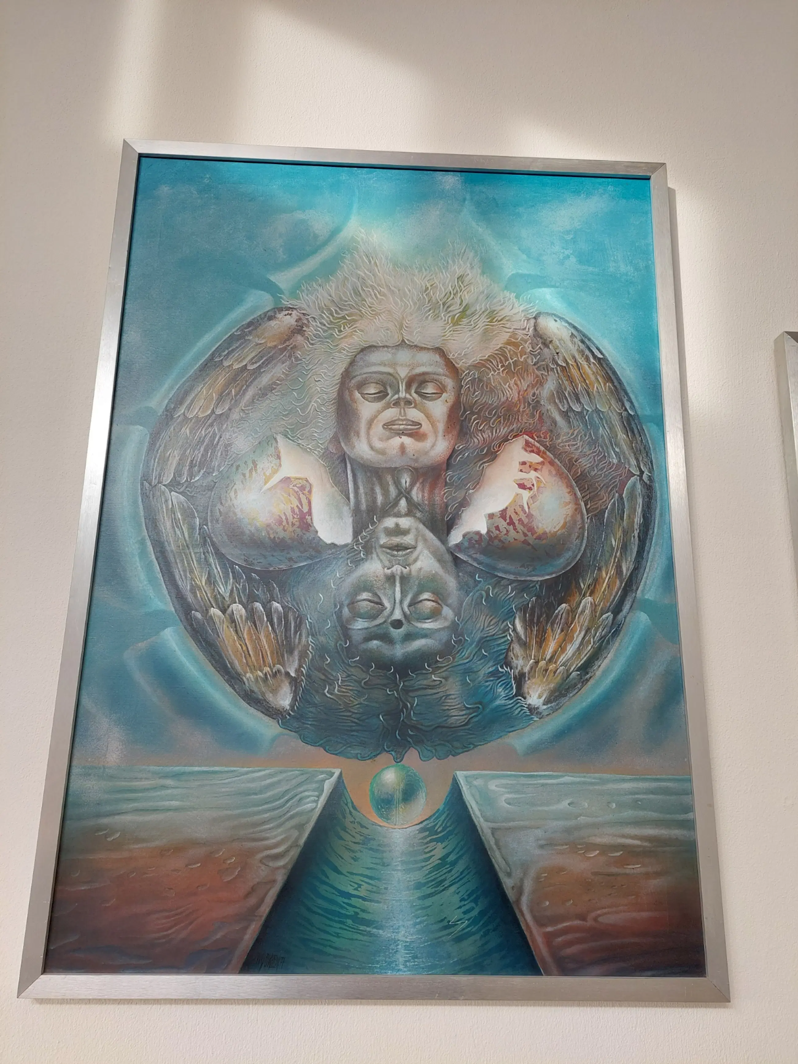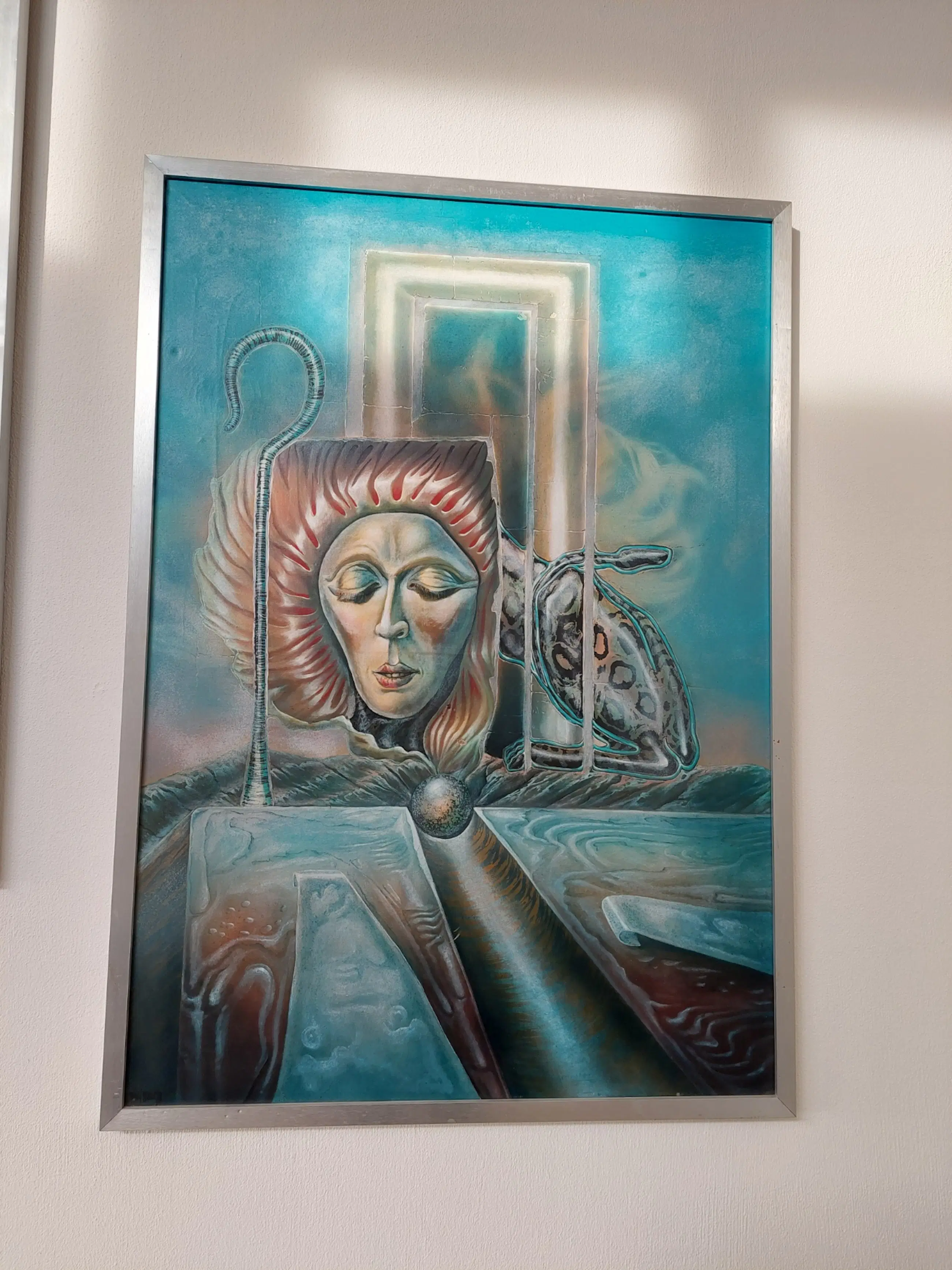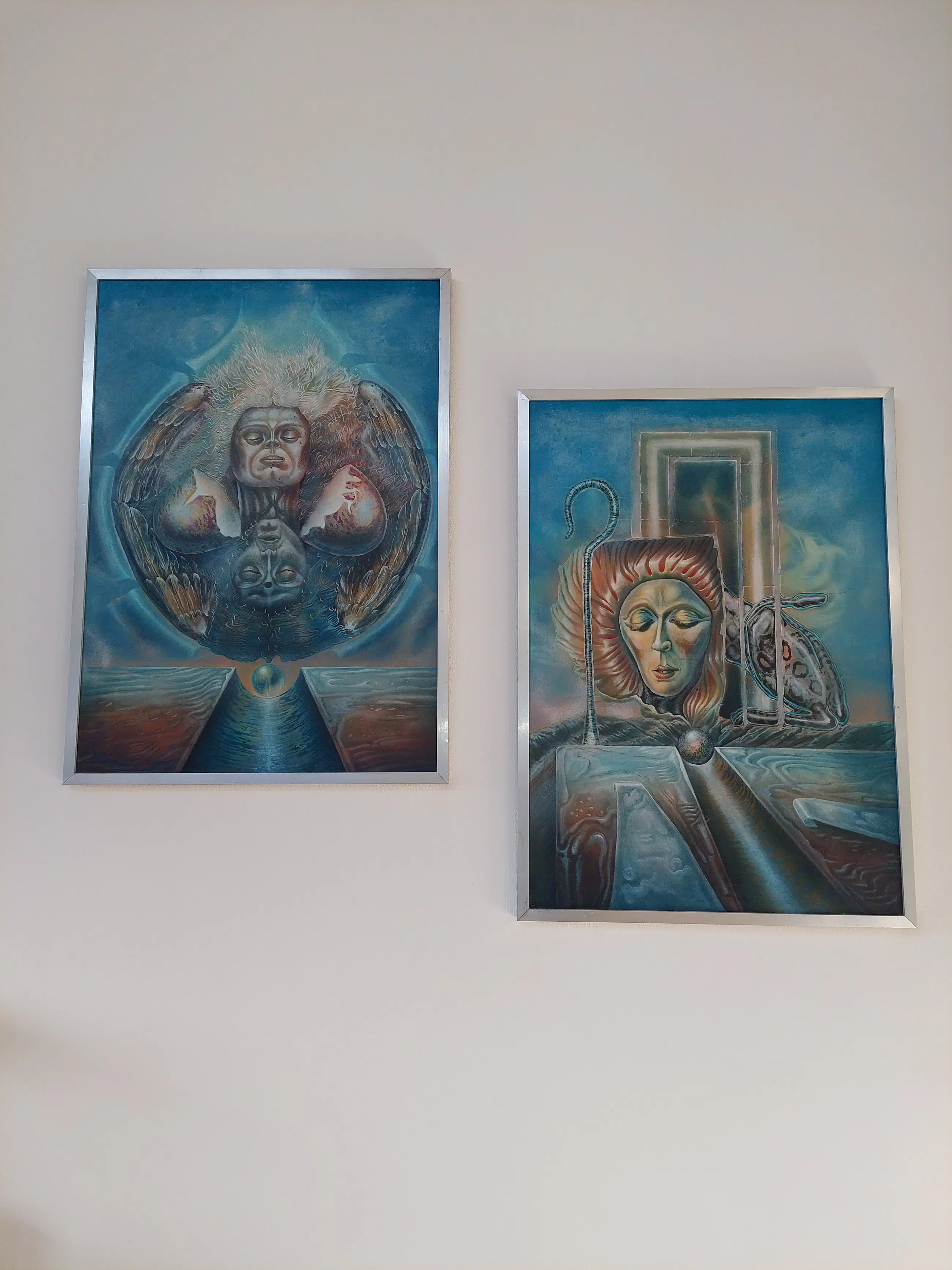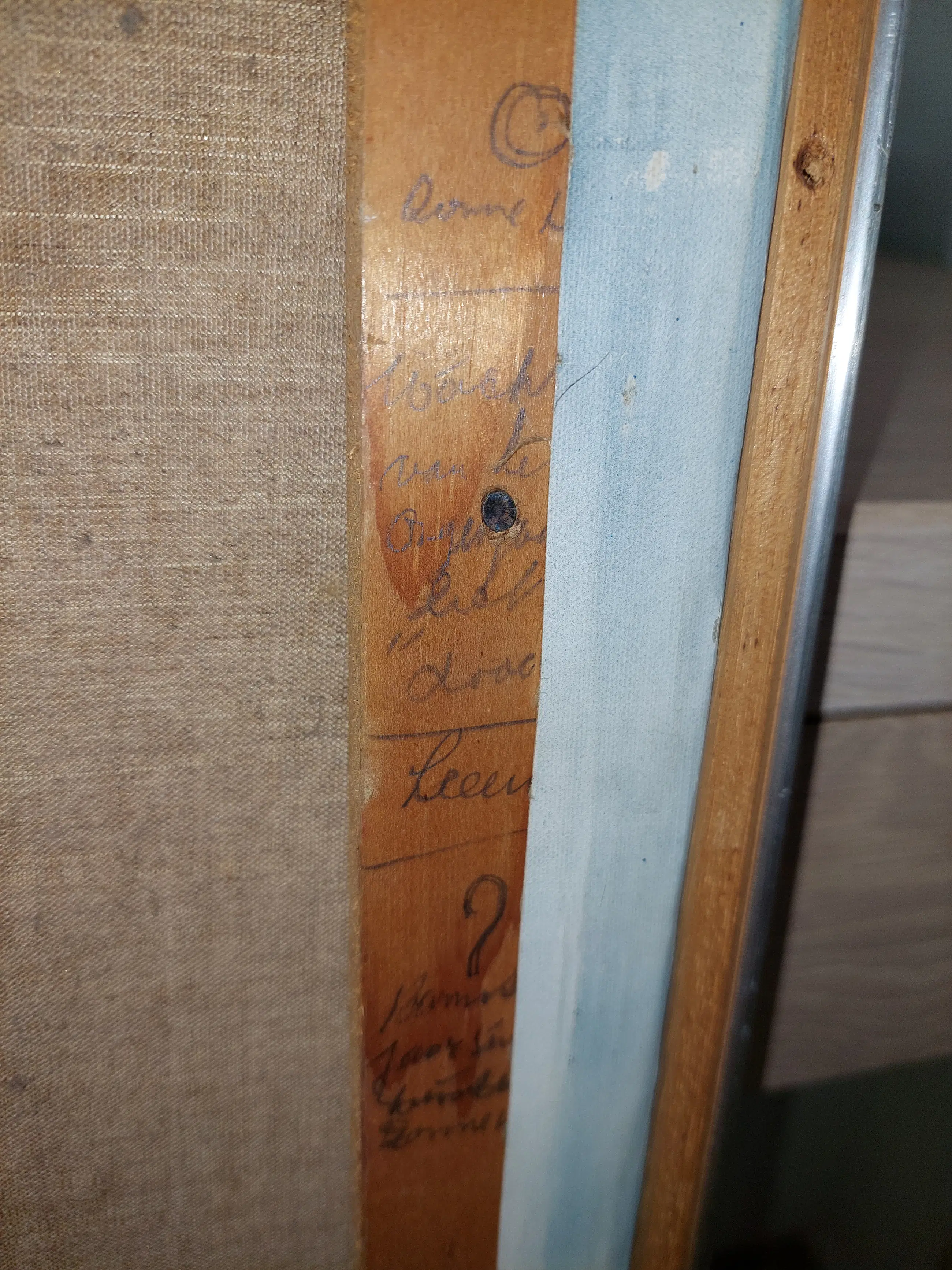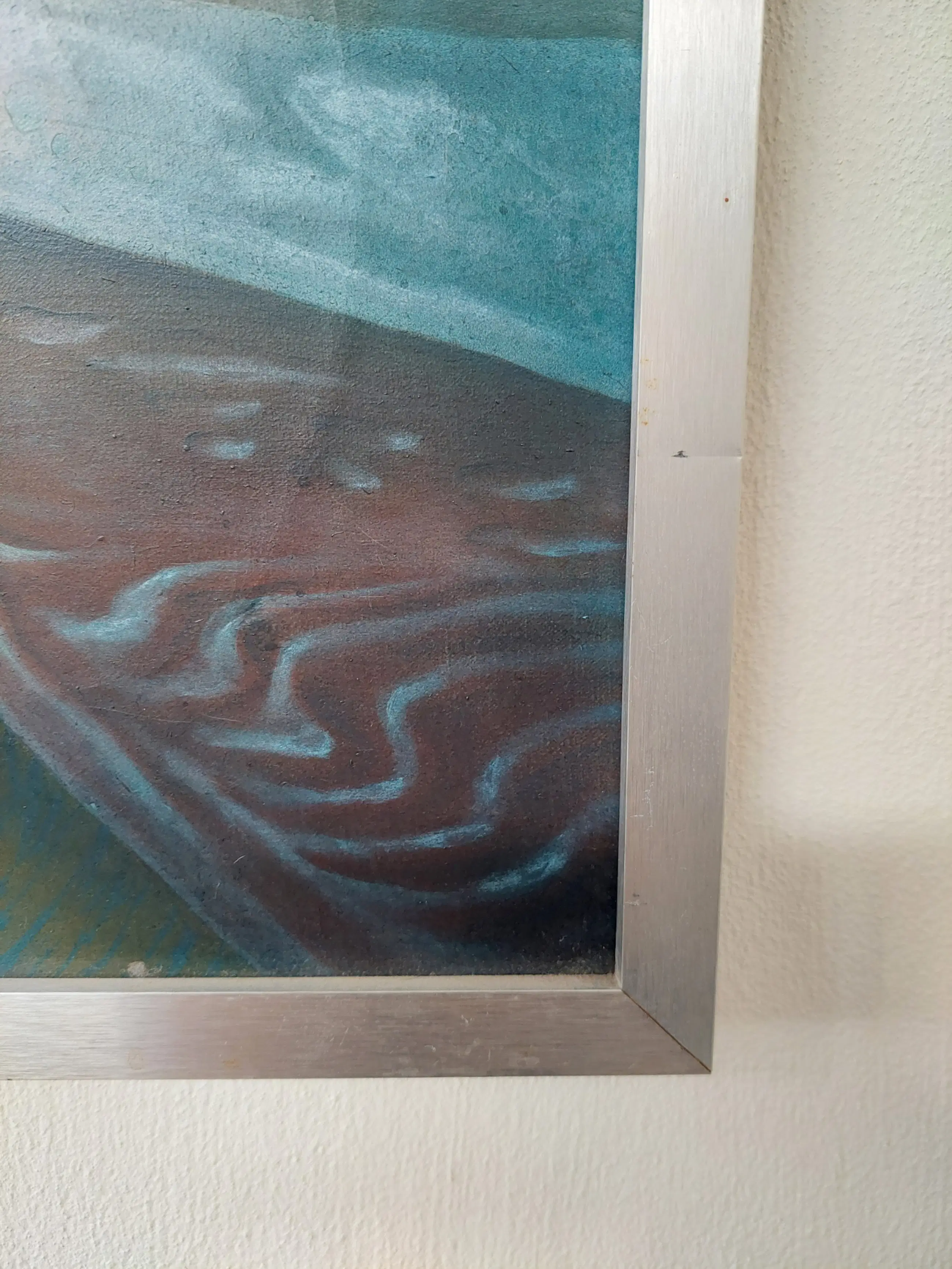 Mooie bijpassende aluminium lijst. In het tweede schilderij zit een kleine beschadiging, bijna onzichtbaar.