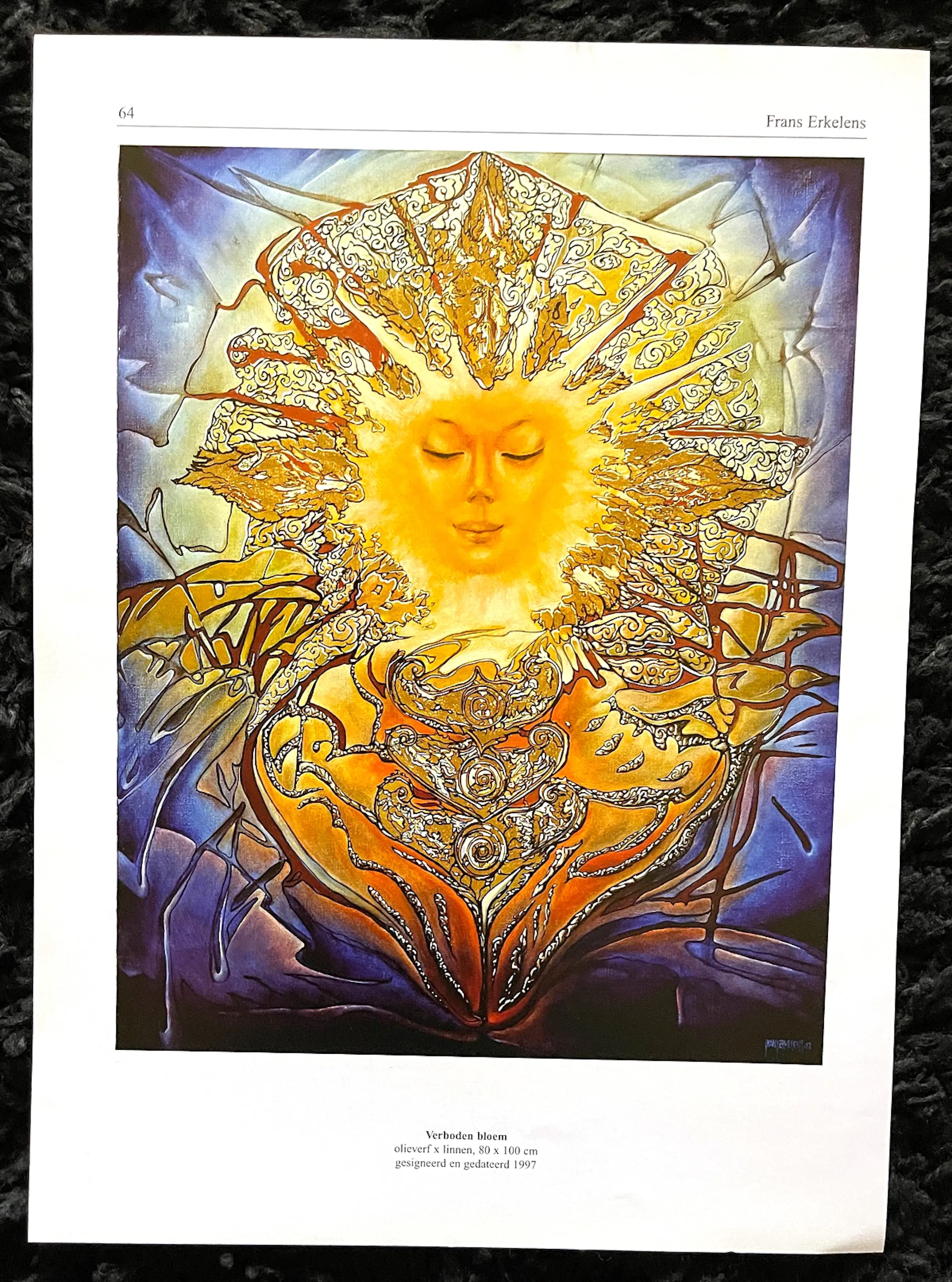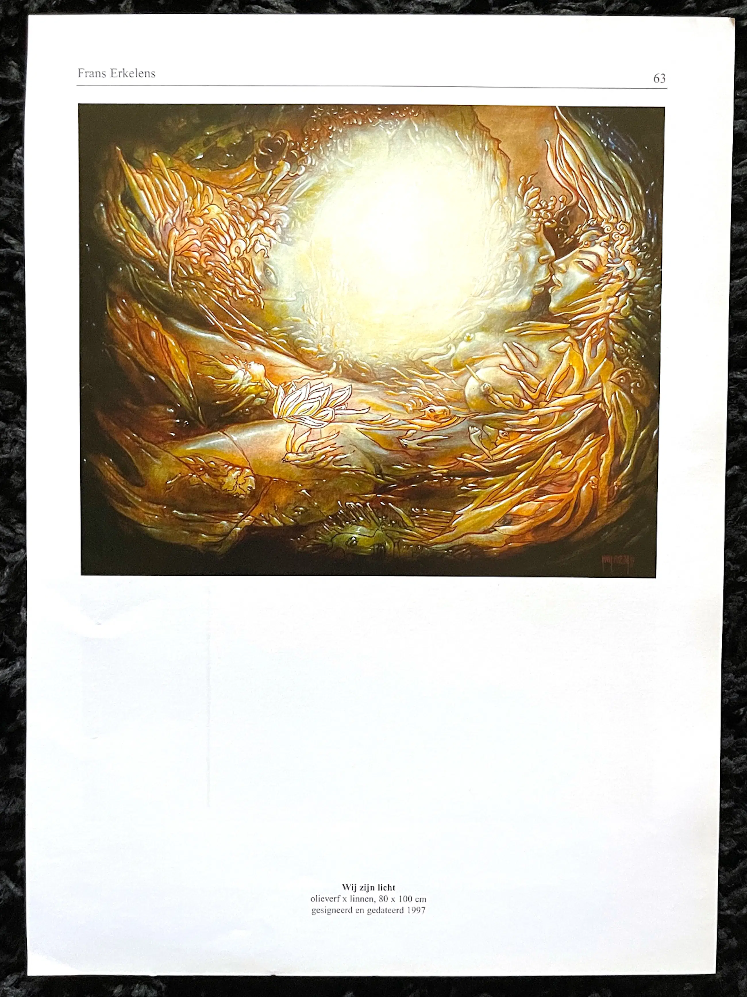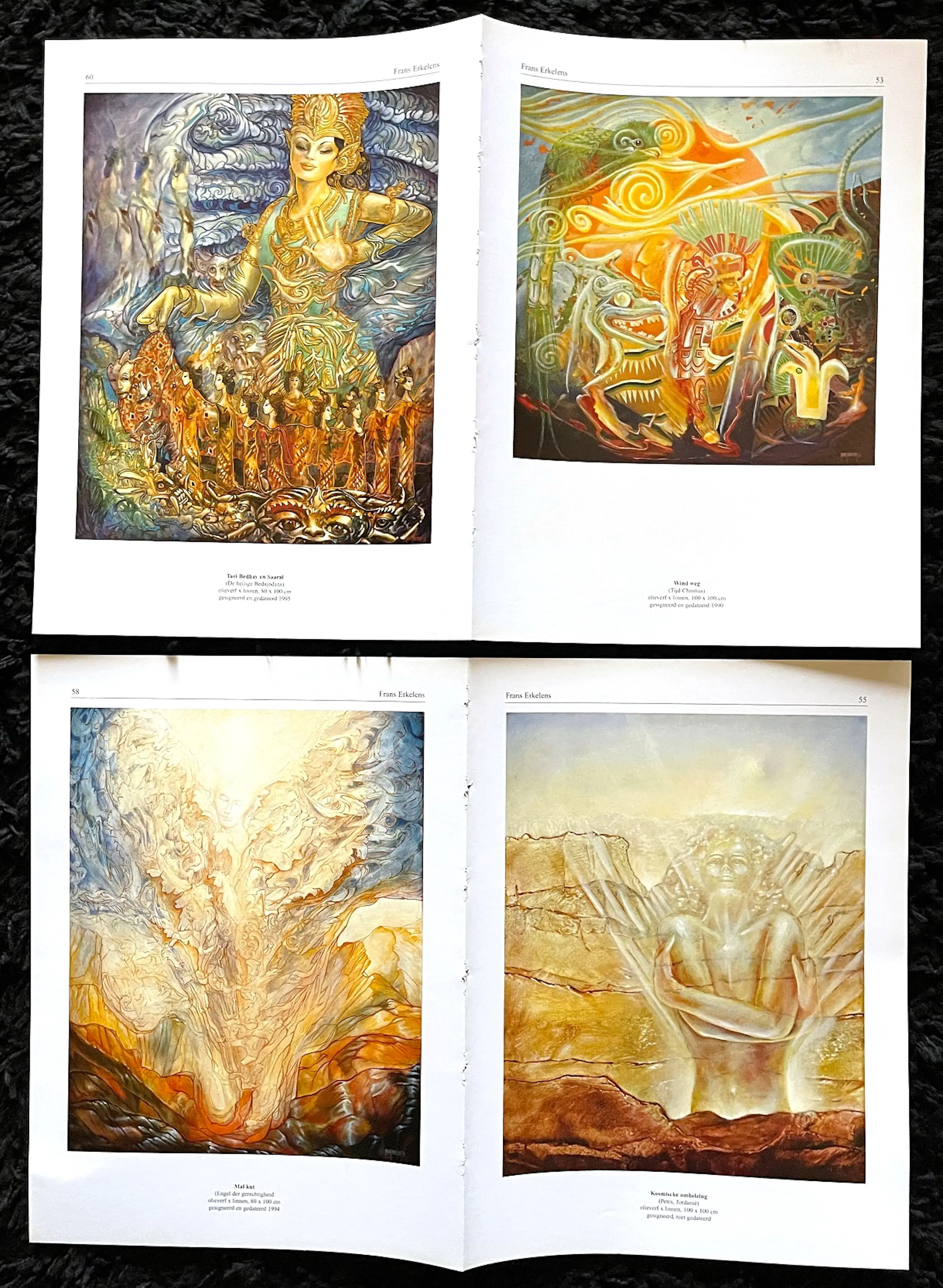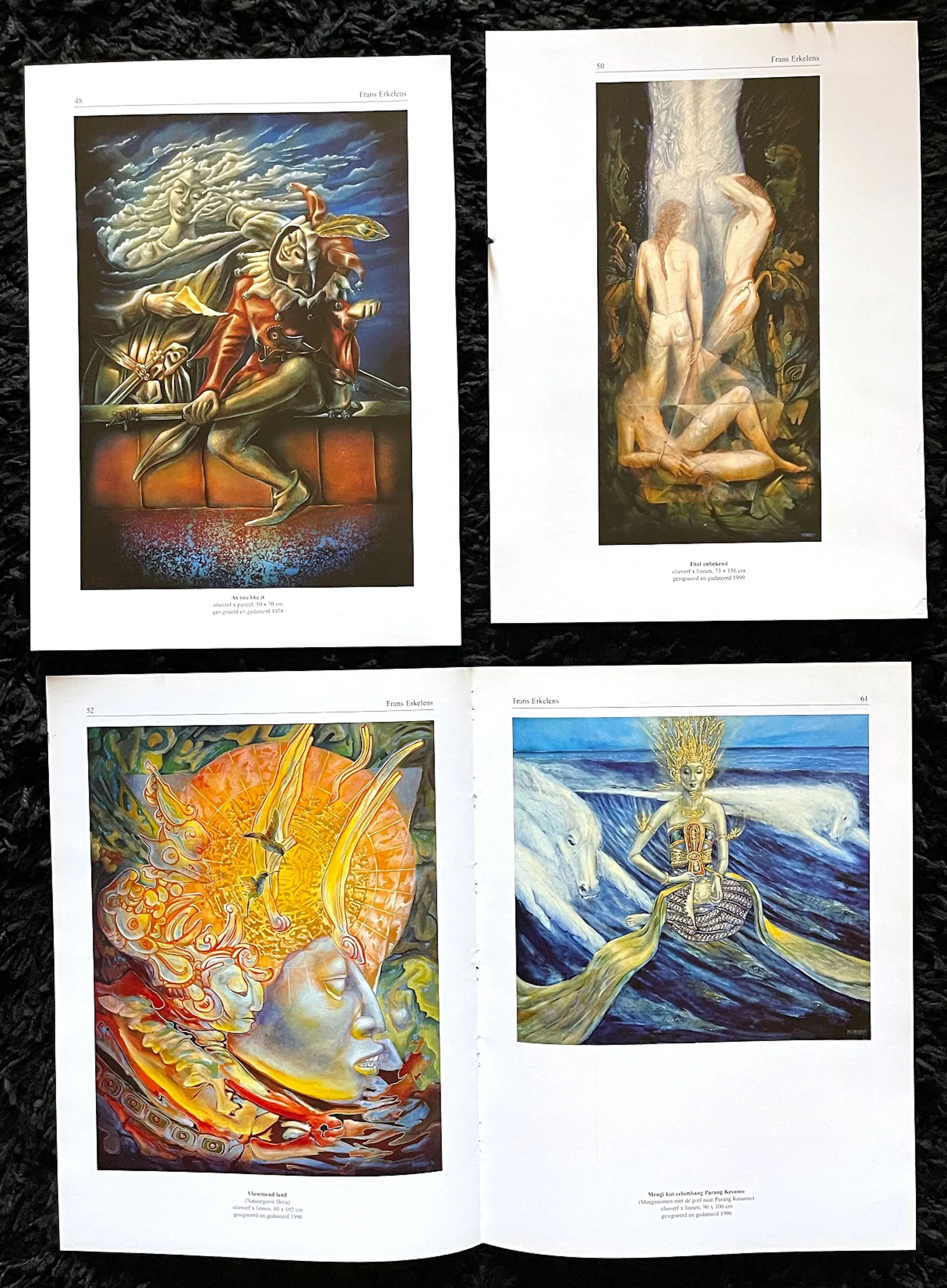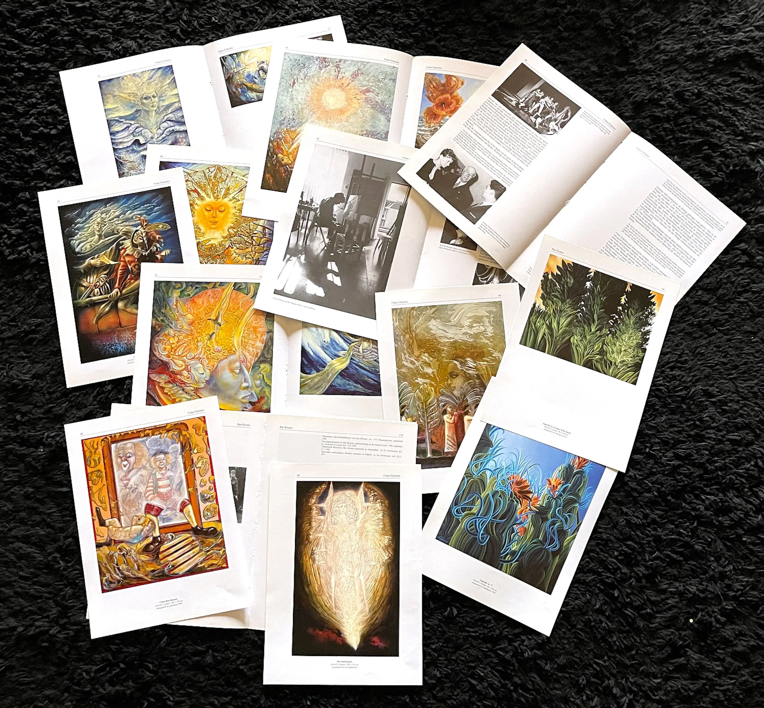Een serie van ongeveer 10 pagina's uit een metarealistisch monografieboek met ELLEN LORIEN Artworks. Veel prenten op volledige pagina in kleur en andere in zwart-wit. Met ELLEN LORIENs biografie en beschrijvingen van haar werk. Taal van de teksten: Nederlands Geschatte pagina-afmetingen: A4-formaat (ongeveer 22x30 cm) Afdrukken worden beschermd verzonden met stevig karton, zodat ze niet buigen of beschadigd raken tijdens het transport. Een must-have voor elke ELLEN LORIEN-verzamelaar of -fan!