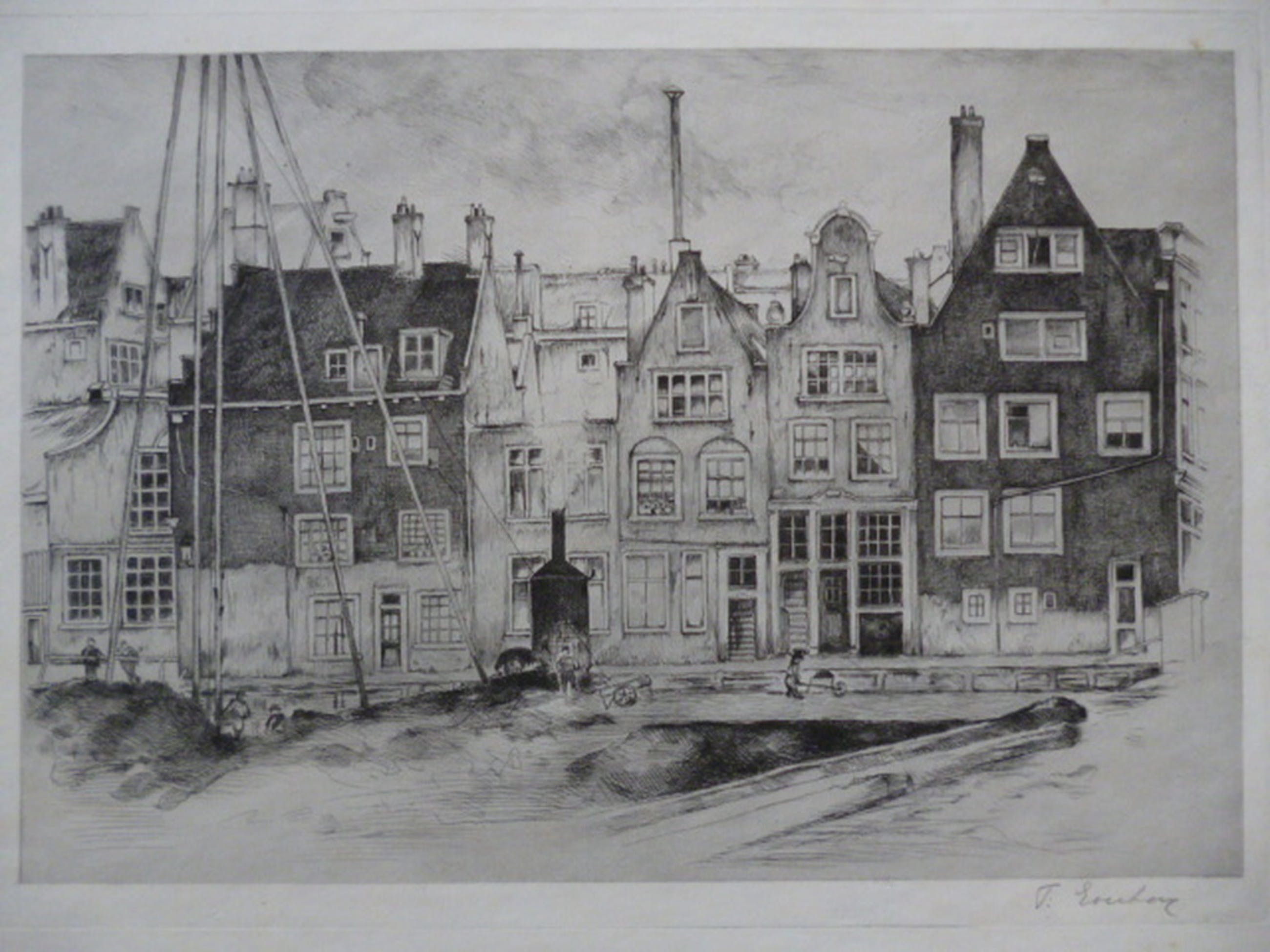 Ets uit 1927. Potlood gesigneerd rechtsonder. Beeldmaat 18,5 x 27 cm. Bladmaat 27 x 37 cm. Catalogus Vervoorn nr. 34. Losbladig.