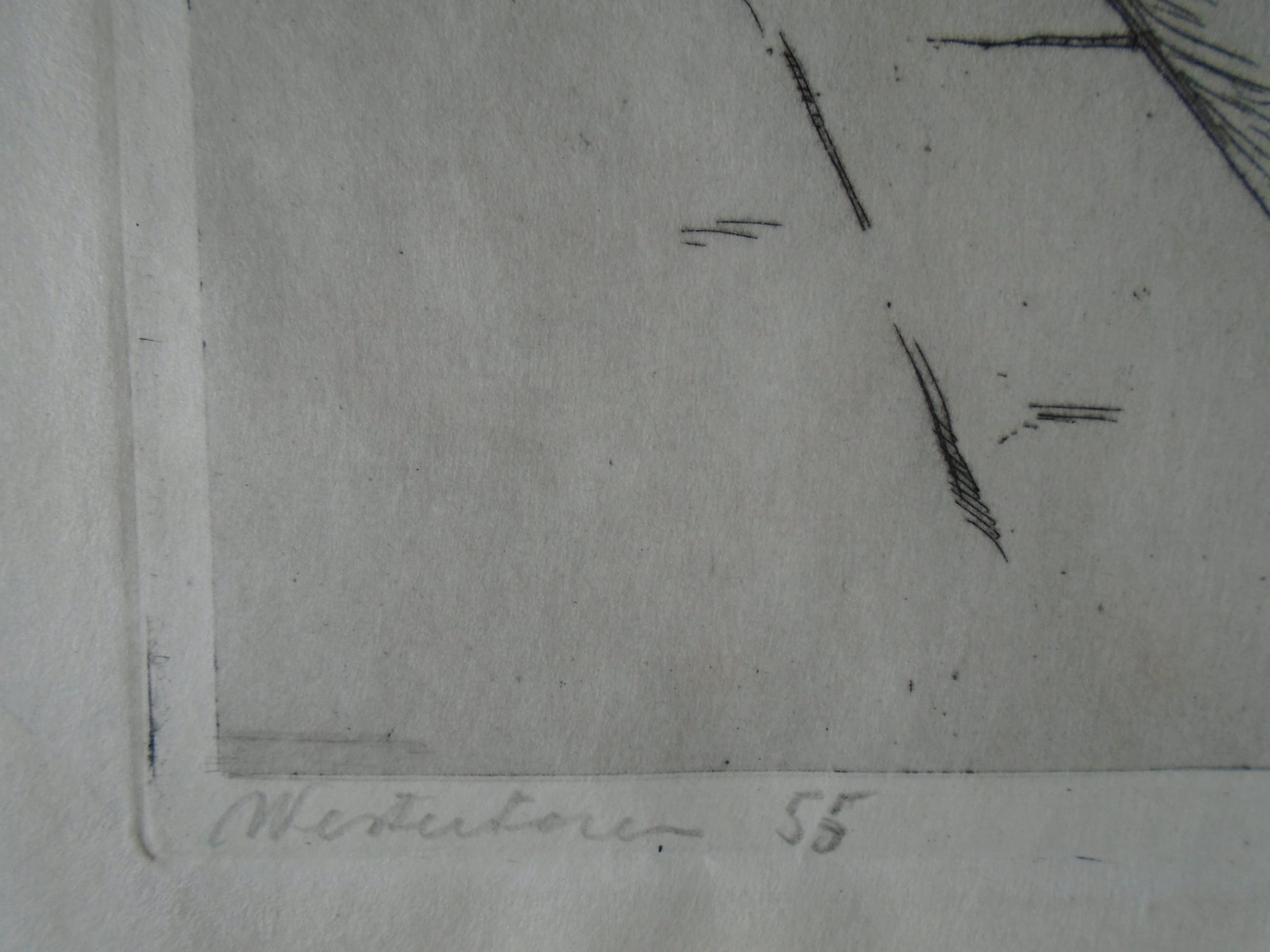 Ets, potlood gesigneerd rechtsonder.Getiteld en genummerd 55 linksonder.Beeldmaat 36 x 23 cm.Bladmaat 48 x 32 cm.Losbladig.