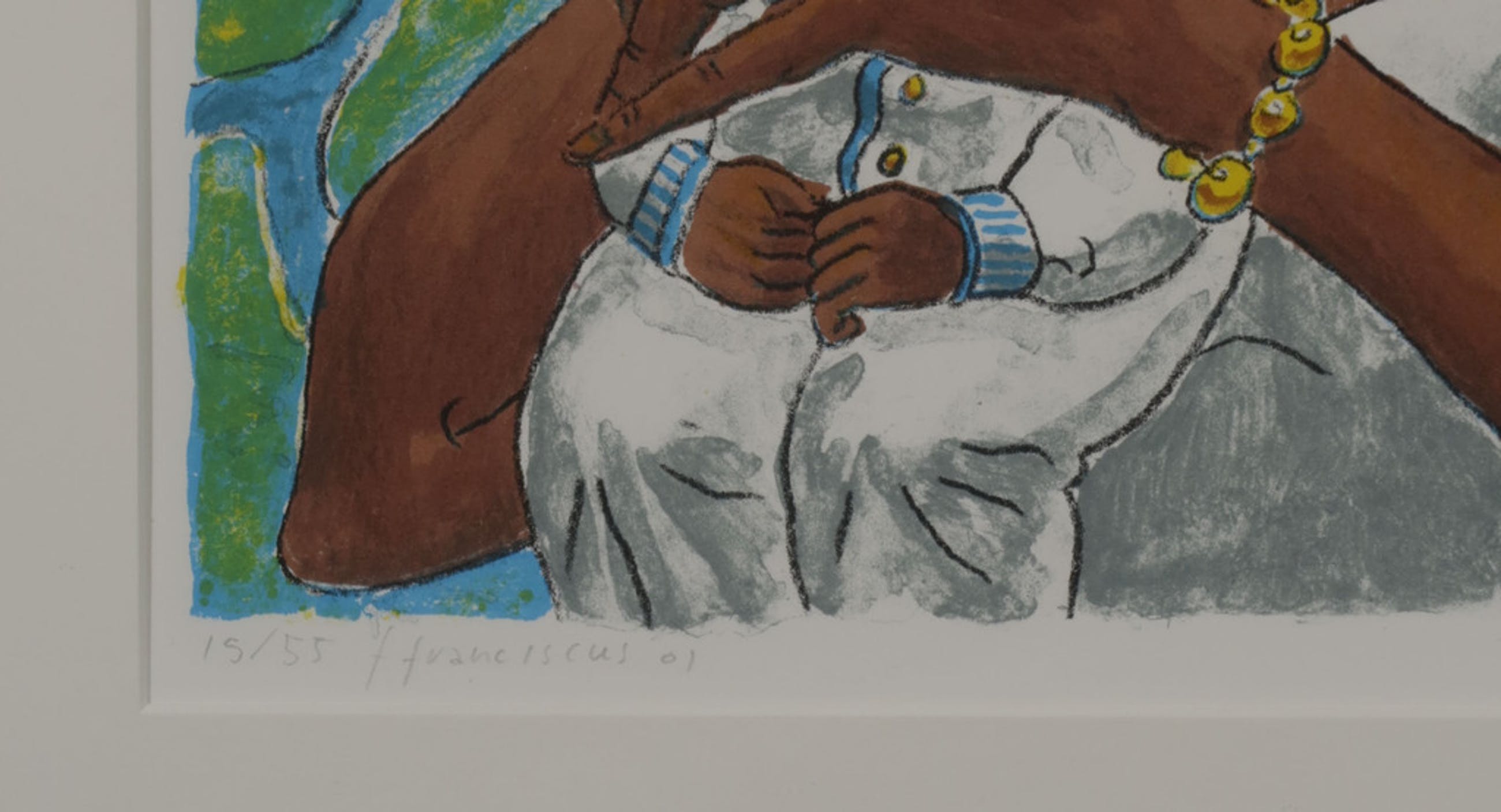 Bij foto´s van ingelijste werken kan spiegeling zichtbaar zijn. Het oplagenummer op de foto(‘s) kan afwijken van het hierboven genoemde correcte oplagenummer.