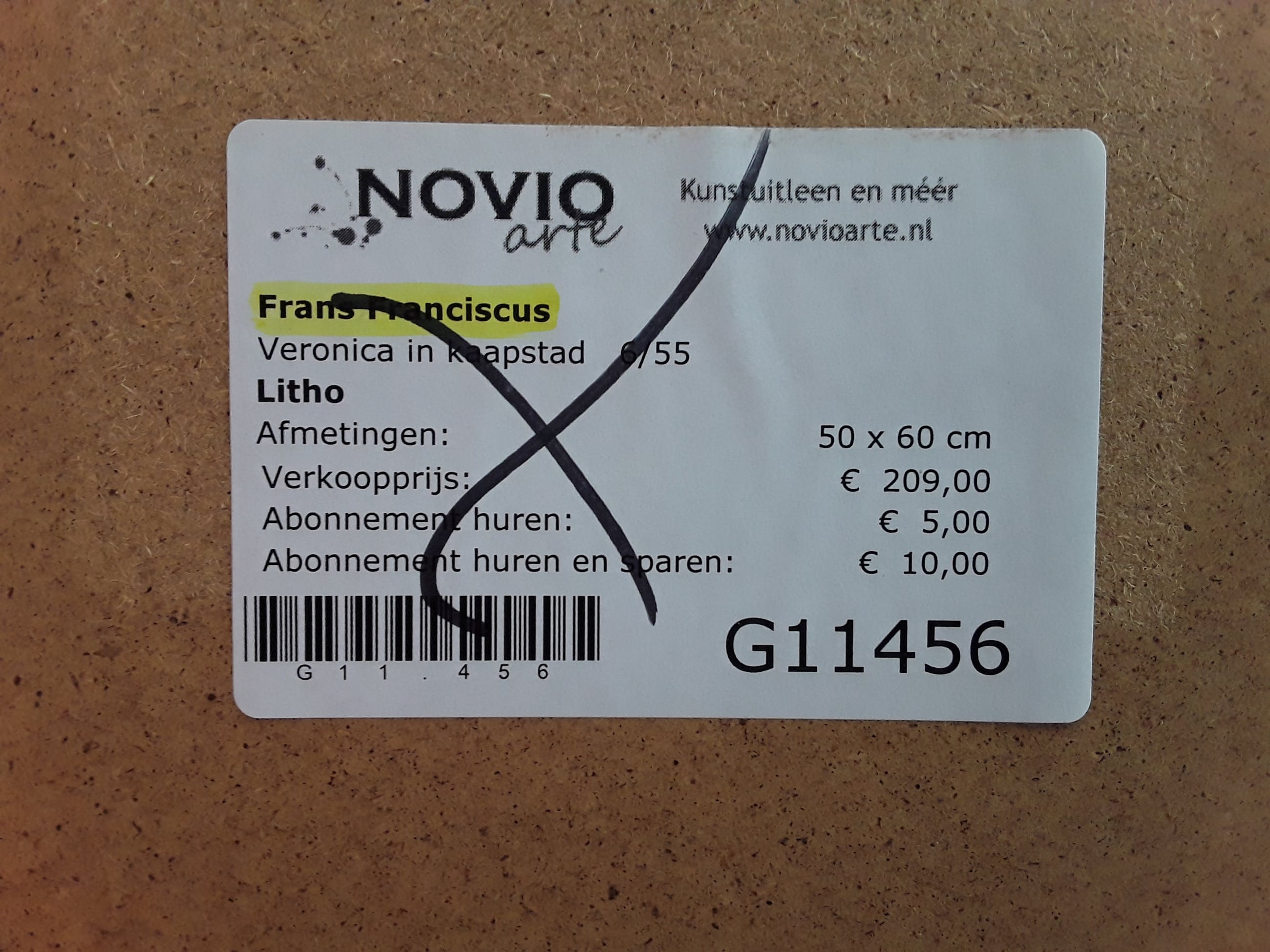 Het werk is af te halen op locatie. Als koper dient u zelf verpakkingsmateriaal mee te nemen. De locatie is: Amsterdam, Nederland