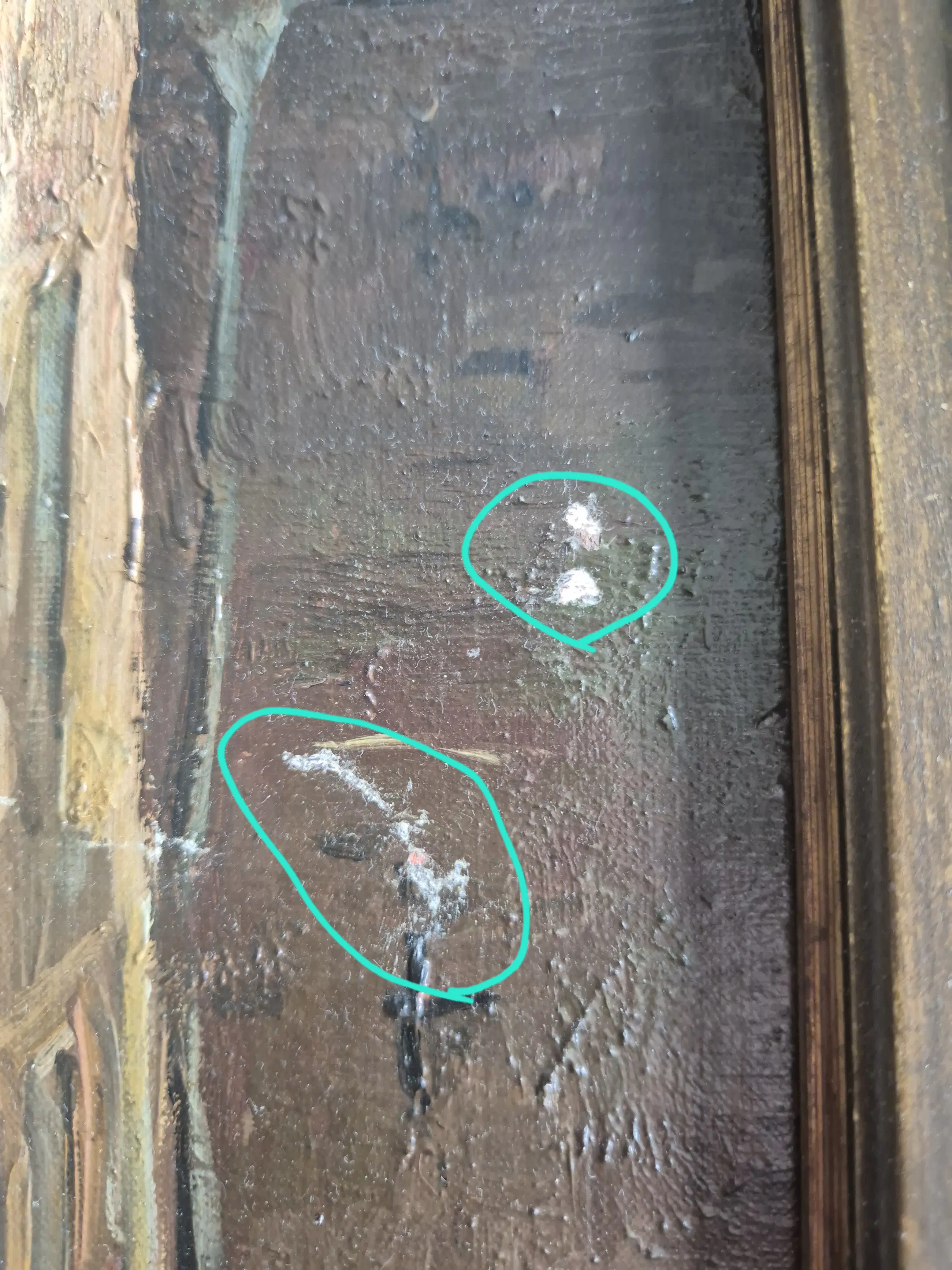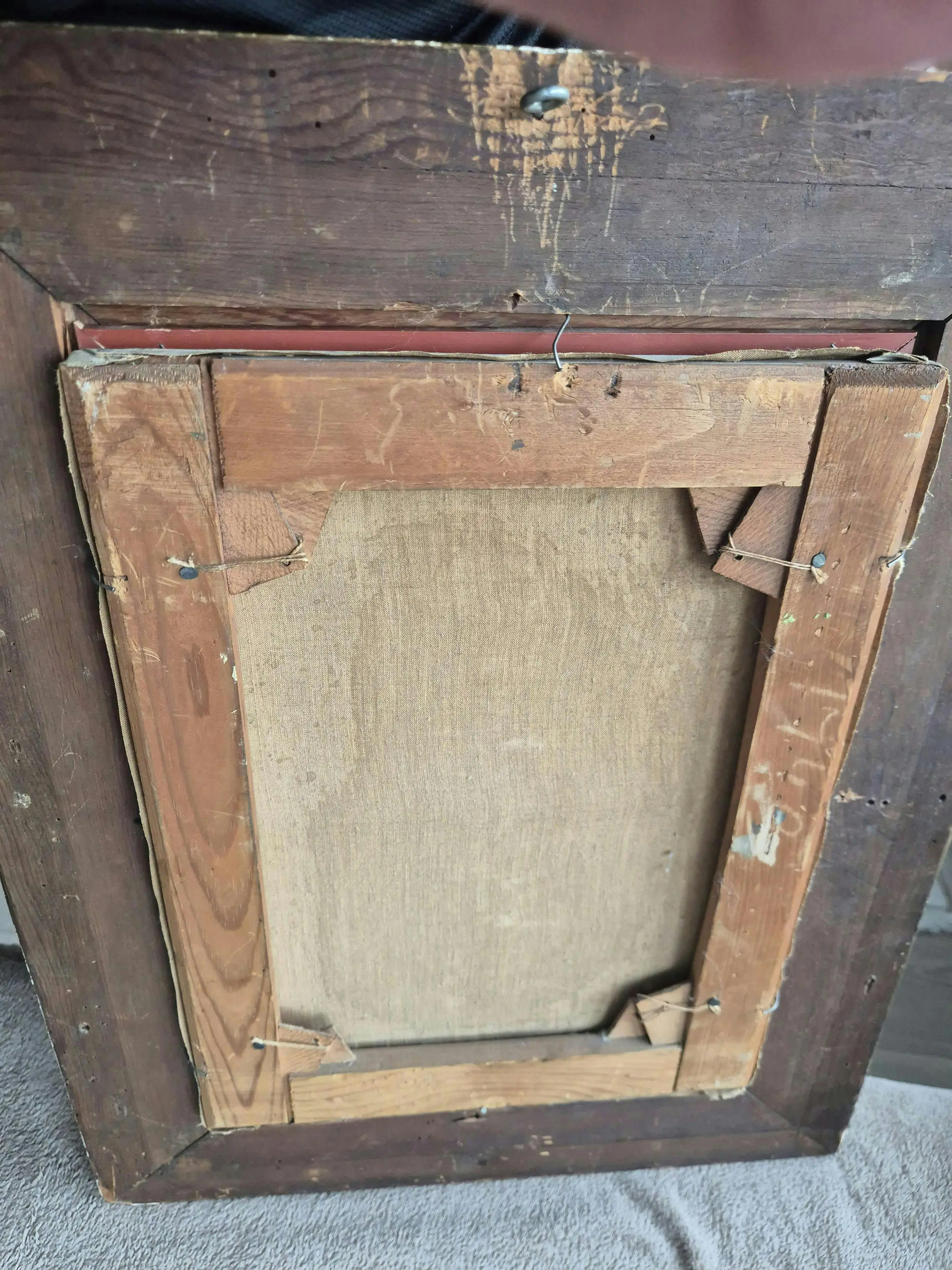 | 2 lichte schade plekjes. Lijst is intact maar wel tientallen jaren oud en dit is terug te zien. | |
