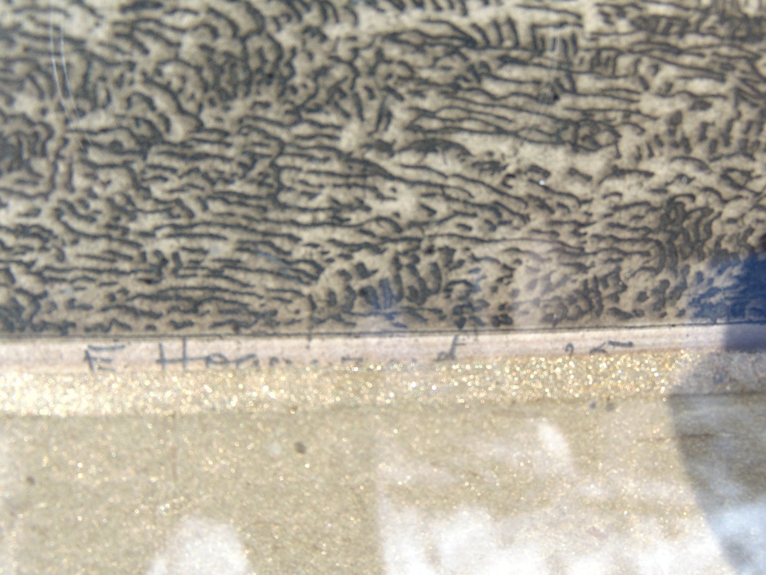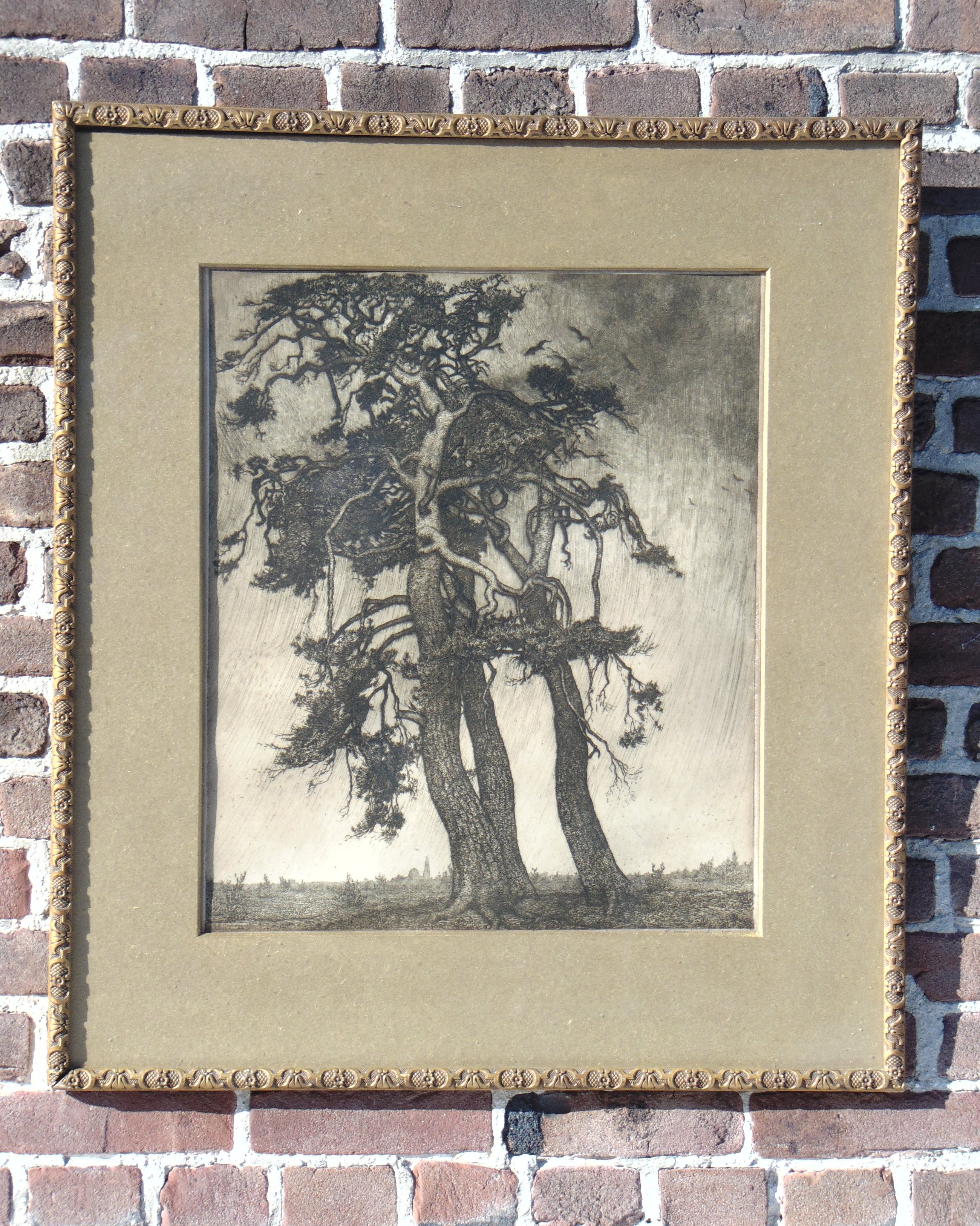 Dit werk is rechtsonder met potlood gesigneerd en linksonder in de plaat. Het werk zit nog in de originele lijst en achter glas. De foto's zijn genomen terwijl het werk achter glas zit daarom kan er wat weerspiegeling zichtbaar zijn.