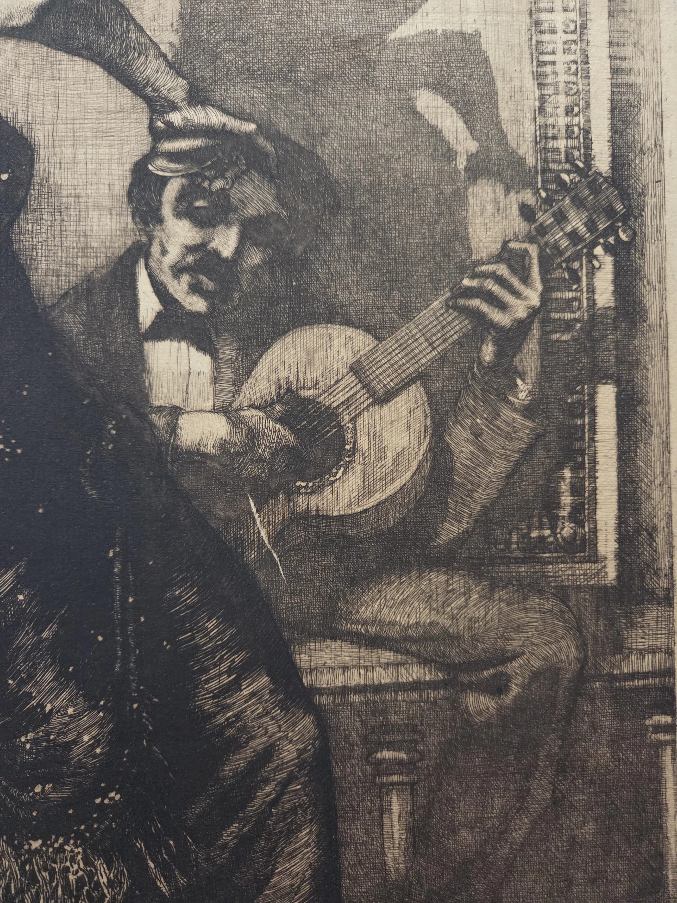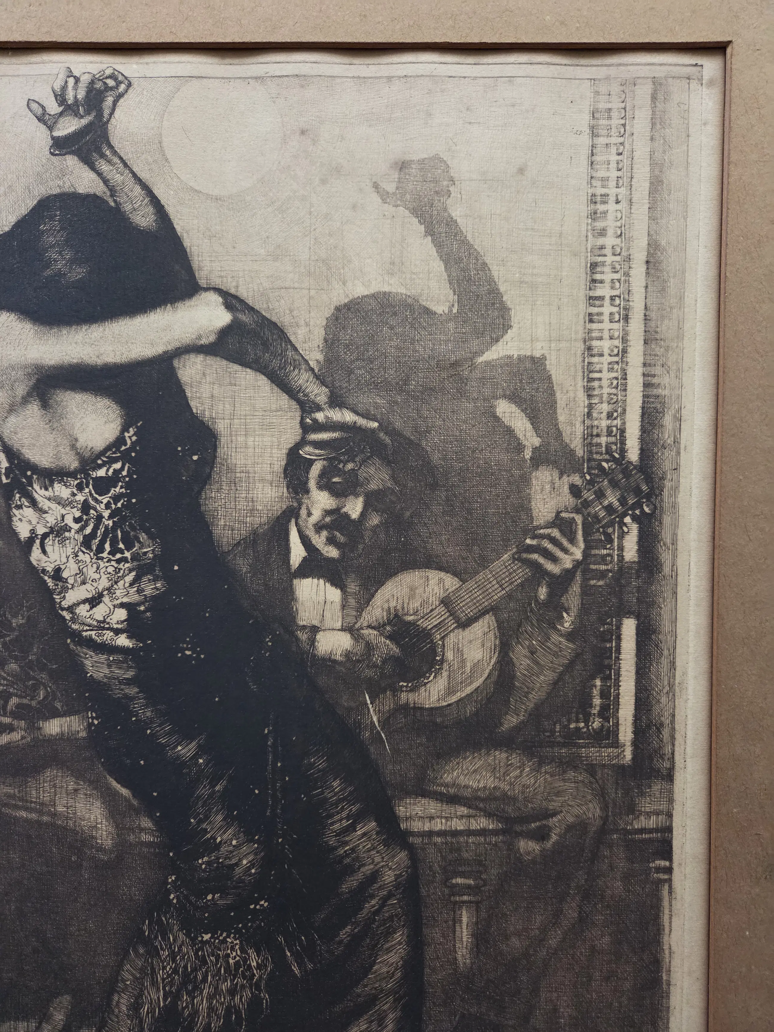 Expressief werk. Gesigneerd rechtsonder. In originele lijst. Stukjes missen. Werk in goede staat gezien ouderdom. Zie foto's voor eigen oordeel kwaliteit.