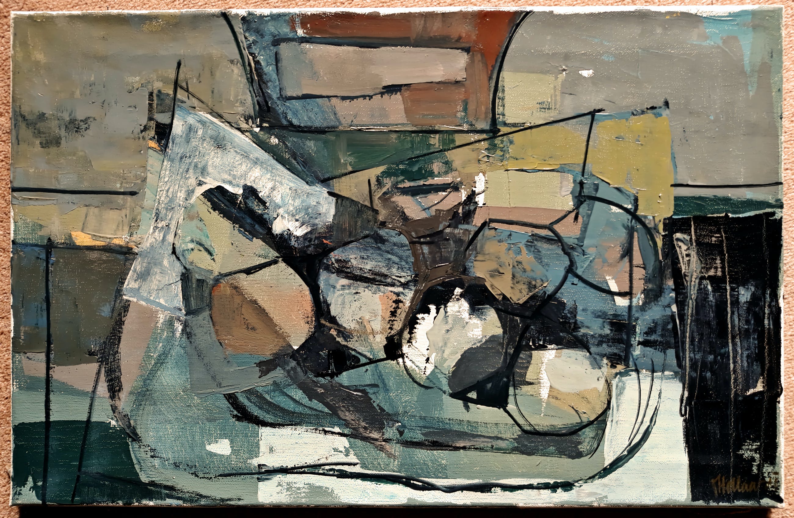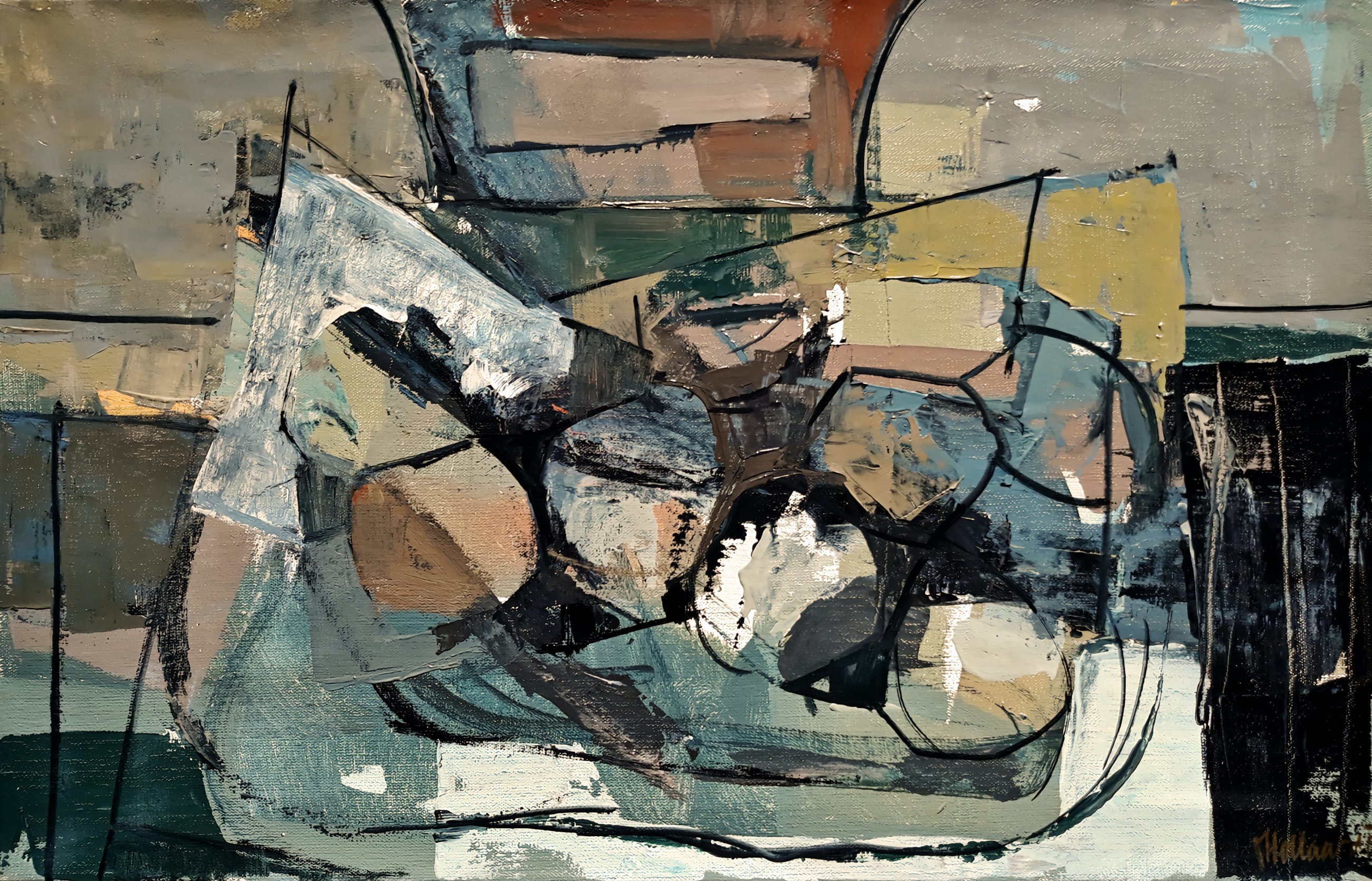 Prachtig stilleven van Frans Hollaardt. Olieverf op doek, gesigneerd rechtsonder, te dateren midden tot eind jaren 50. In zeer goede conditie. Herkomst: privé collectie. Dit schilderij is te zien in de categorie “olieverf” op de site www.francoishollaardt.eu