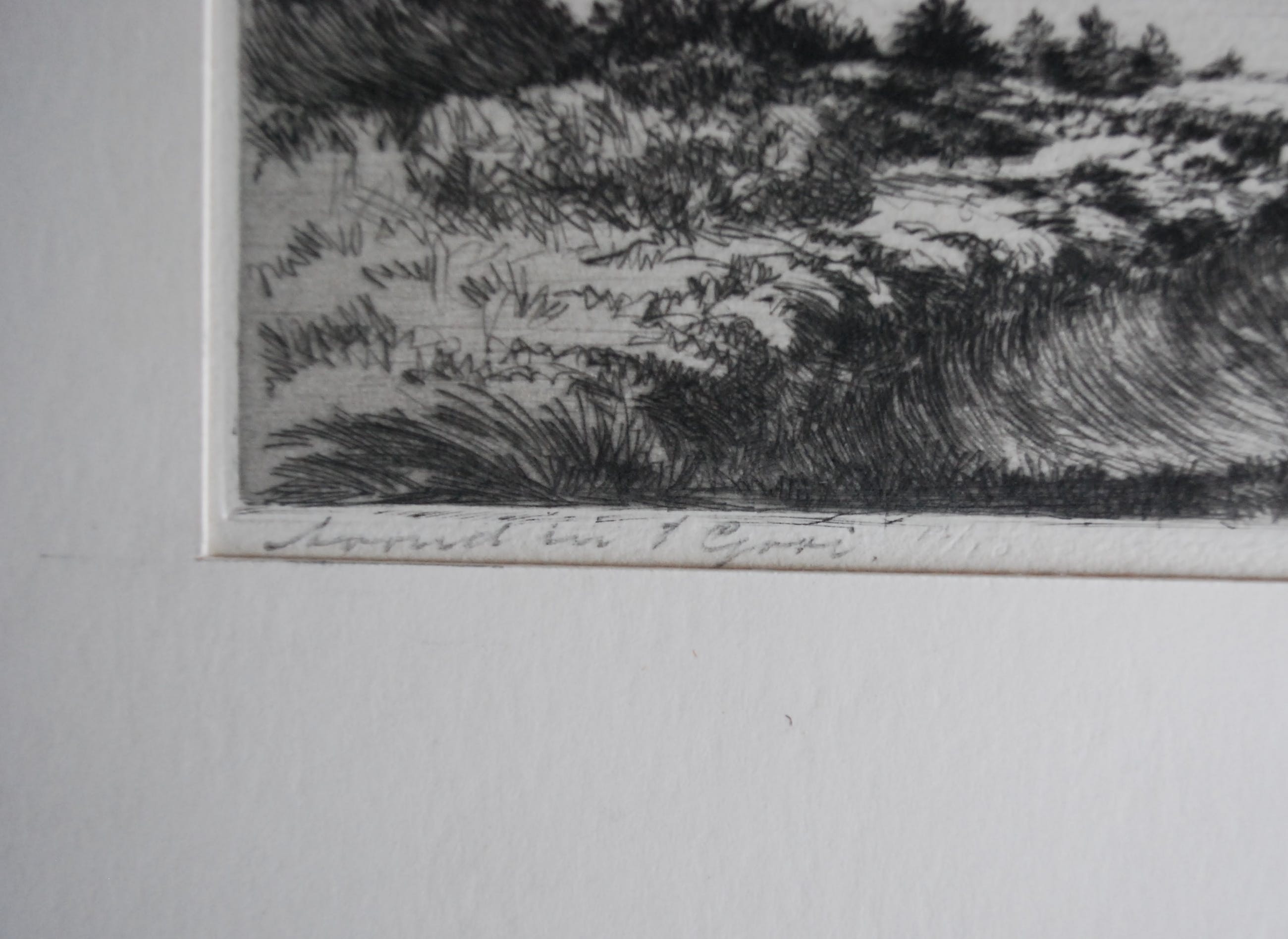 Blad, 18x34.5 cm, los geplaatst (met 2 plakkertjes) achter passepartout en glas.