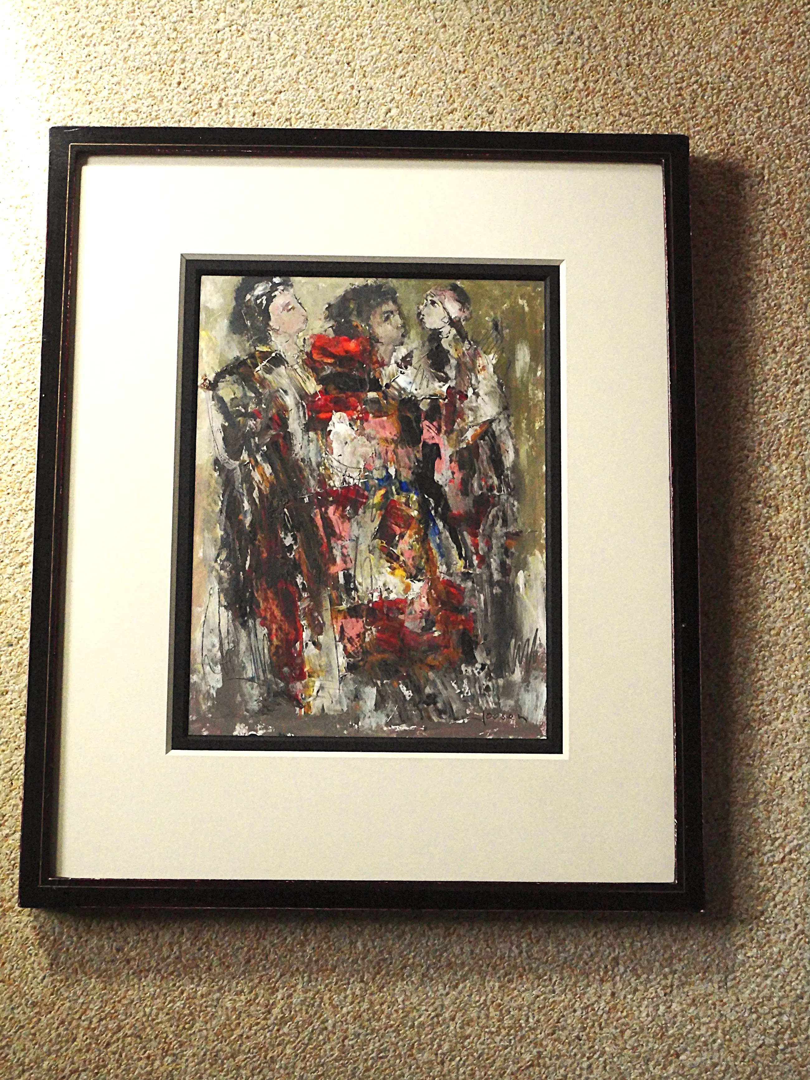 Olieverf op papier , met zwarte lijst [ heeft zijn plekjes]