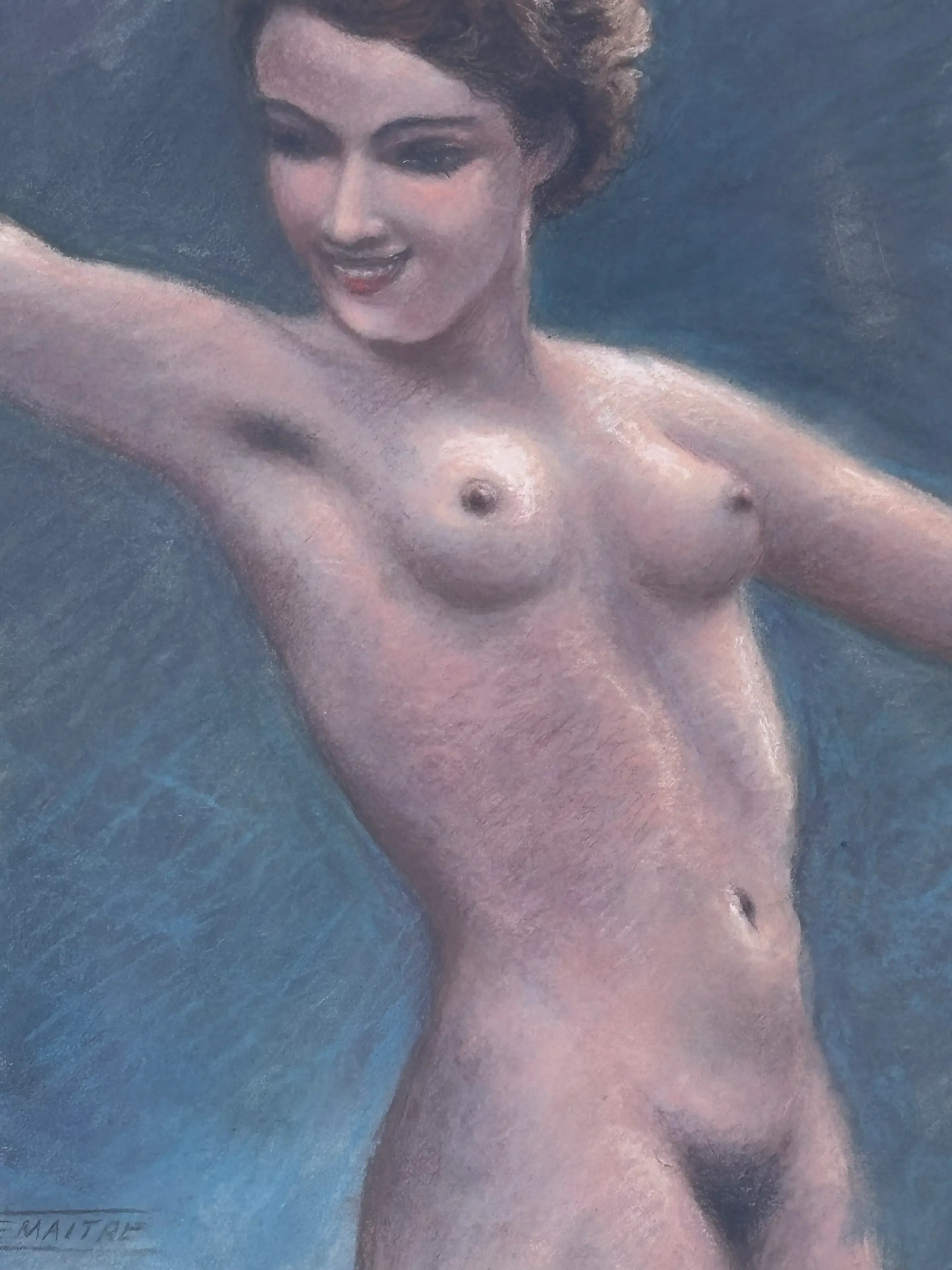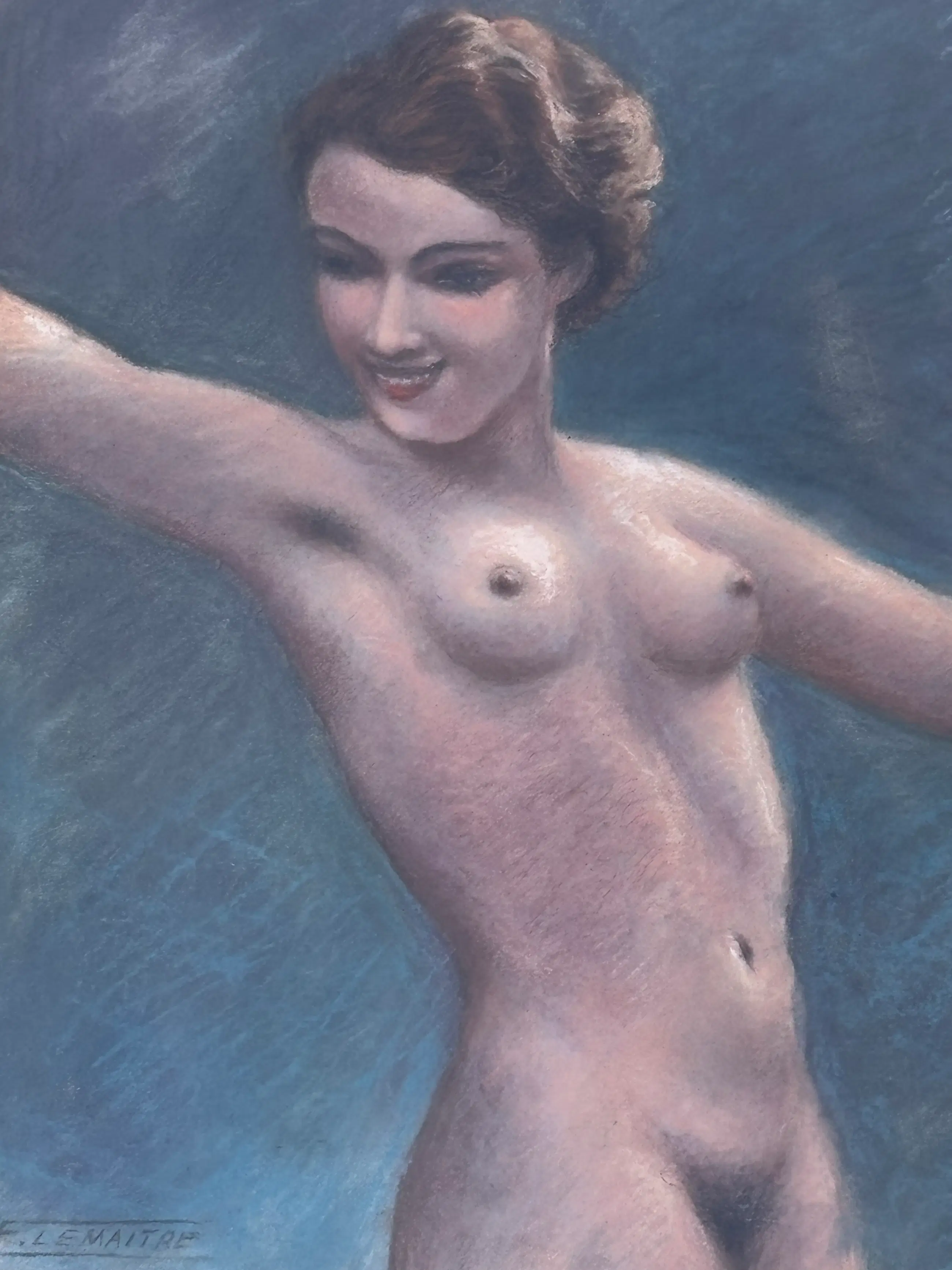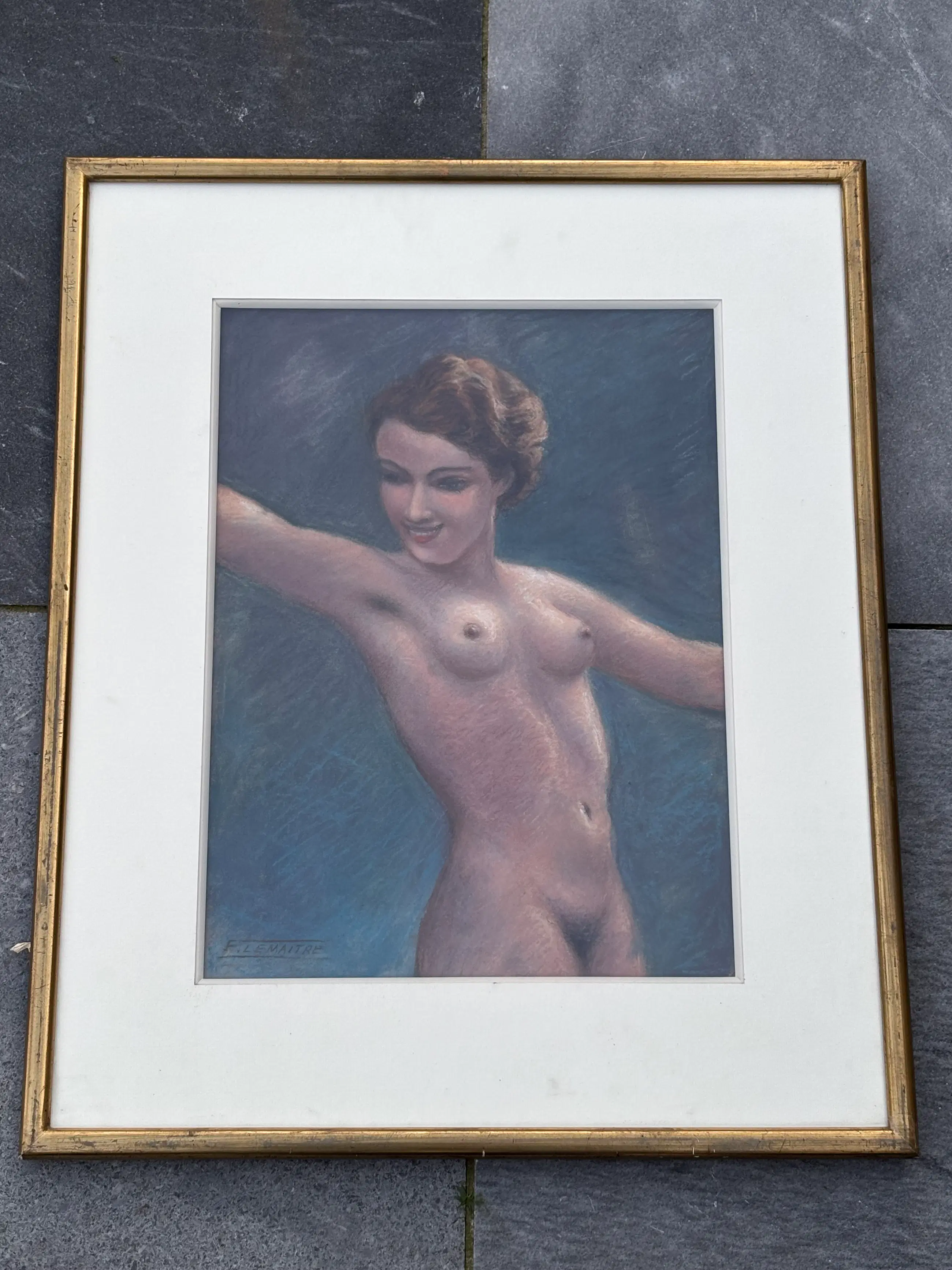 Mooie pastel van de Belgische kunstschilder Frans Lemaitre (geboren te Aalst, 1903-1988)