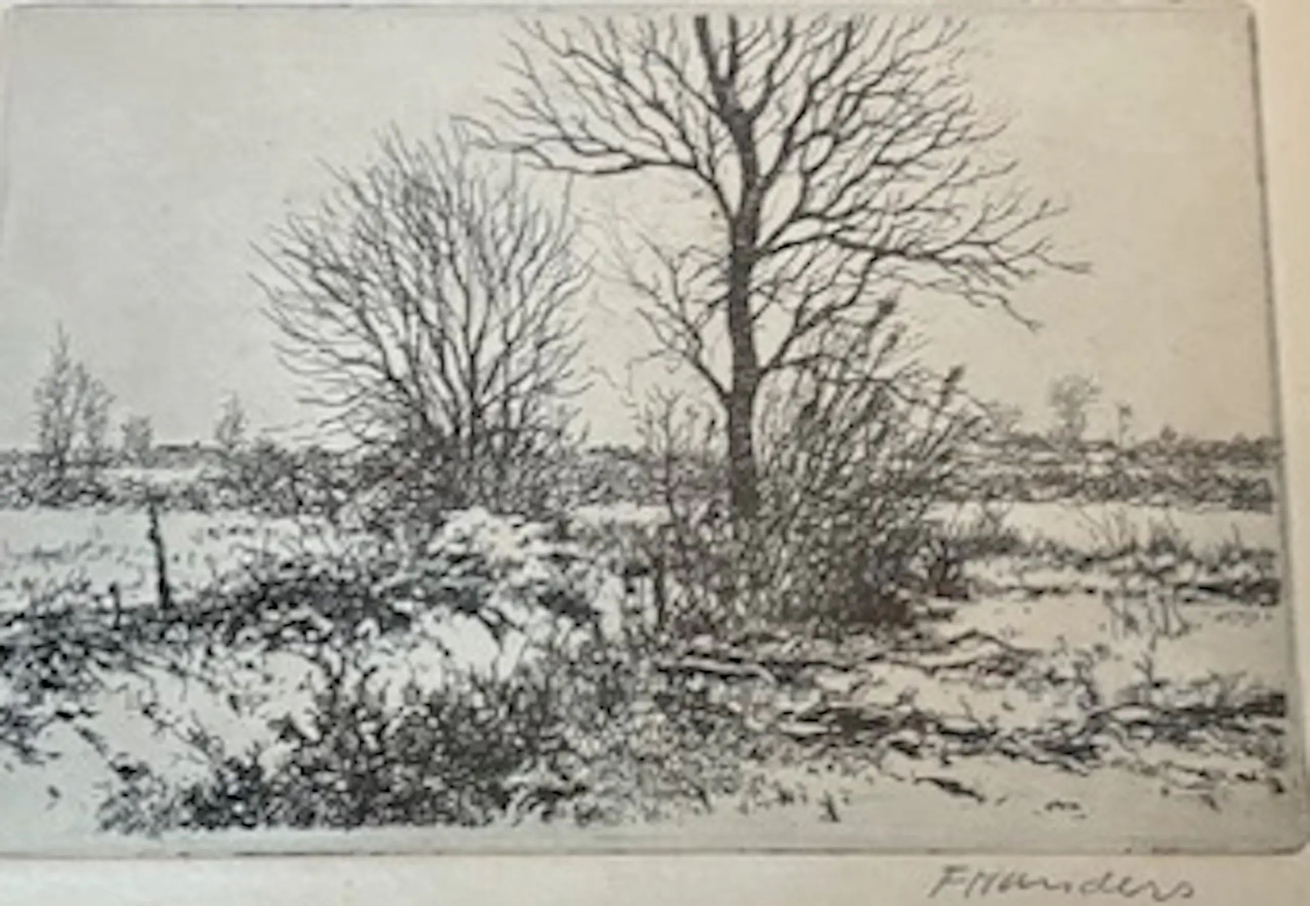 Landschap in zwarte lijst achter glas - zeer verfijnd