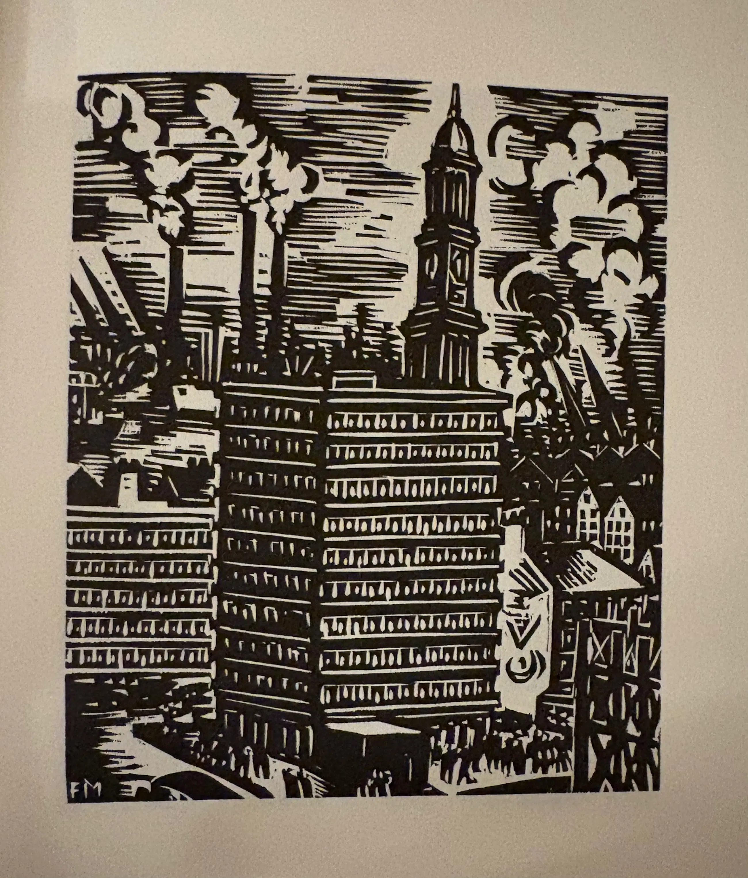 Boek (hardcover + opbergdoos) met 80 houtsneden. Afbeeldingen van het dagelijkse leven in Hamburg. Duitstalige inleiding door Hans Bütow.