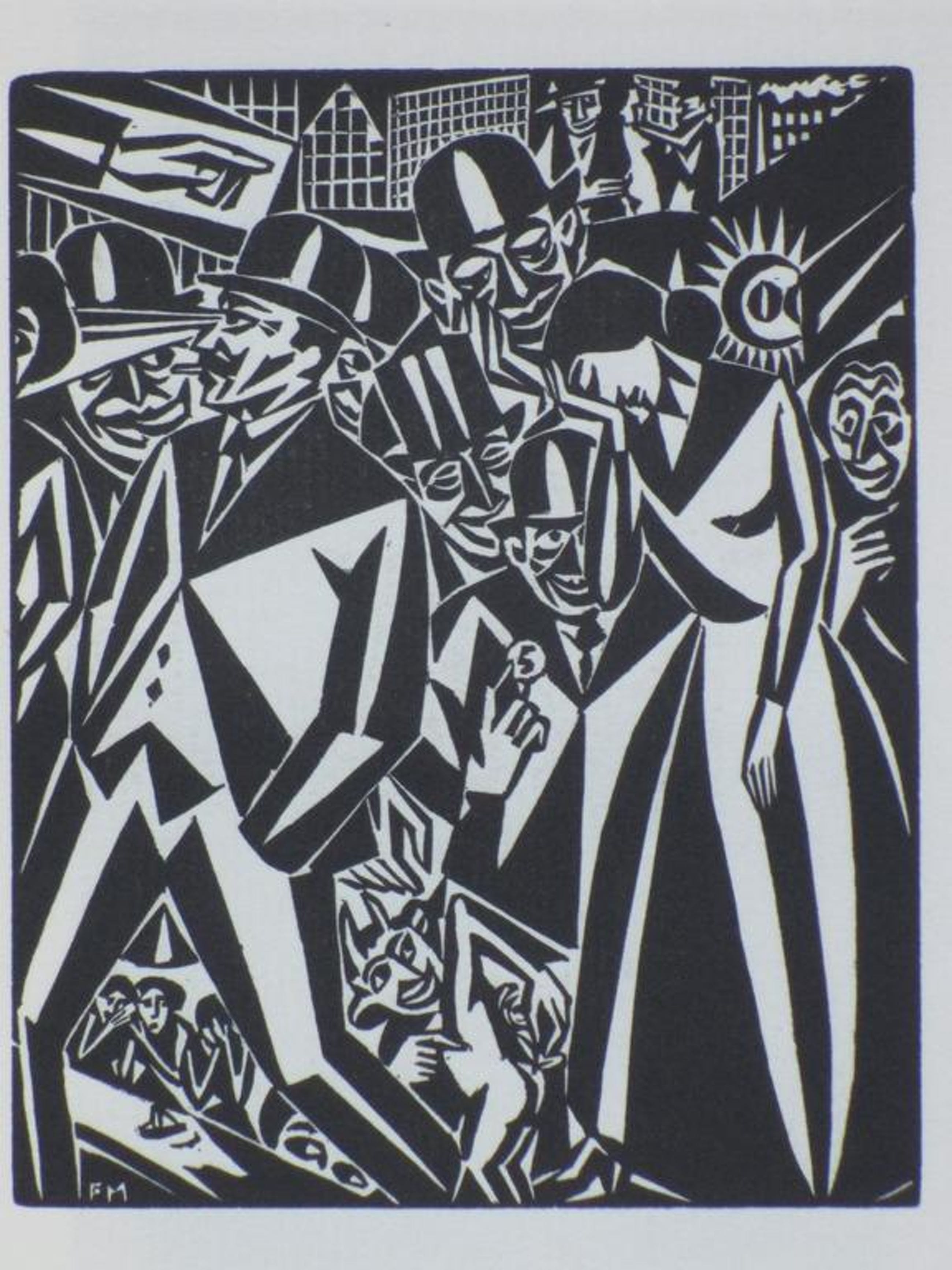 Karakteristieke houtsnede door Frans Masereel uit 'Faits Divers' uit 1920.