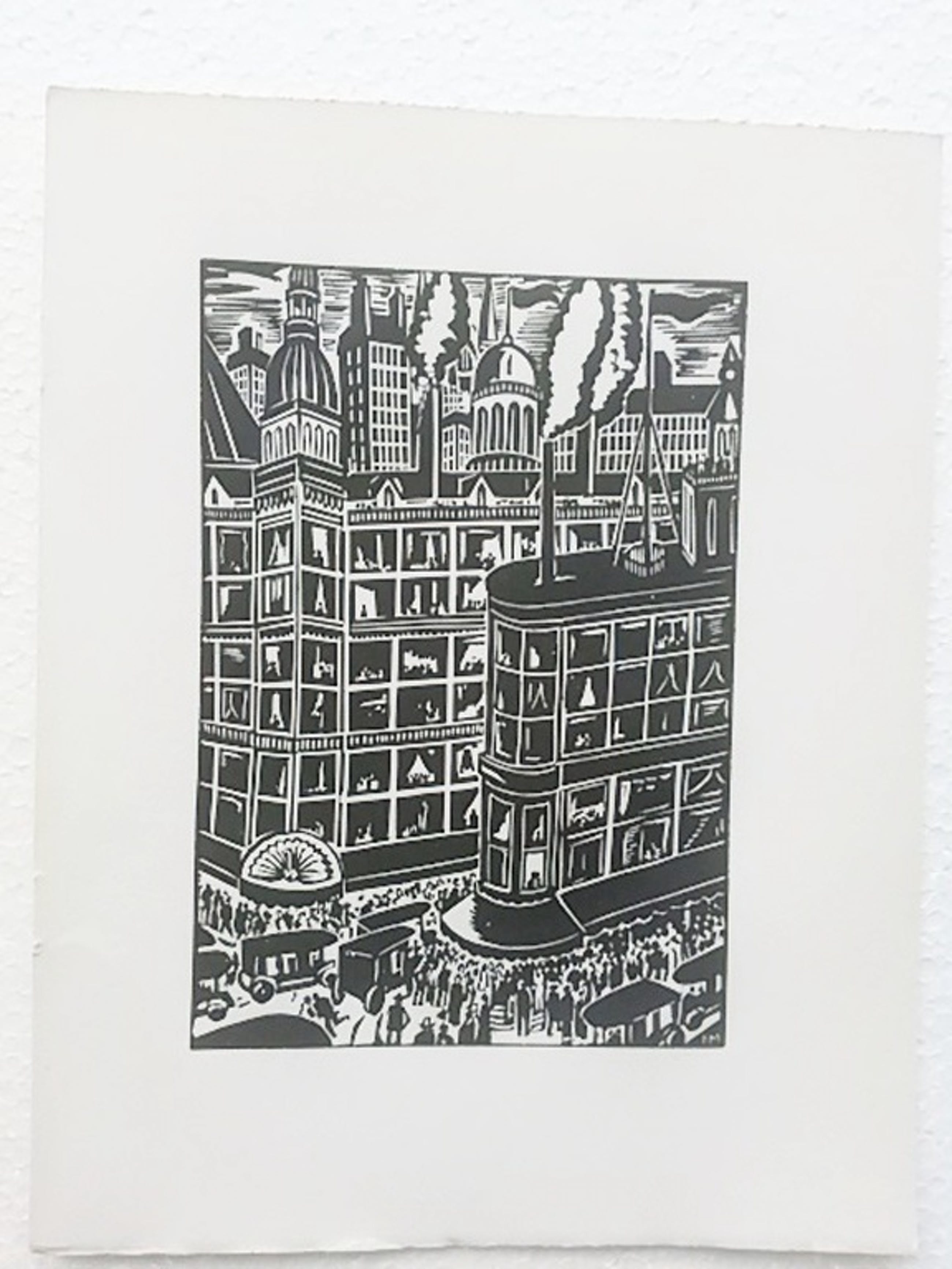 Frans Masereel, originele houtsnede uit La Ville, die Stadt uit 1928. Het werk is in uitstekende staat. Het papier is aan de randen iets vergeeld van ouderdom. Gedrukt van het originele blok! Maat prent: 16,2 x 11,4 cm. Maat blad: 23,5 x 18,4 cm. Authenticiteit is gegarandeerd. Ik stuur bij voorkeur aangtekend. Ophalen kan ook.