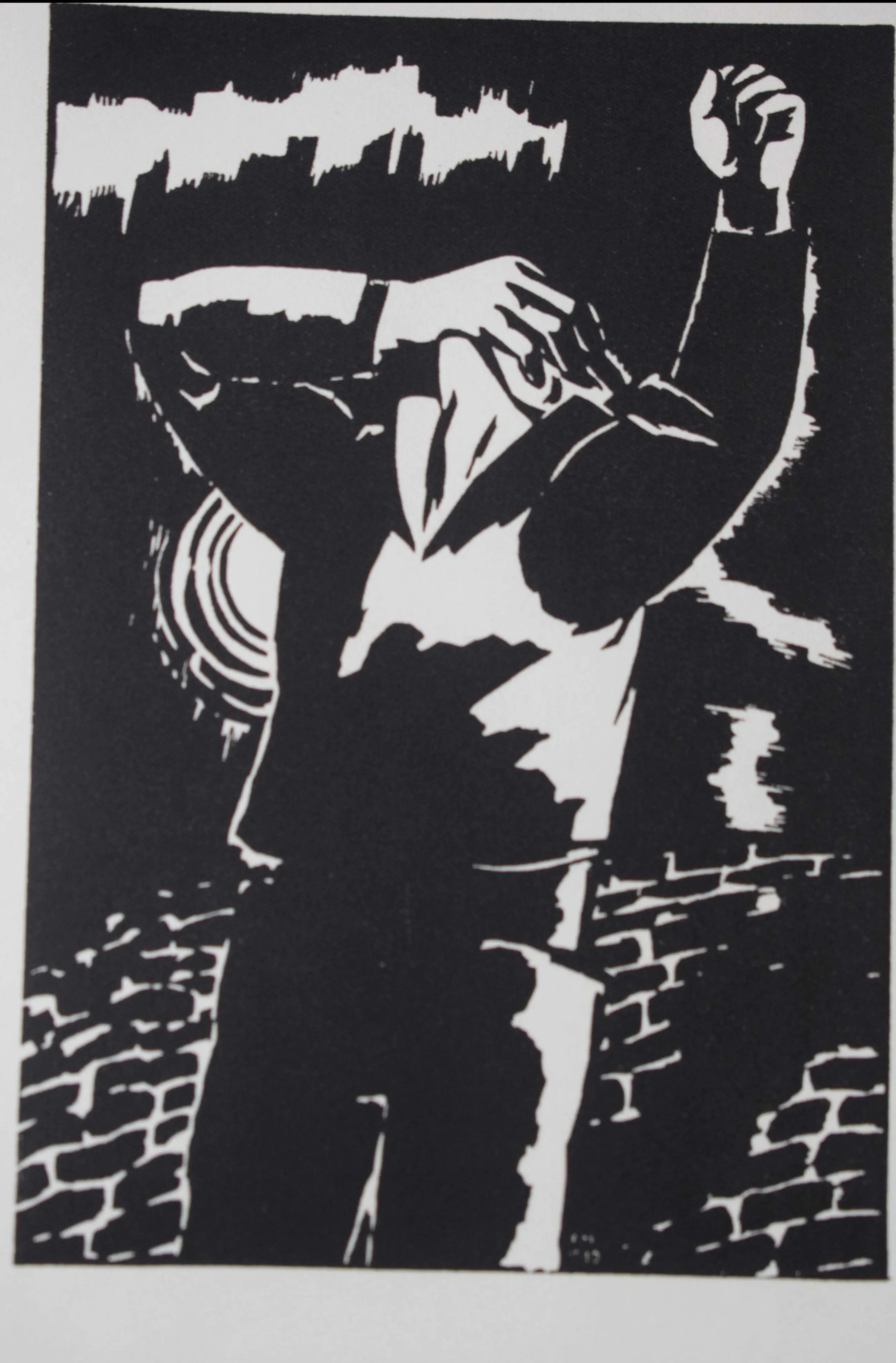 Originele houtgravure, gesigneerd op de plaat. Deze gravure werd voor het eerst opgenomen in de monografie van Luc Durtain over de Kunstenaar Frans Masereel. Dit exemplaar is opgenomen in een gespecialiseerde typografische Frans Tijdschrift. De gravure is gedrukt op Fijn Creme geweven papier. Masereel staat bekend om zijn krachtige uitdrukkingen die hij op hout kon maken. Zoals je op deze druk ziet, is de machteloosheid zeer duidelijk uitgedrukt.