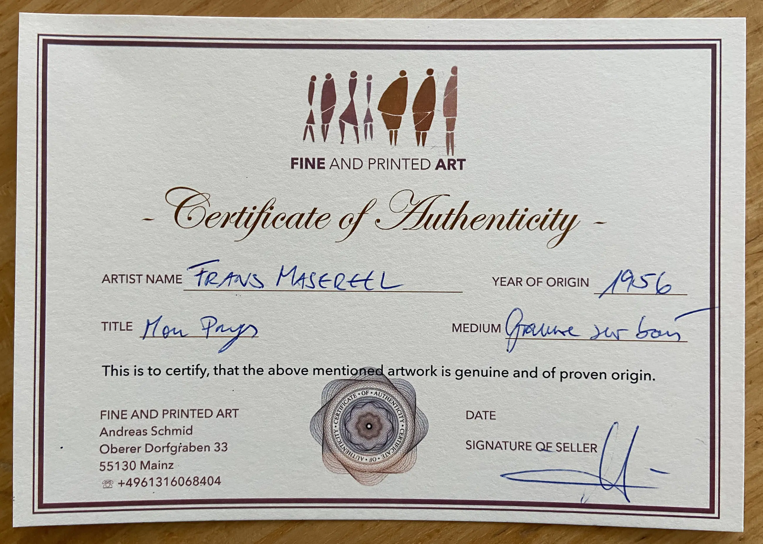 · De houtsnede is door Masereel in de plaat gesigneerd. · De authenticiteit van de afdruk wordt bevestigd met een verkoperscertificaat. Heel goede staat