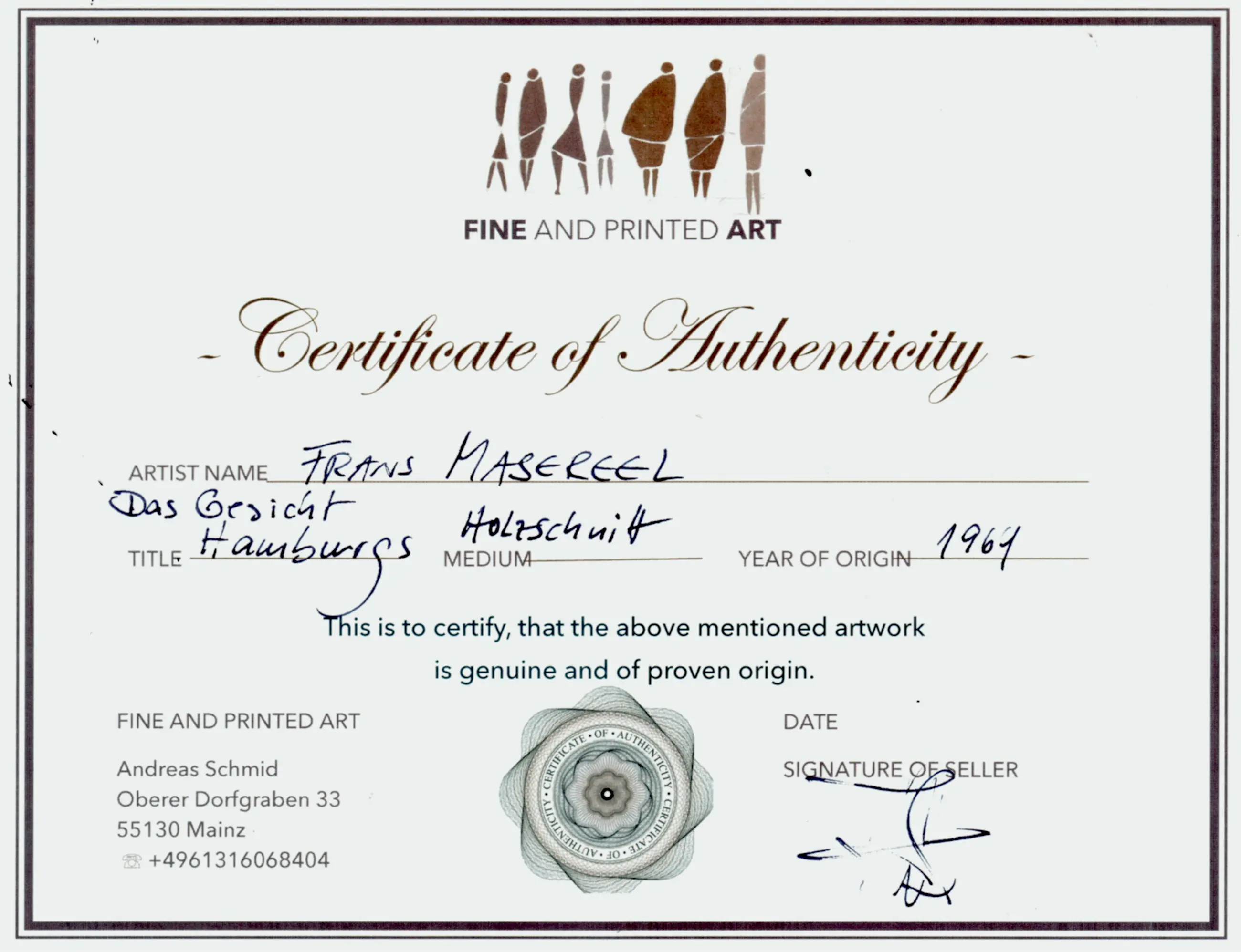 Frans Masereel Originele houtsnede uit 1964 geen latere herdruk - originele afdrukken uit de woodstock van Masereel!