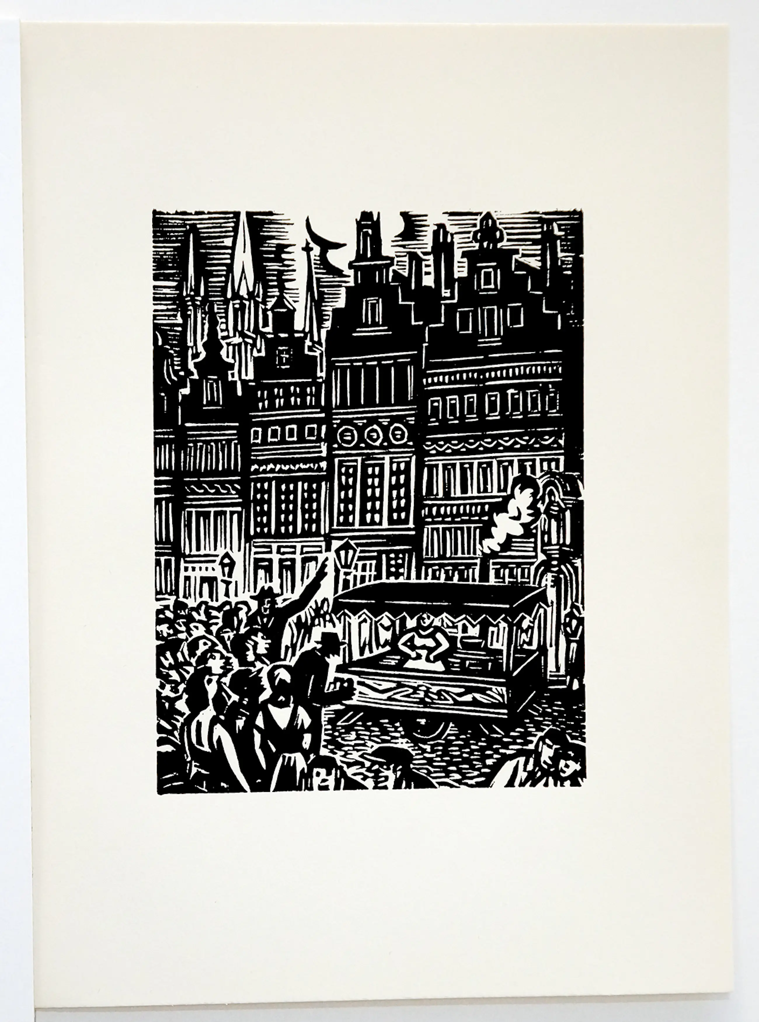Deze houtsneden van Franz Masereel zijn gedrukt vanuit de originele houtsnede voor de Banque de Paris et des Pays Bas in Brussel.