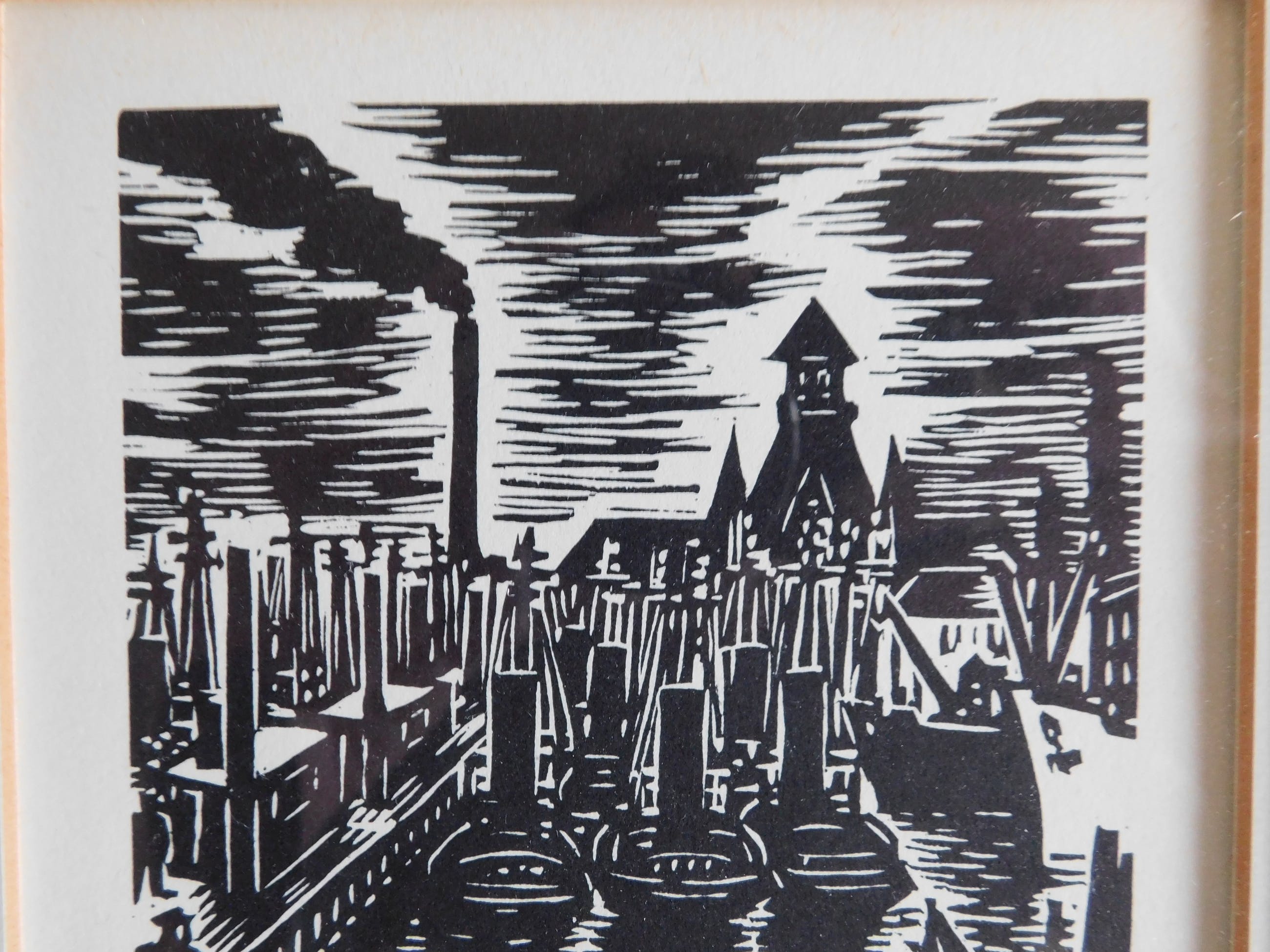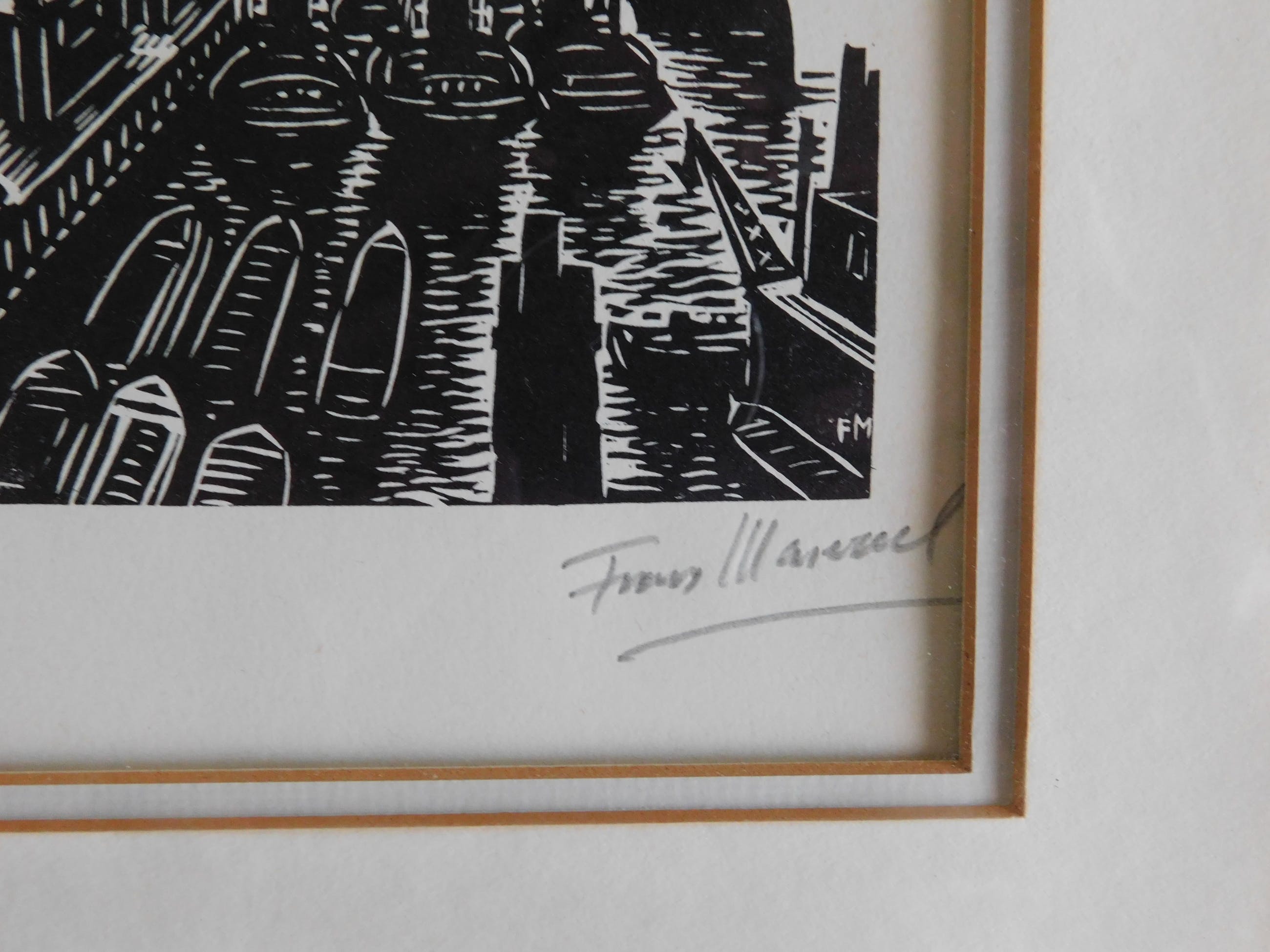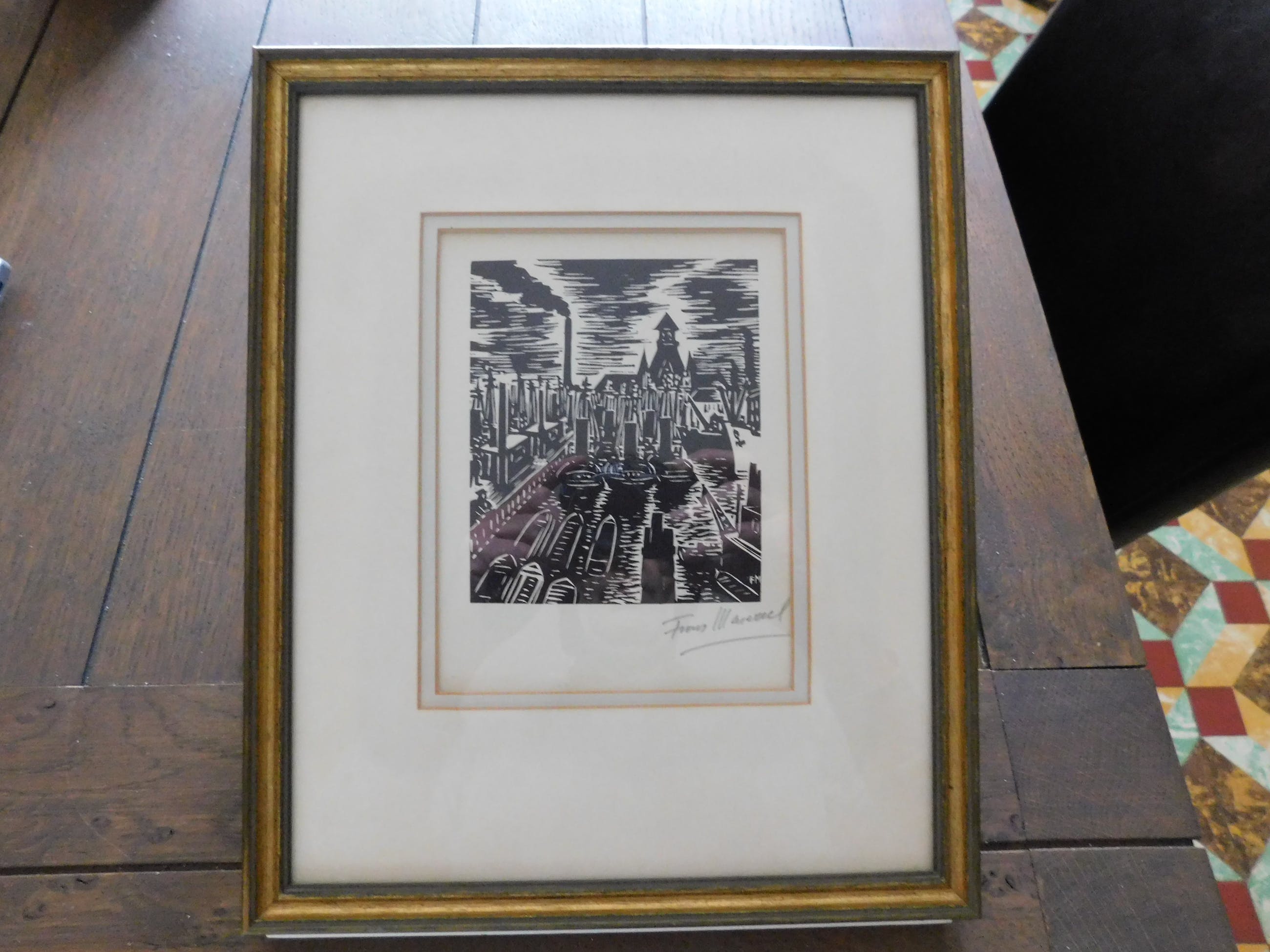 Originele houtsnede van Frans Masereel.Frans Laurent Wilhelmina Adolf Lodewijk Masereel was een Belgisch graficus, houtsnijder, kunstschilder en tekenaar. Hij wordt beschouwd als de belangrijkste houtsnijder en graficus uit de twintigste eeuw.